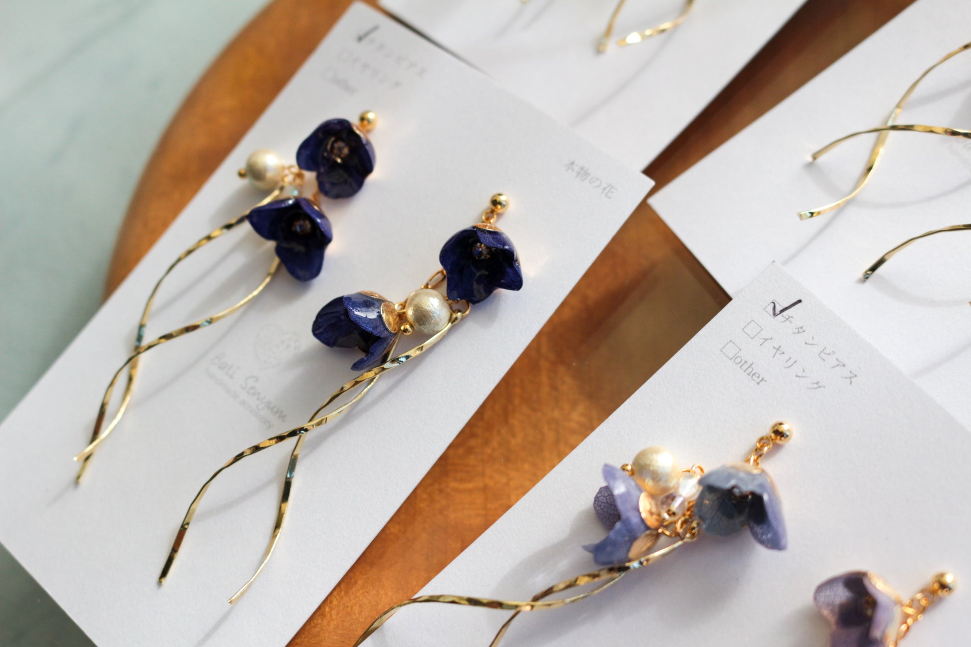 ネジ式イヤリング、樹脂ピアスをご希望の方は、ご注文の際にお知らせ下さい。