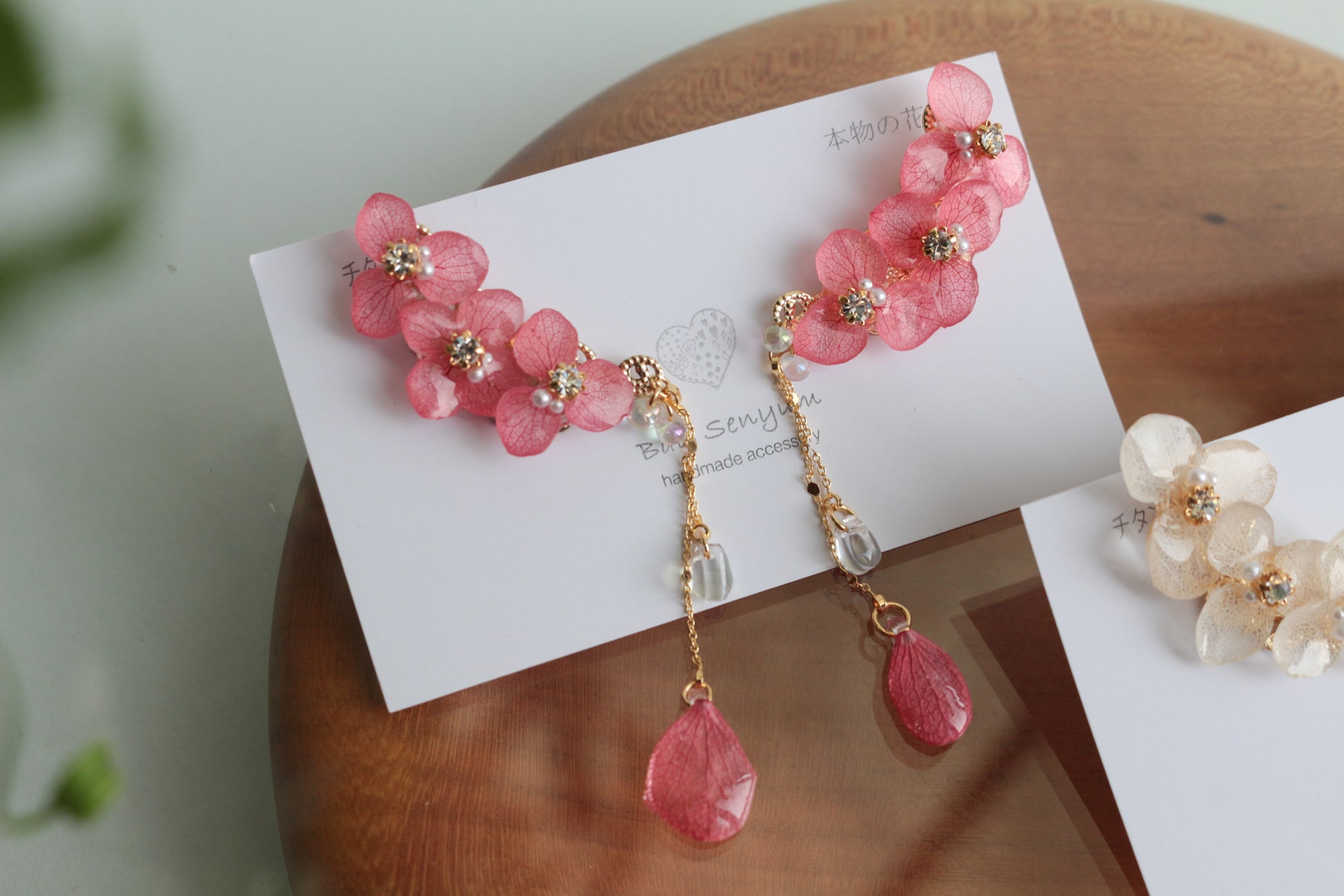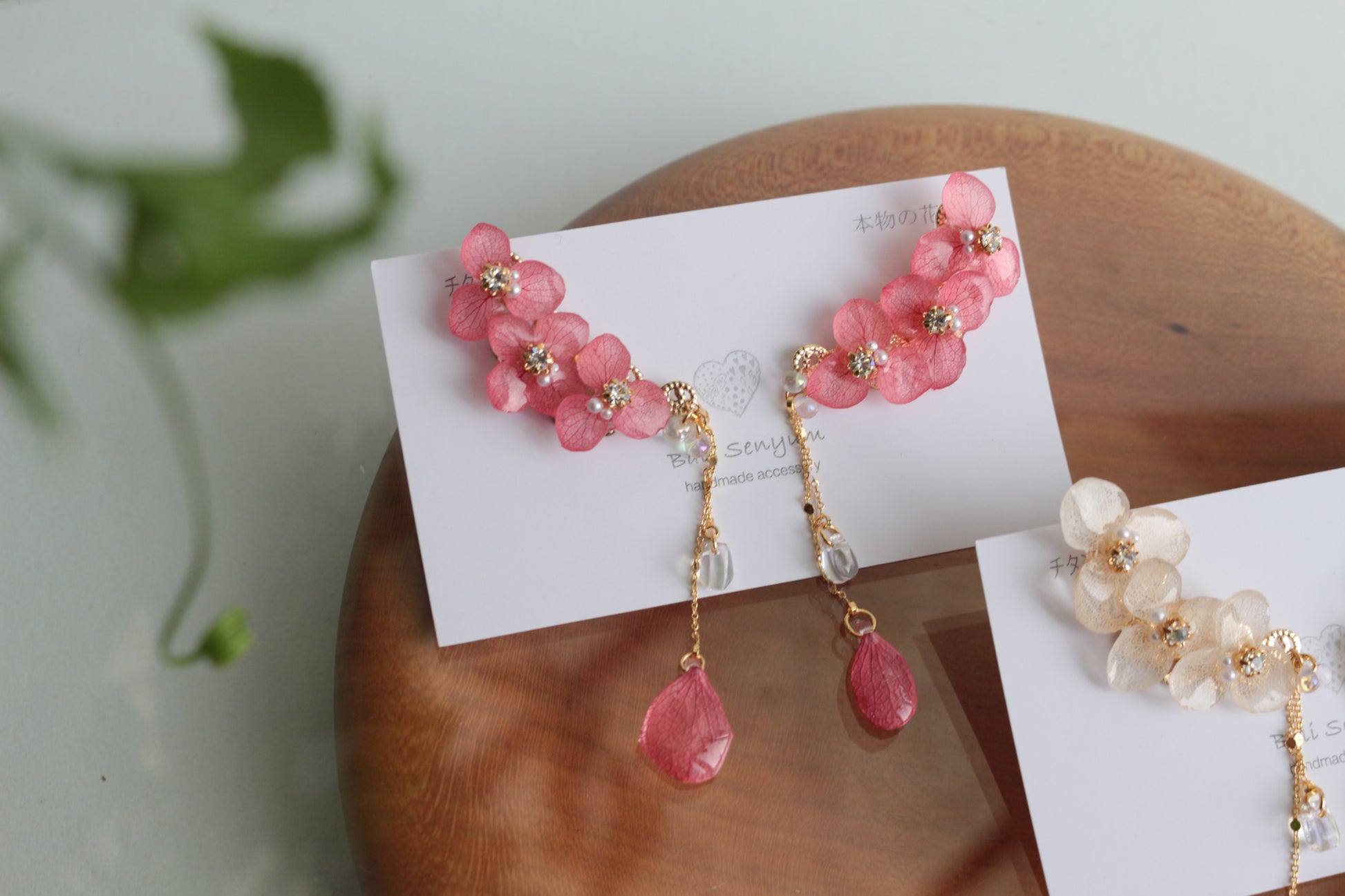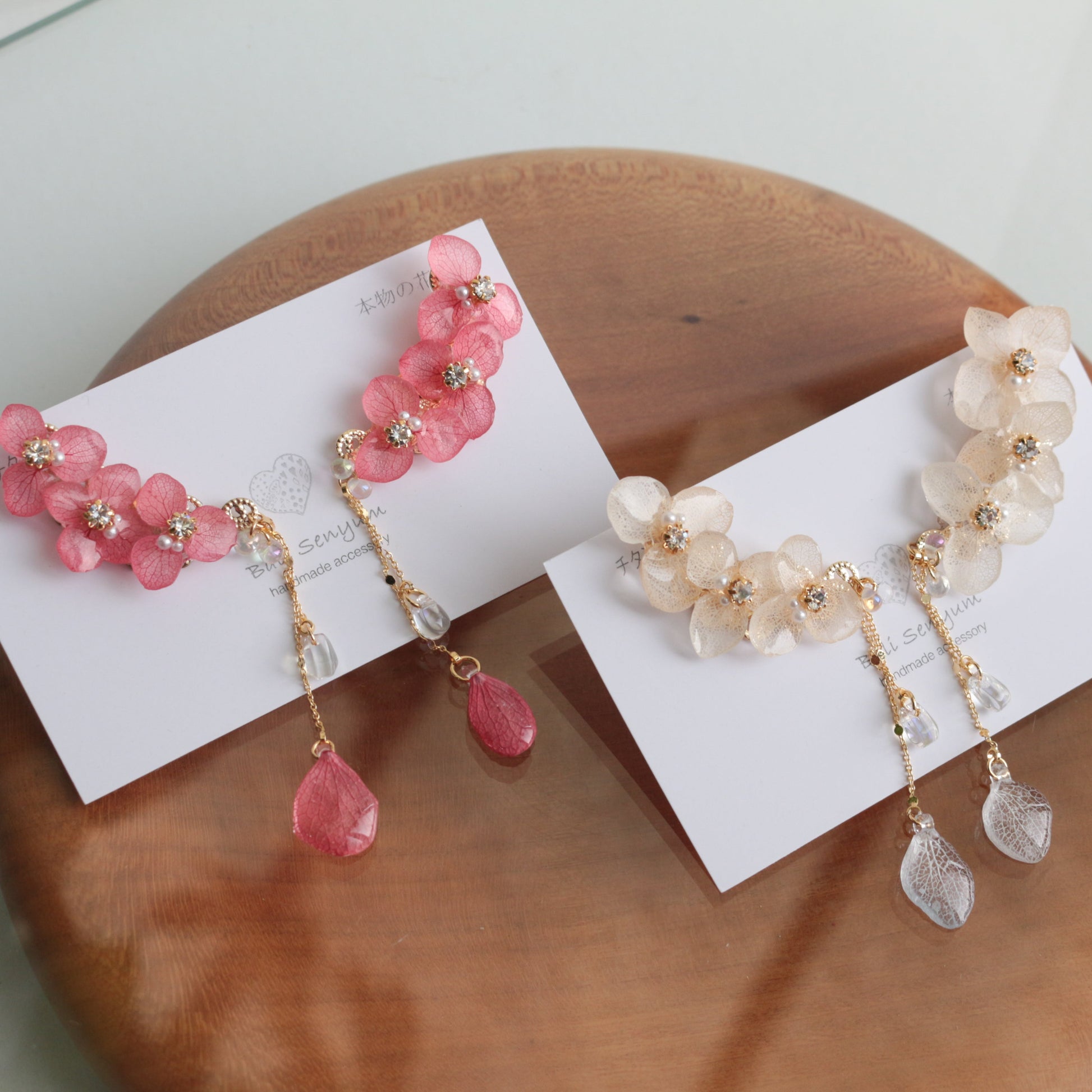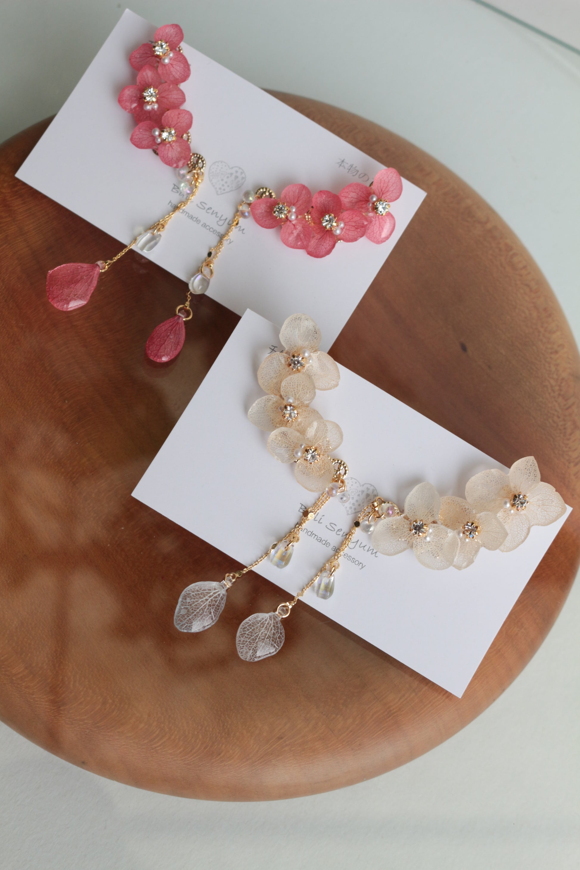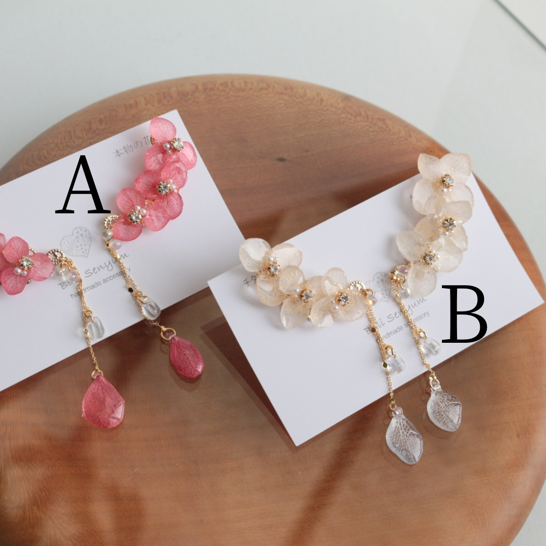 チェーンの先にも紫陽花の花びらが揺れています。