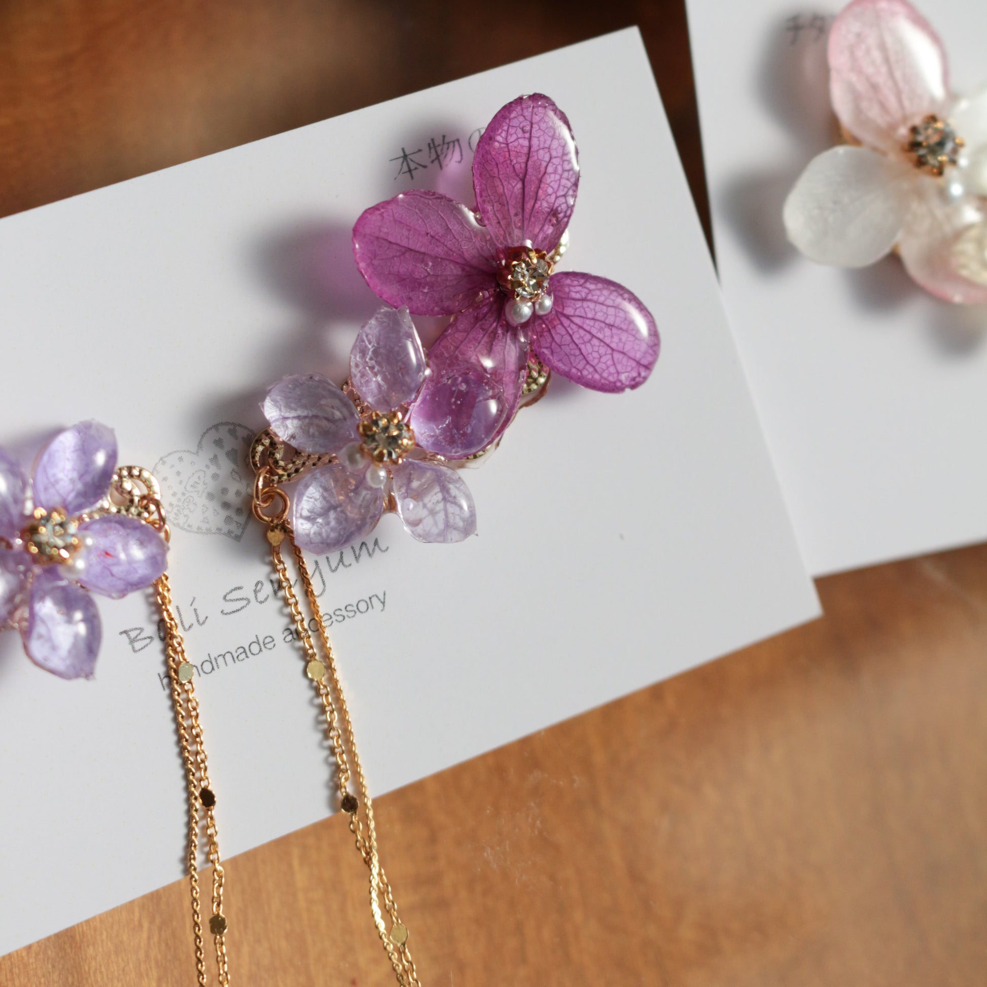 Hydrangea Flying Butterfly Earrings No.41 - Titanium Pierce(ピアス)