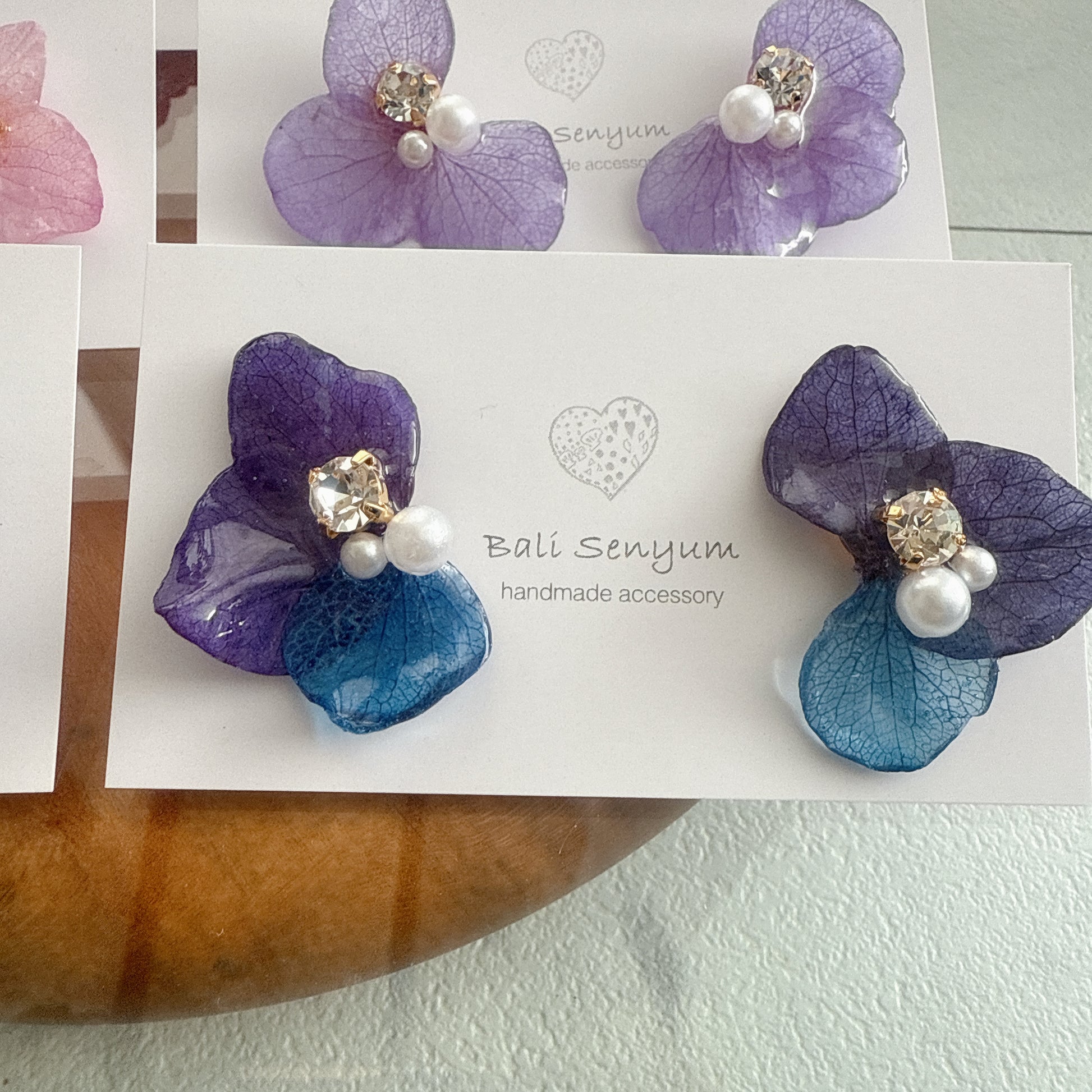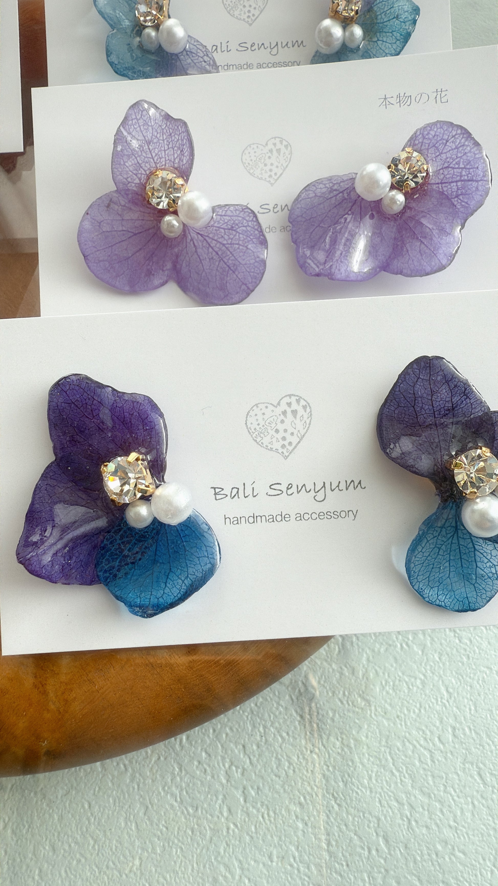 グラデーションかかった紫陽花の花びらを使用したアート作品です。