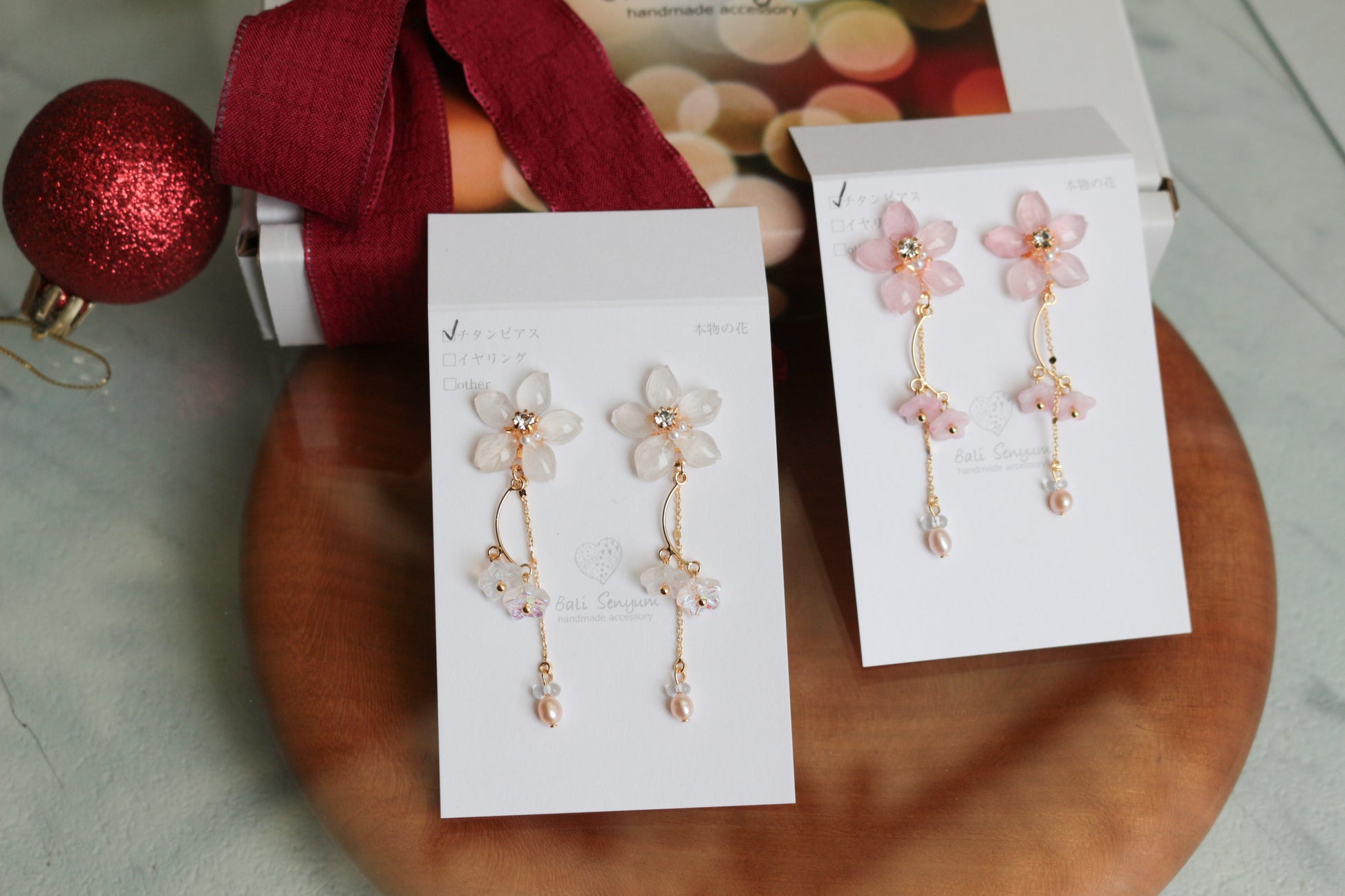 All the flower petals I use have been preserved, not dried, so that they maintain their color for a long time. In addition, sakura petals are very delicate so I take extra care to make sure each and every one looks like it is still living on the tree.