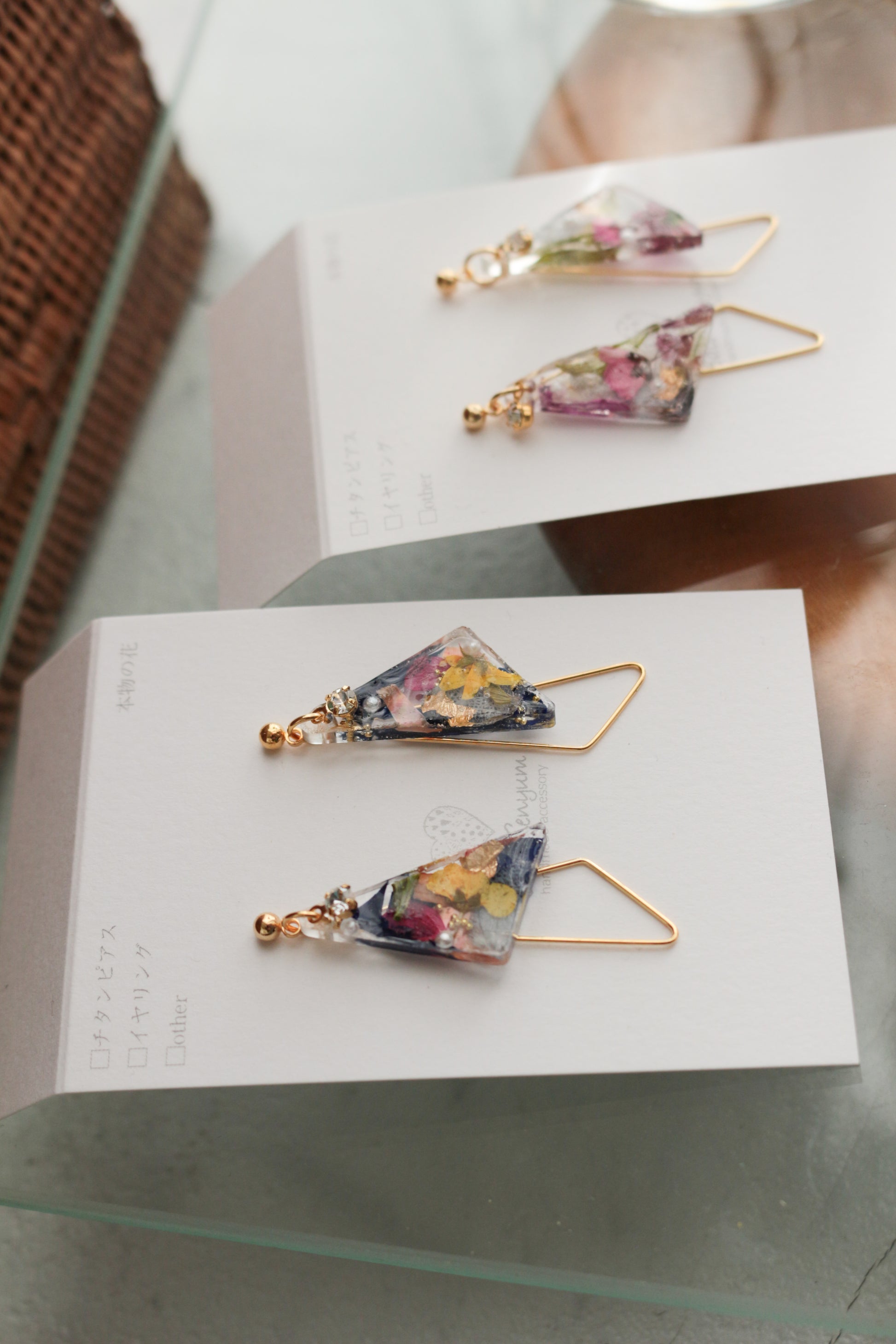 Triangular Floral Earrings - KIMONO Art Jewelry ピアス or イヤリング