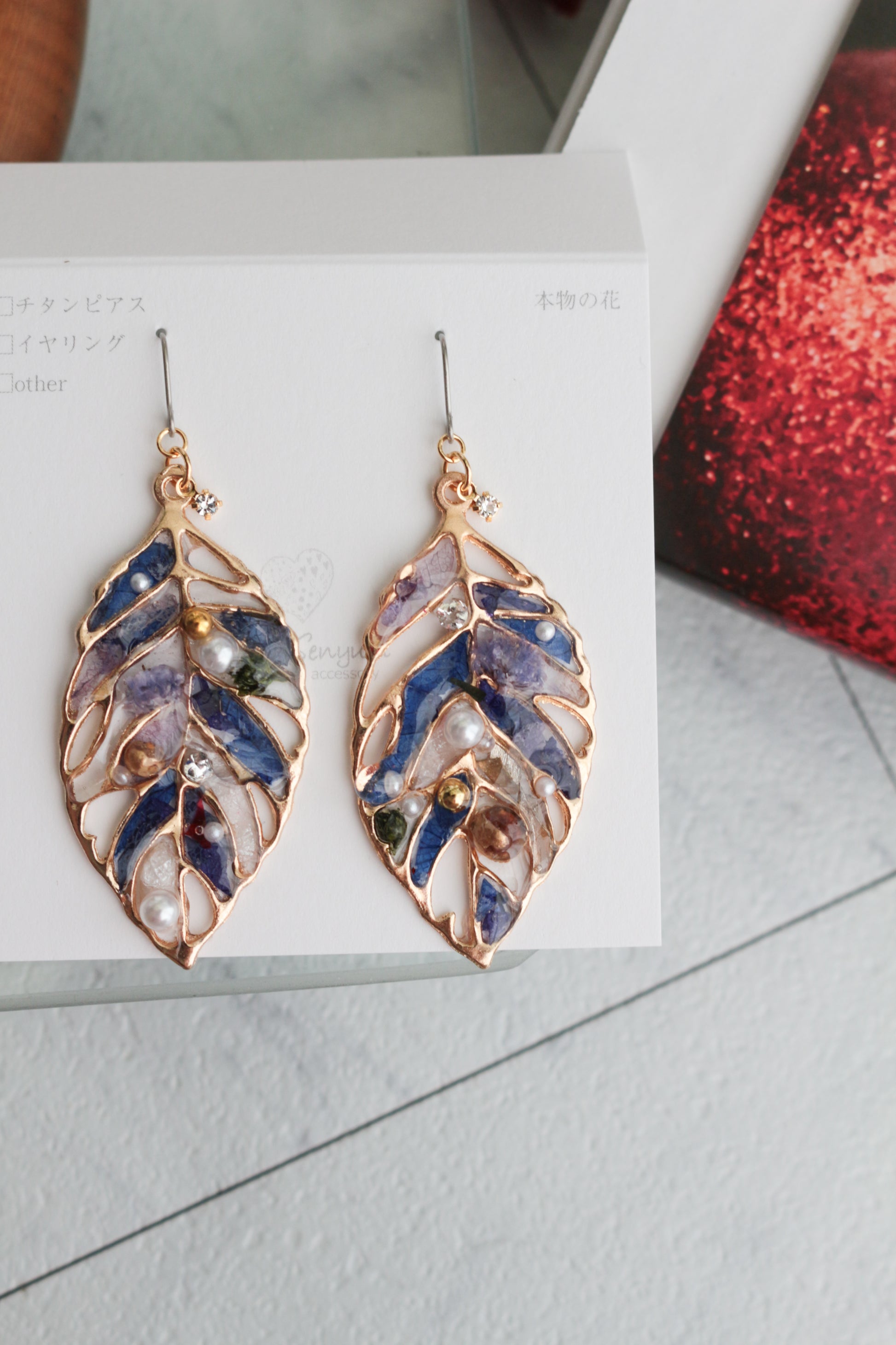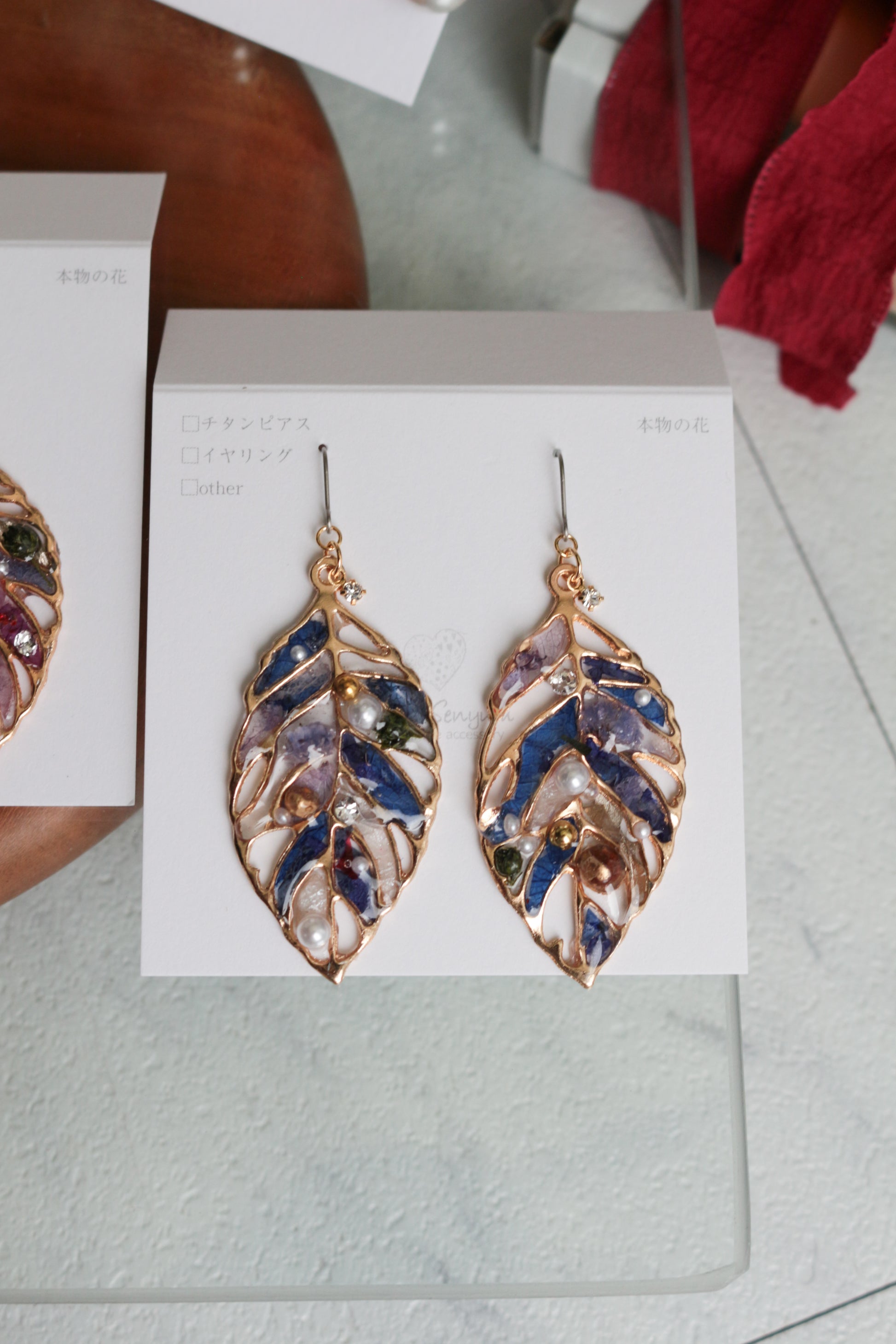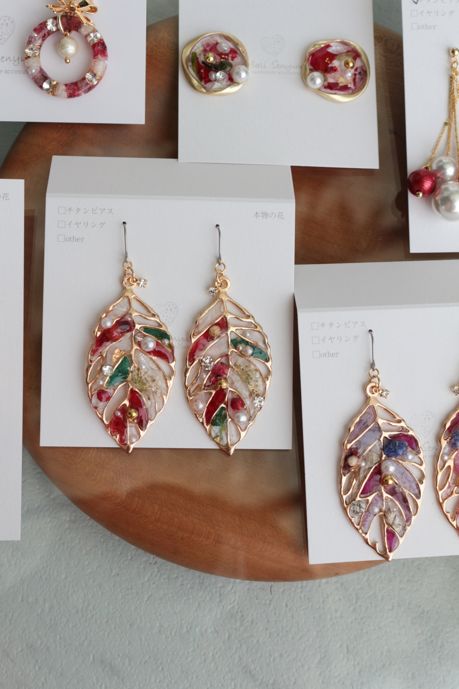 Bring the Christmas spirit around with you everywhere you go with these cute holiday-themed earrings. My classic leaf earrings with Christmas colored flower petals.