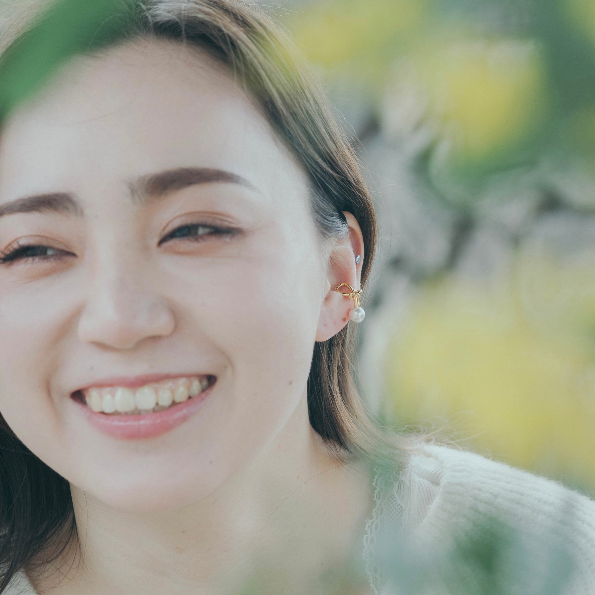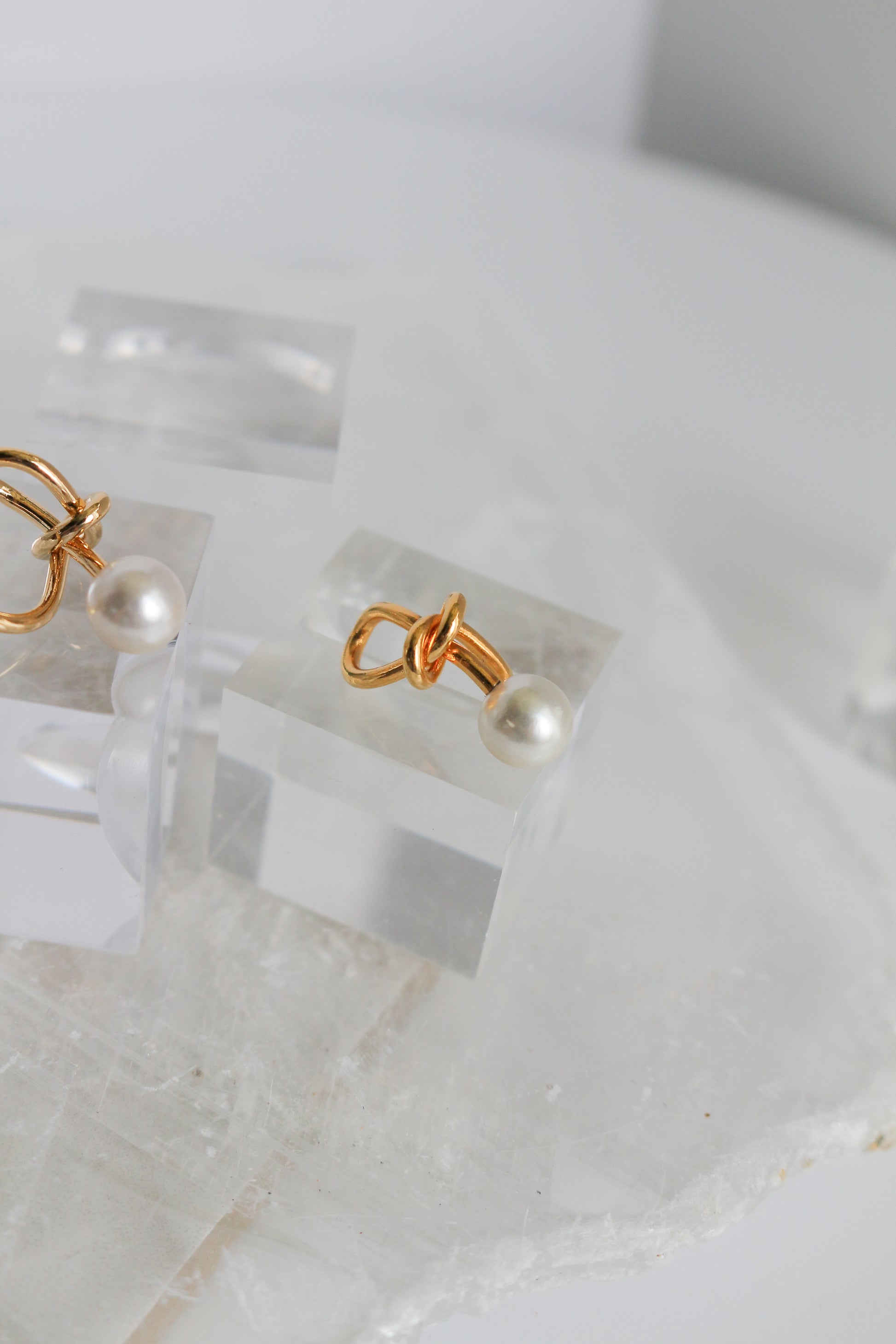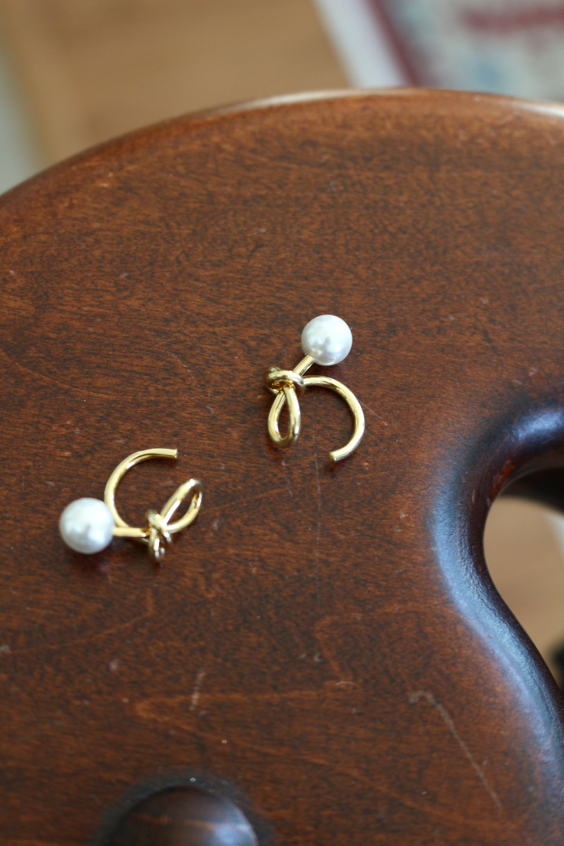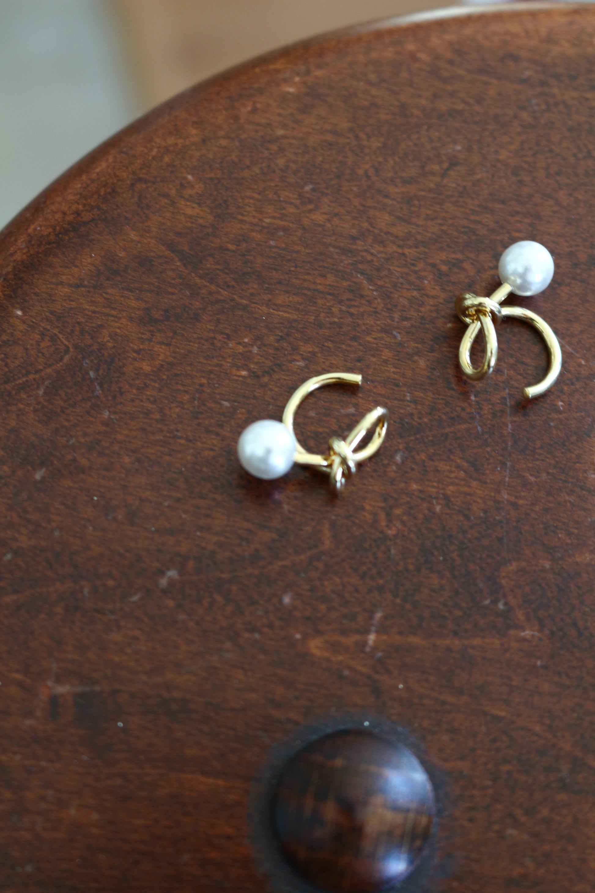 Knotted metal ear cuff with fake pearl. A simple but elegant design that works as a perfect accent piece alone or with other earrings.