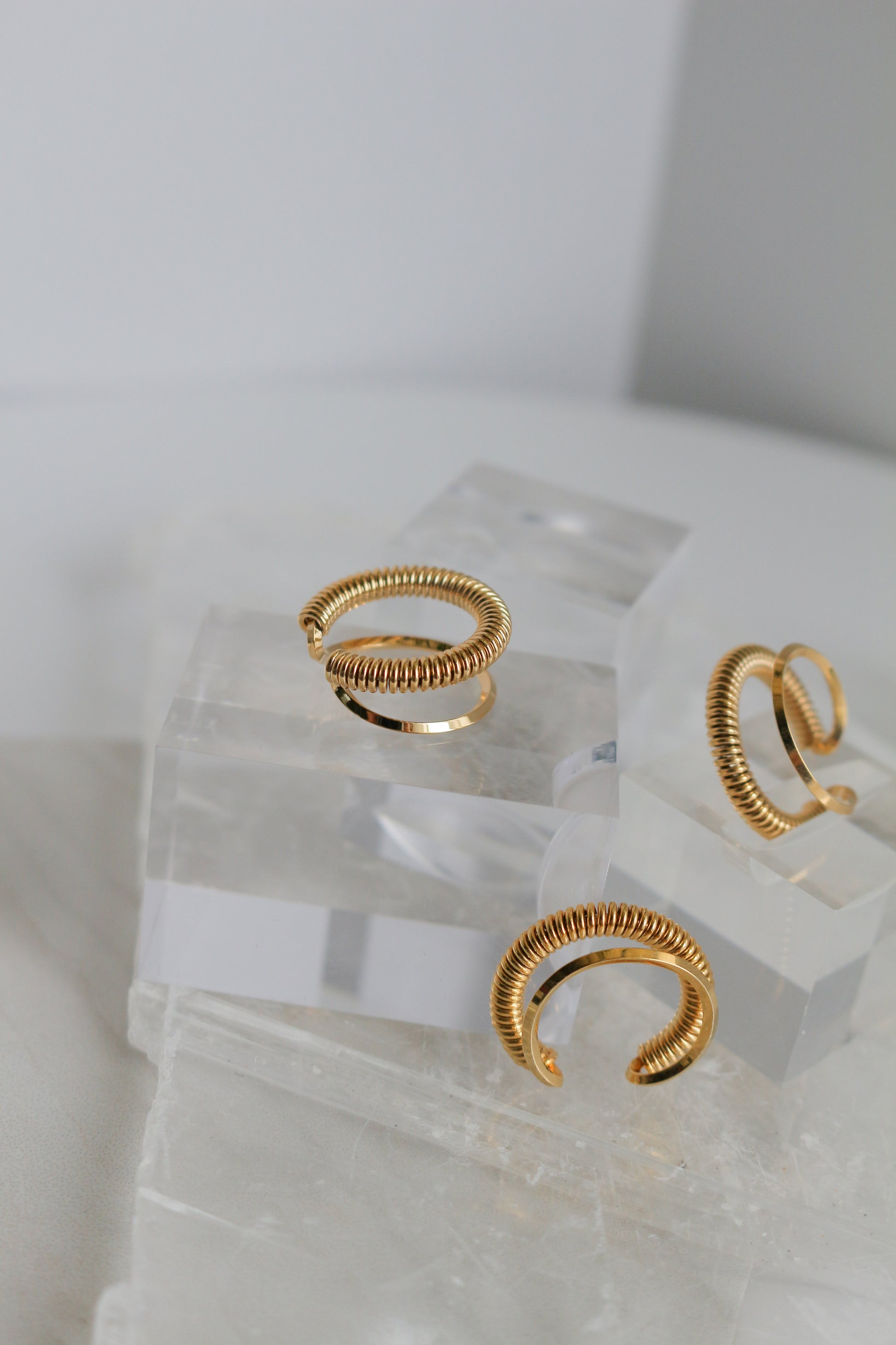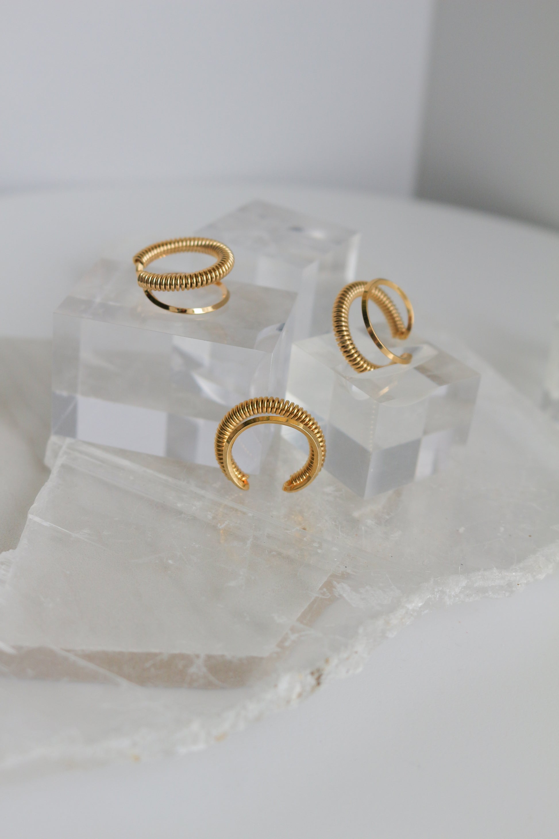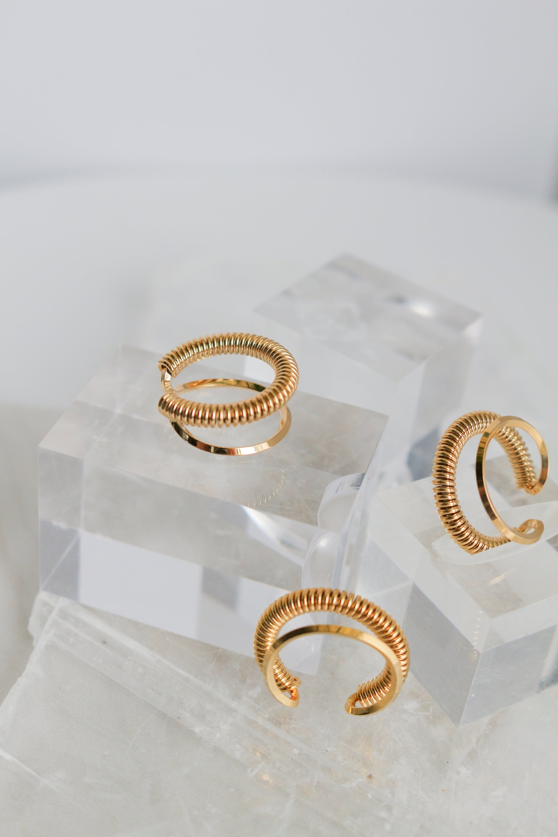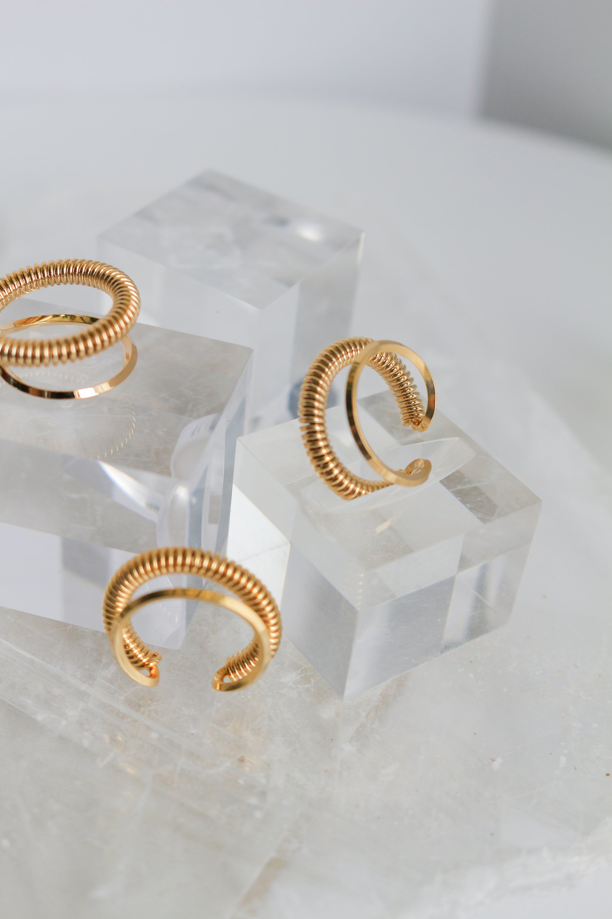 Coil shaped metal ear cuff. A simple but elegant design that works as a perfect accent piece alone or with other earrings.