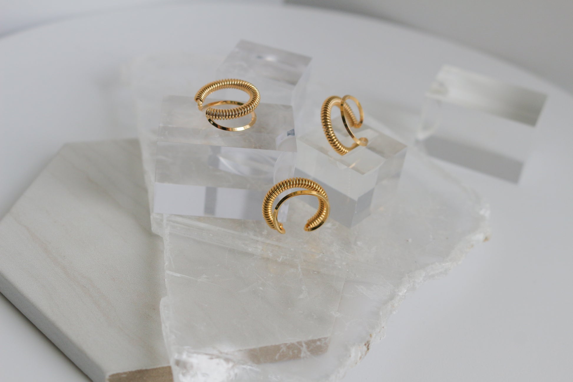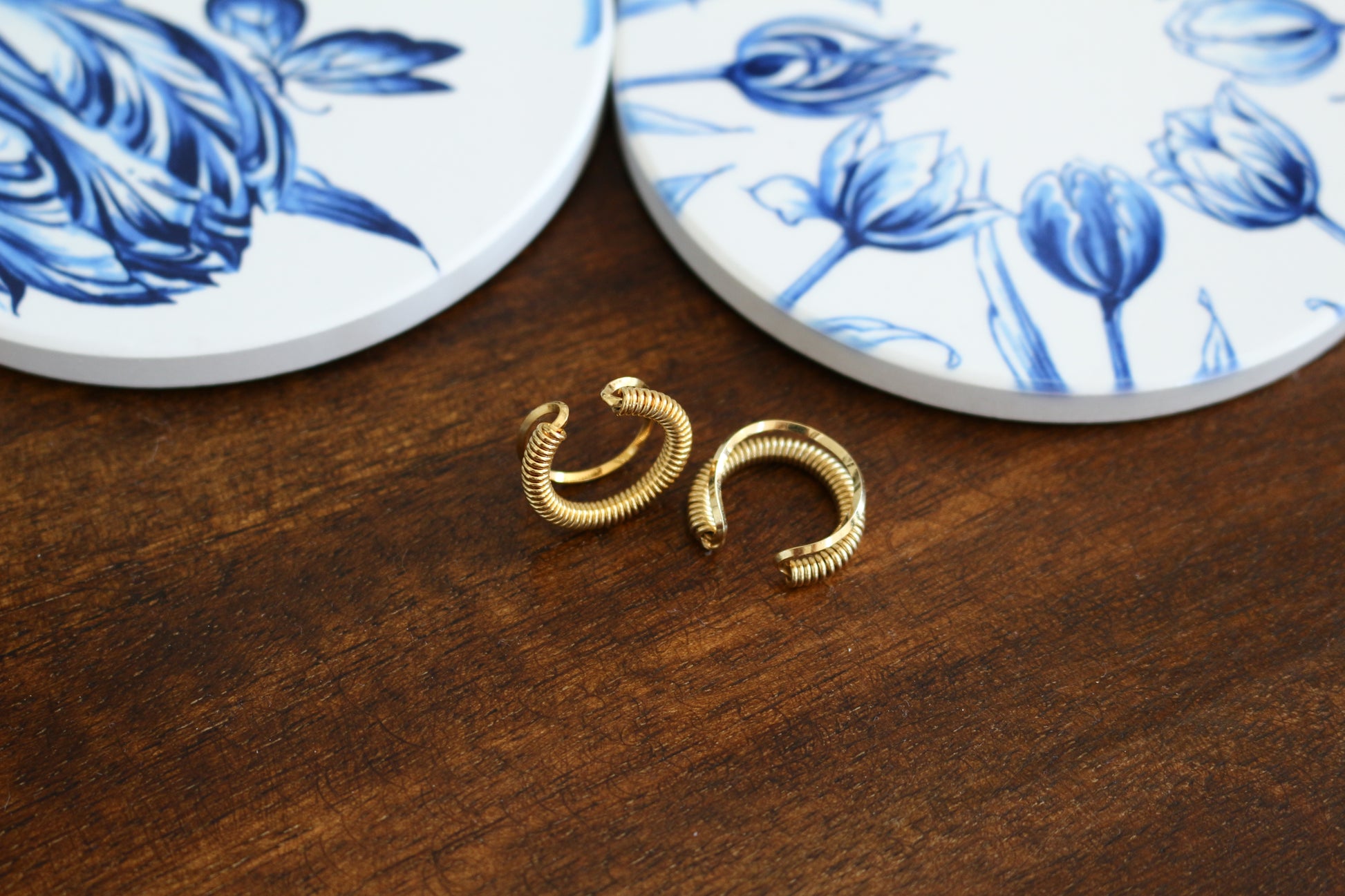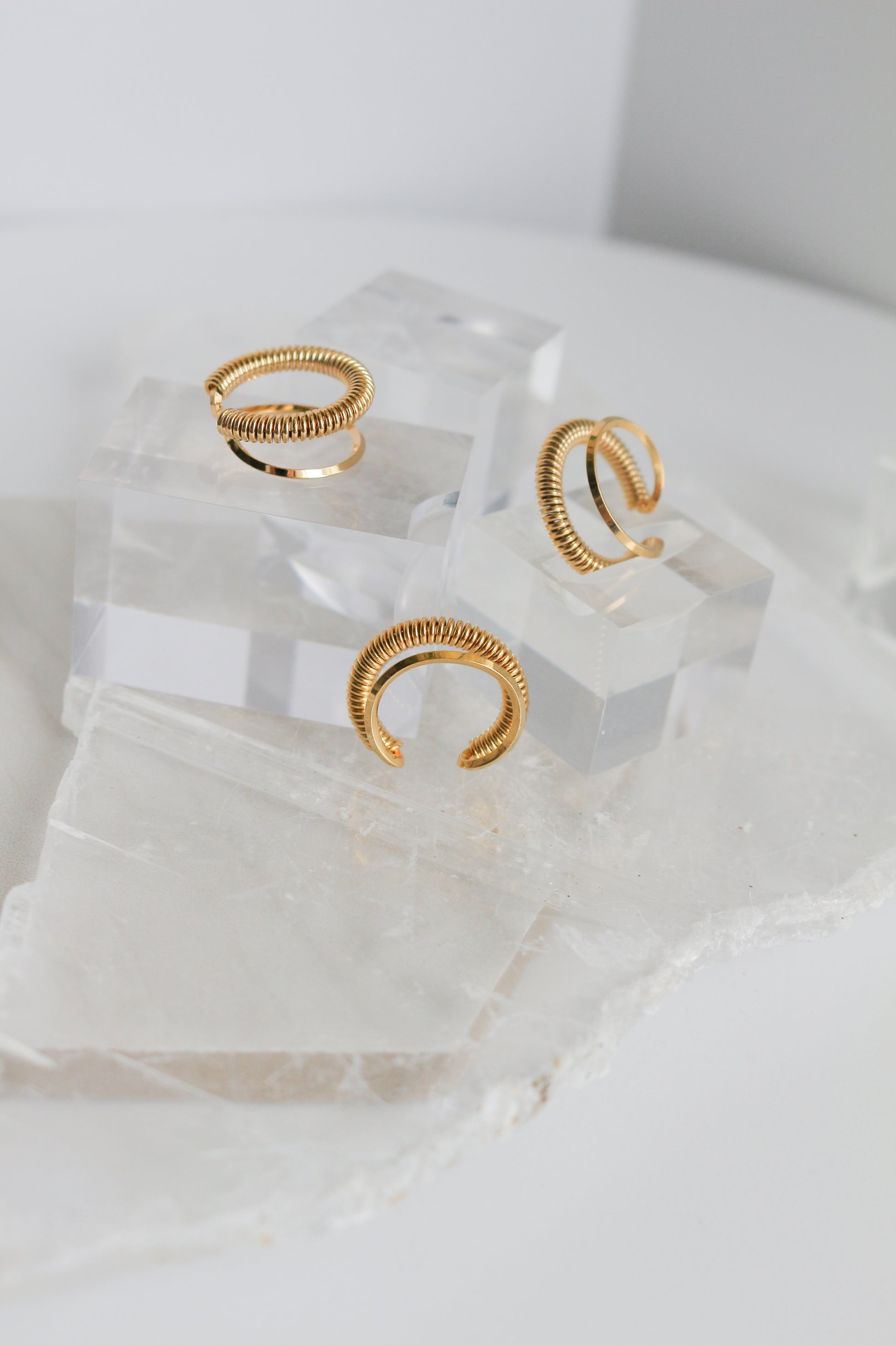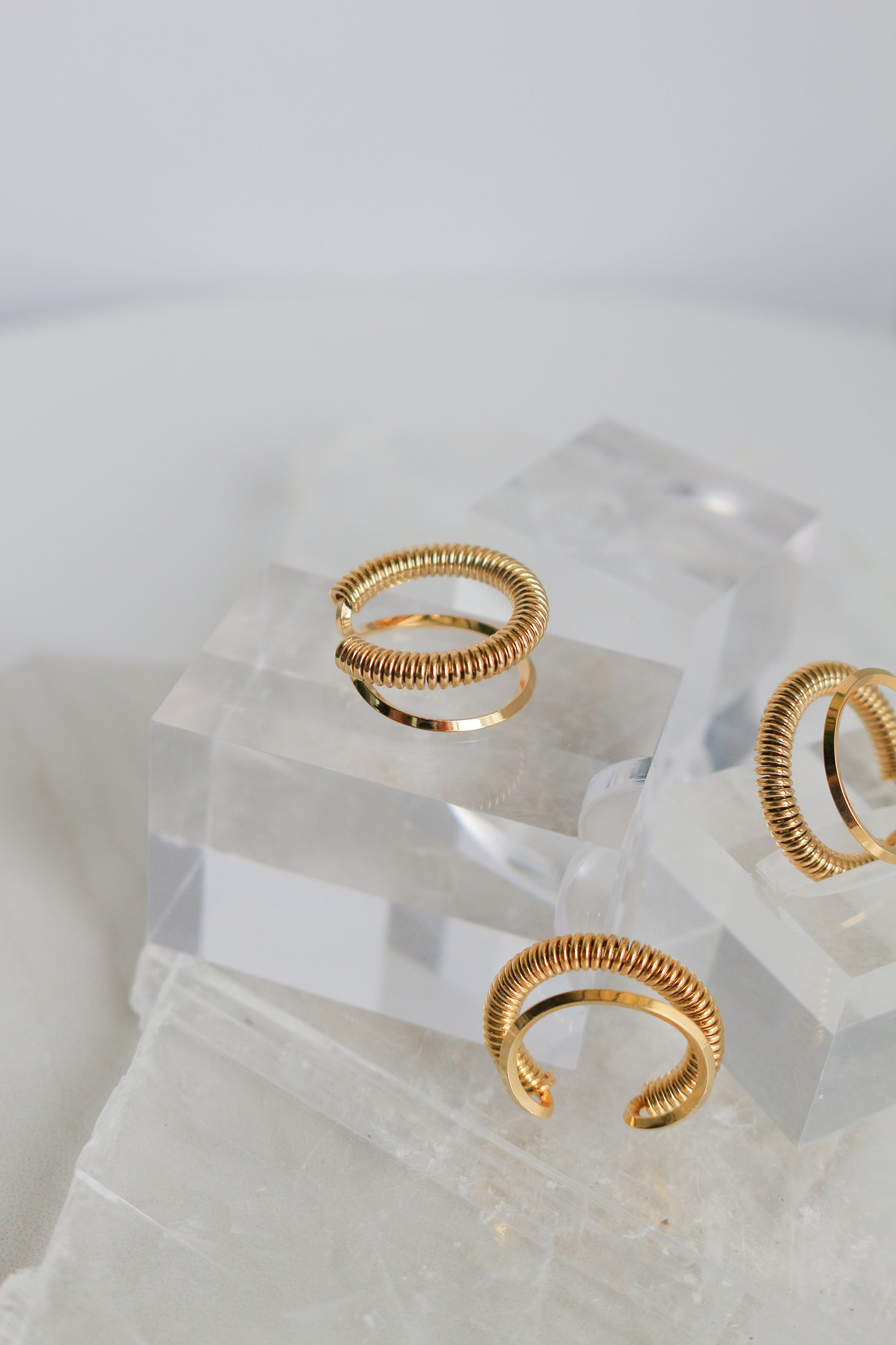 Coil shaped metal ear cuff. A simple but elegant design that works as a perfect accent piece alone or with other earrings.