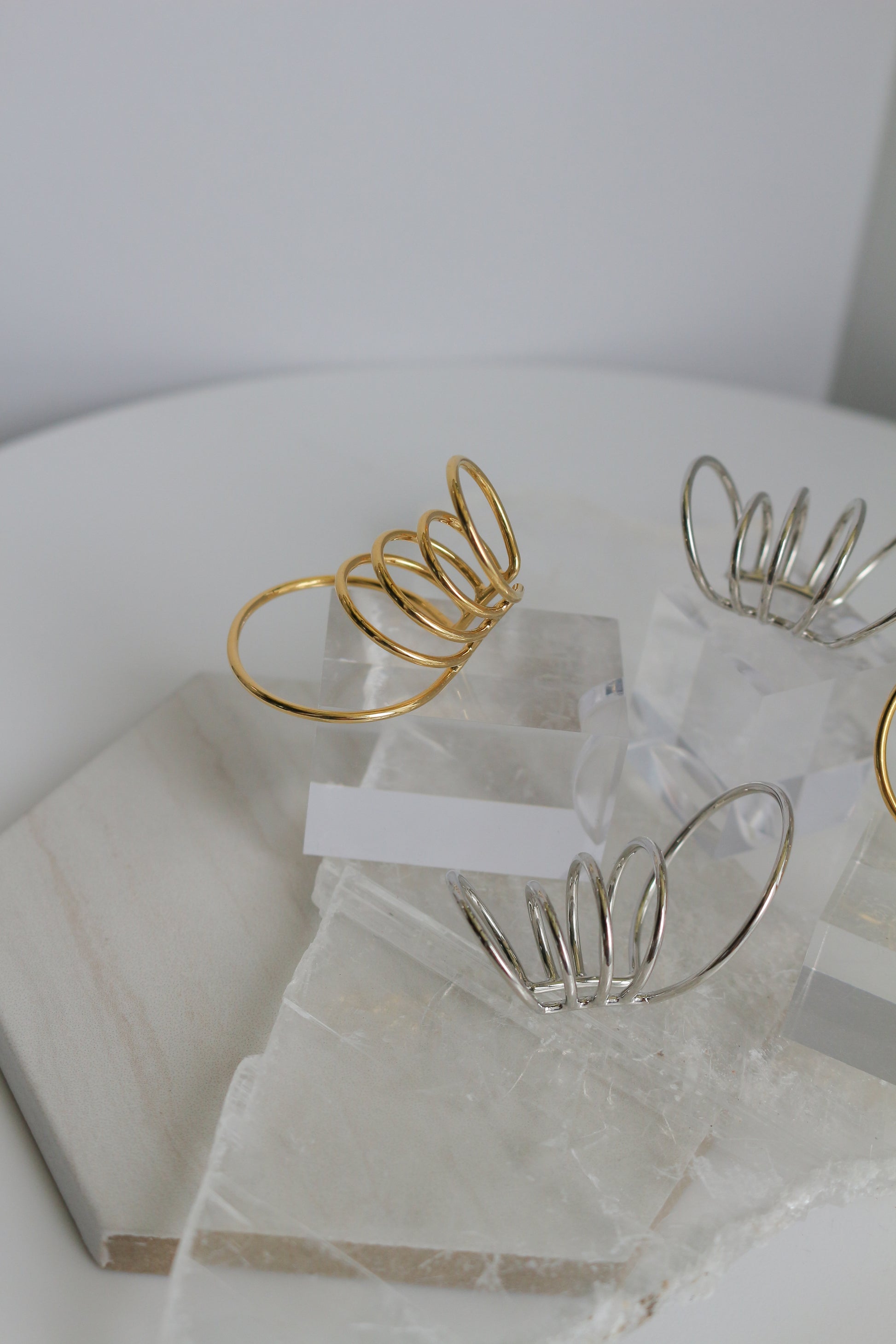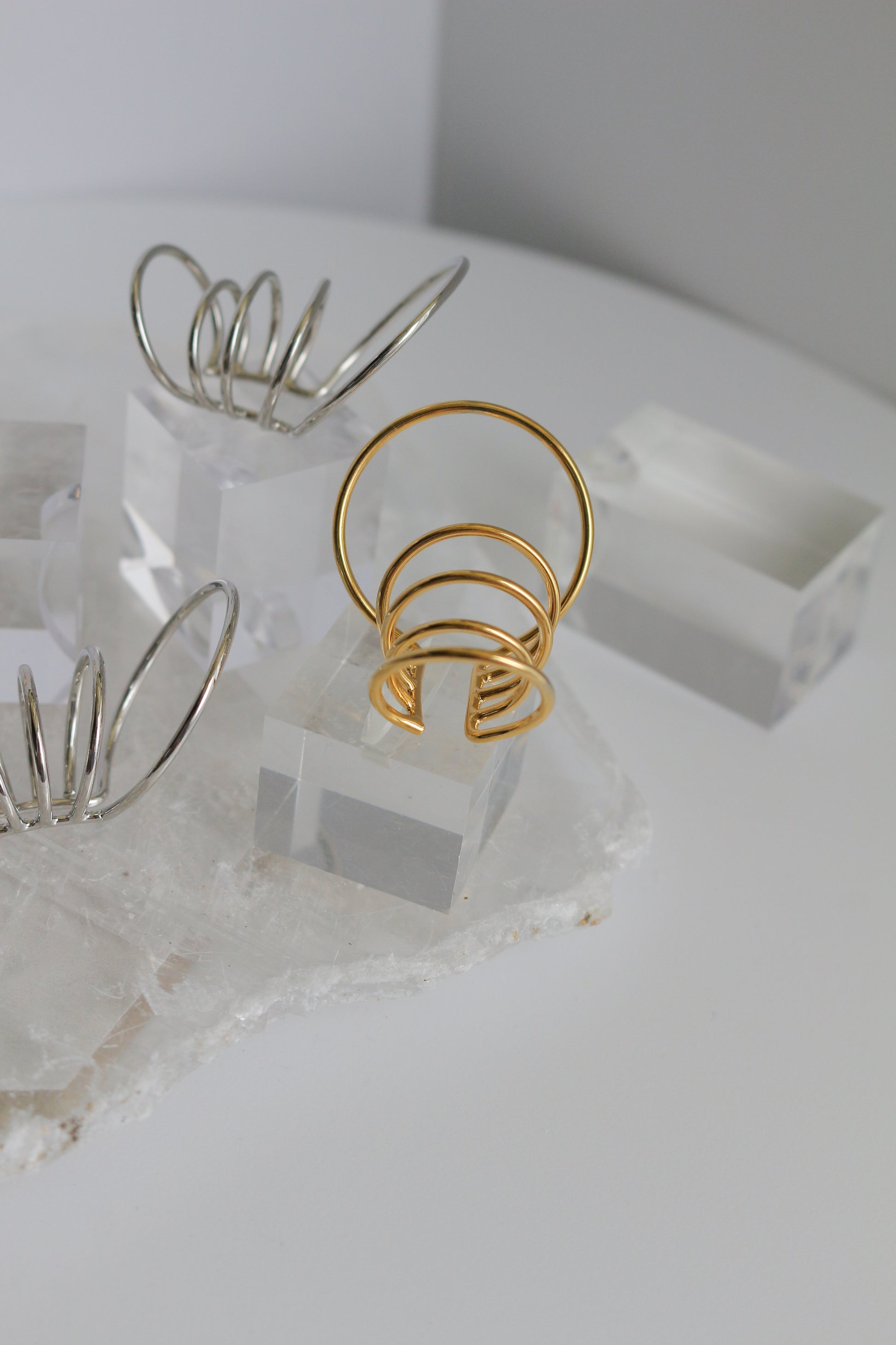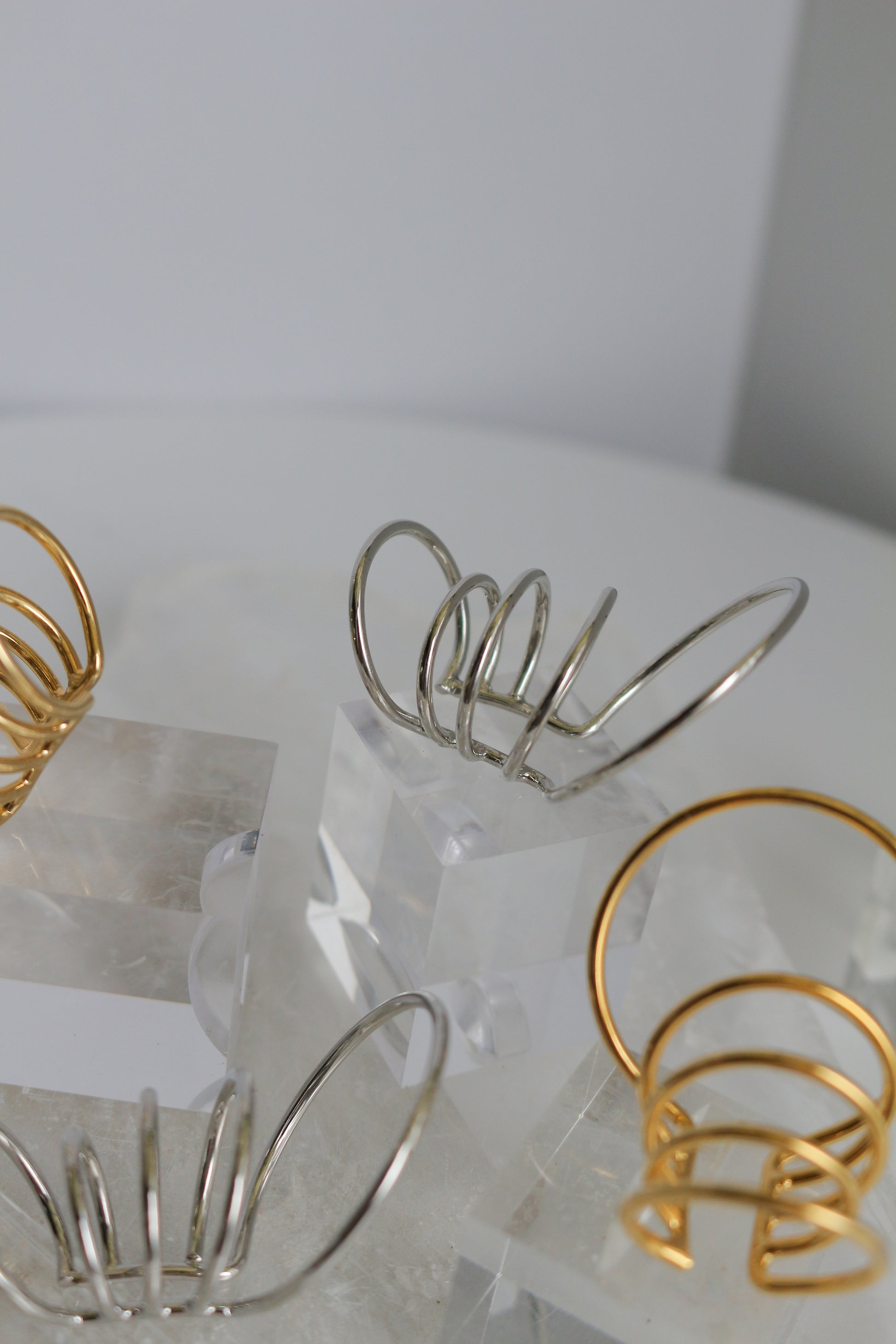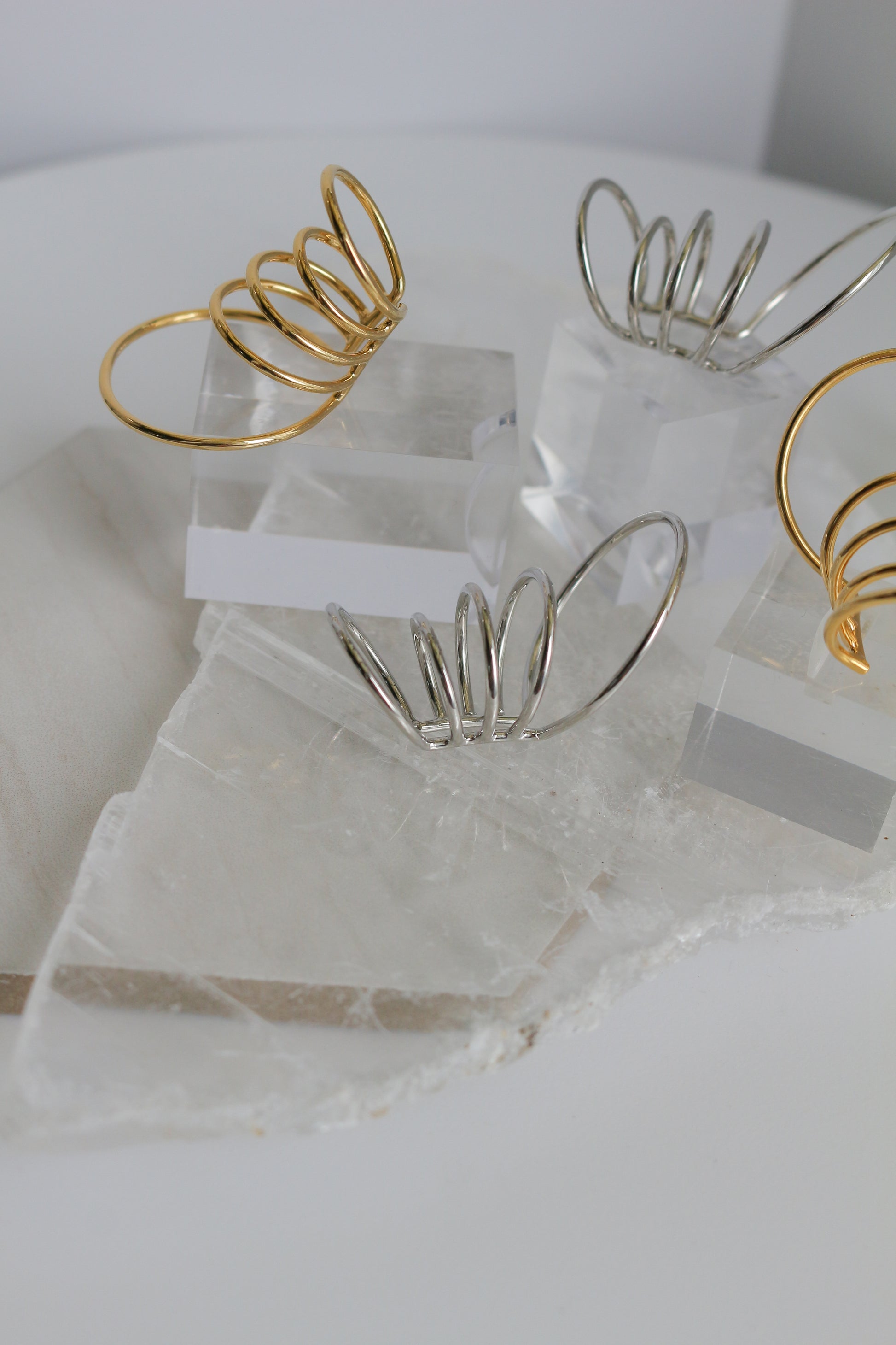 Hoop shaped metal ear cuffs. A simple but elegant design that works as a perfect accent piece alone or with other earrings.