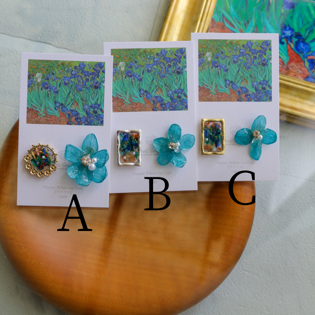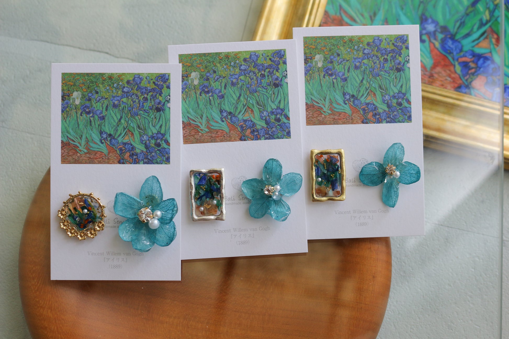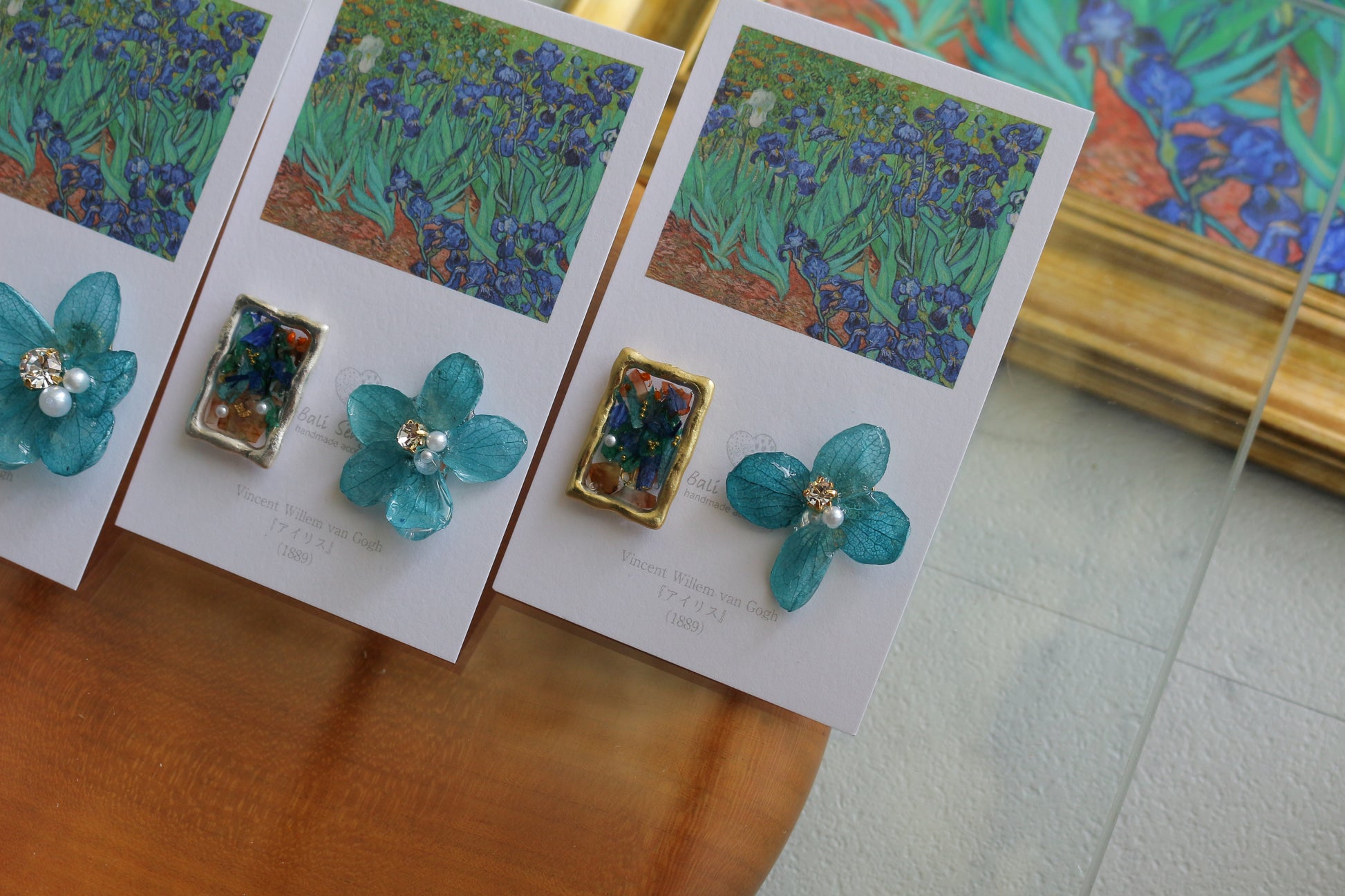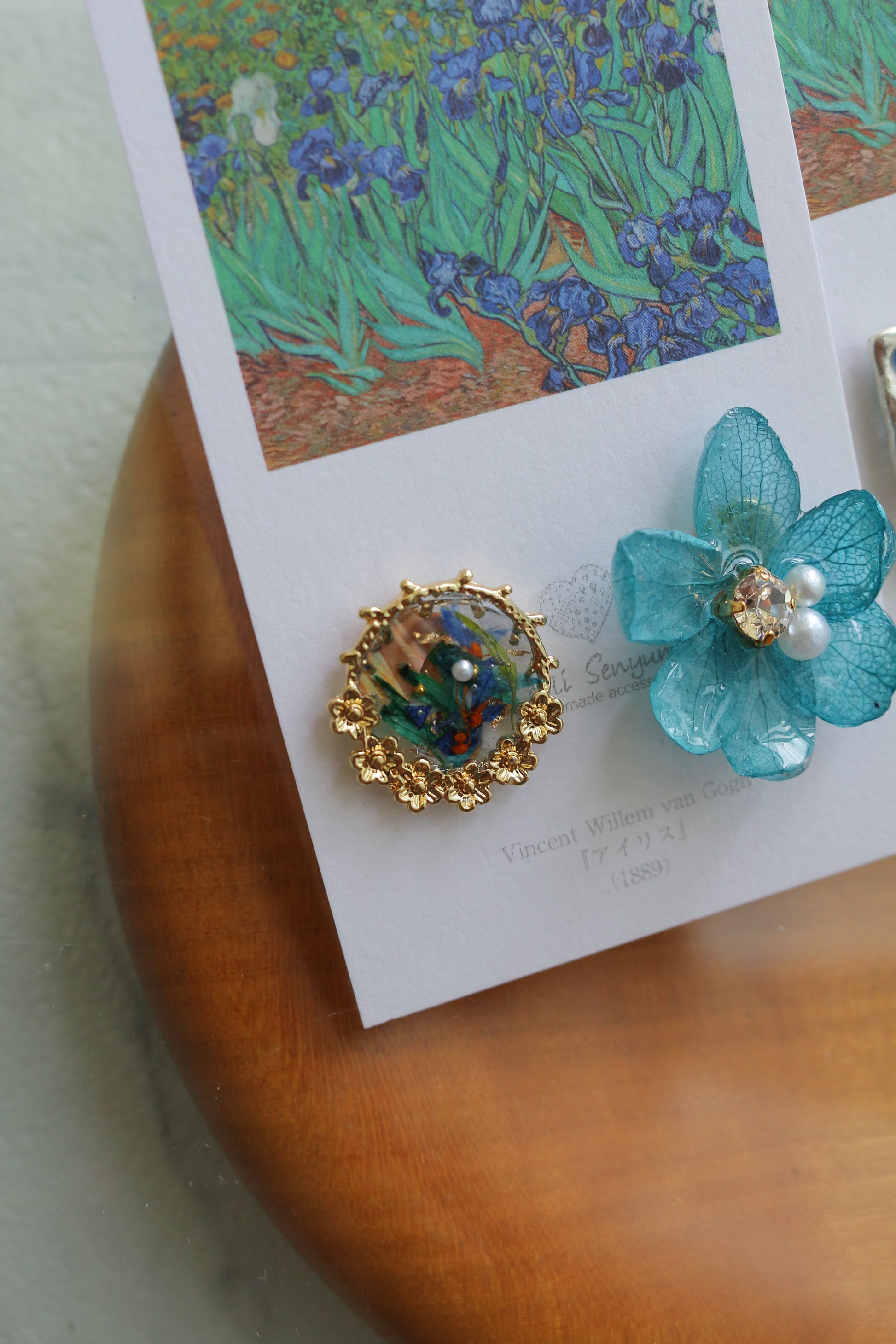Gogh Inspired Flower and Medallion No.3 イヤリング Clip-on アイリス