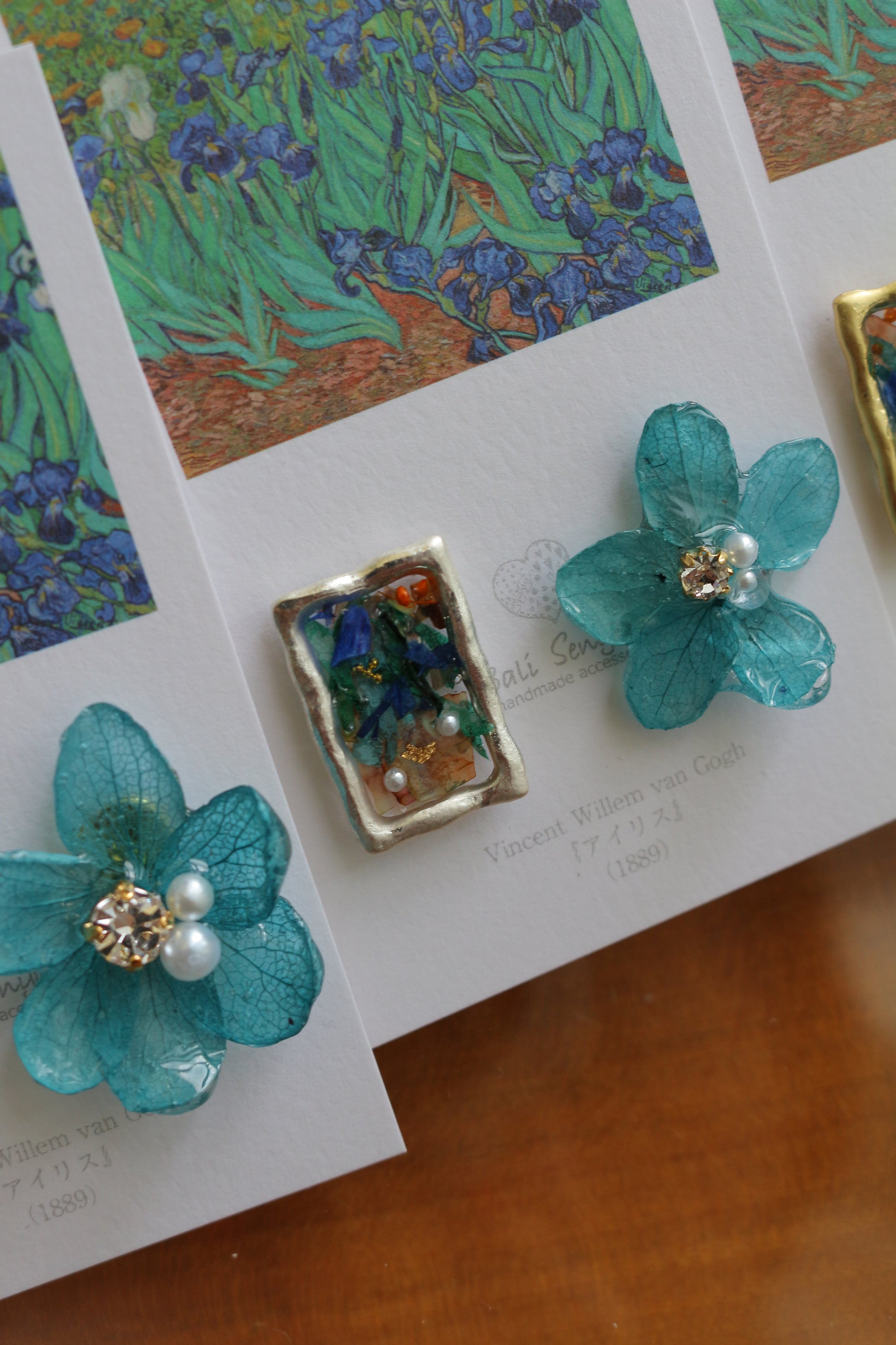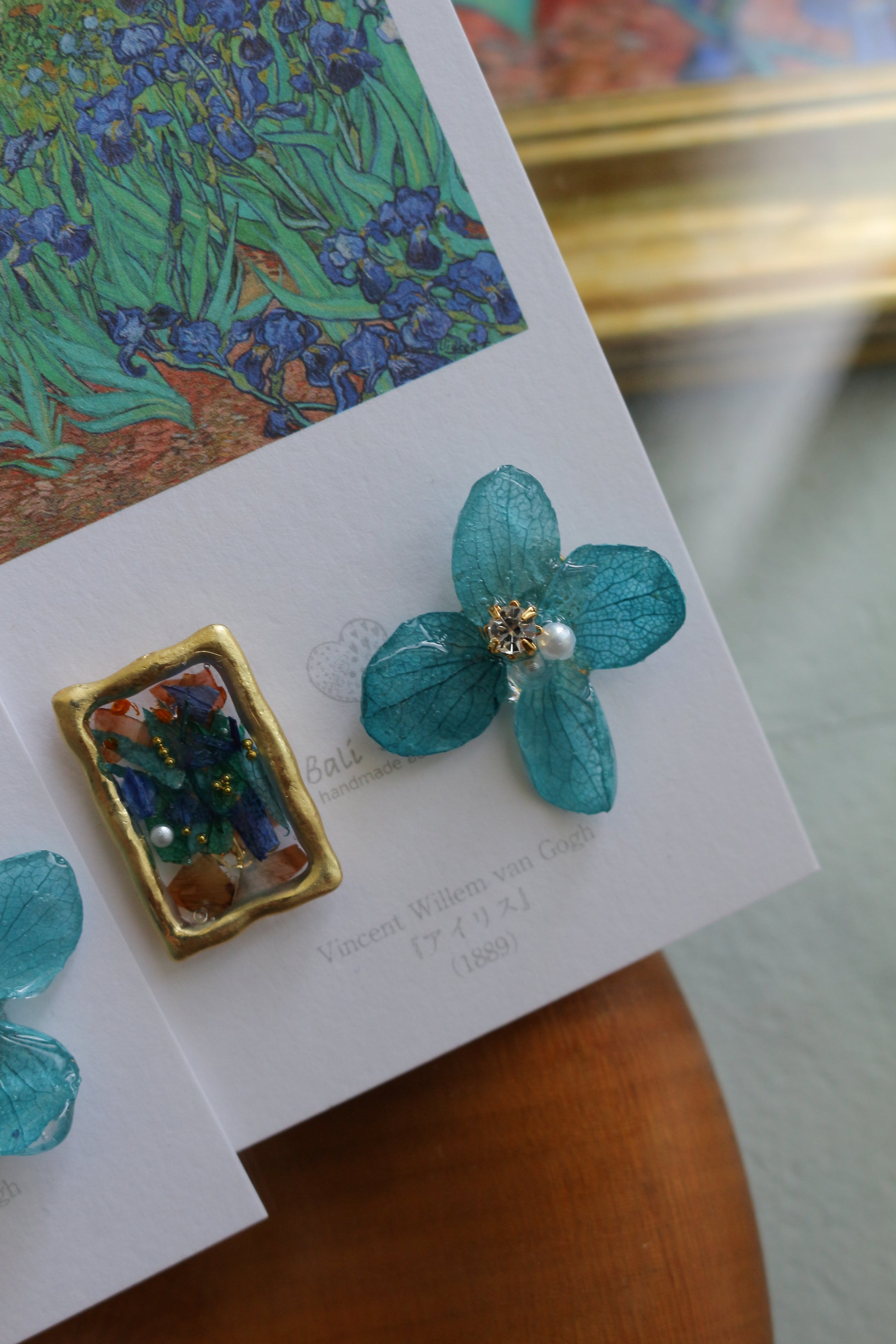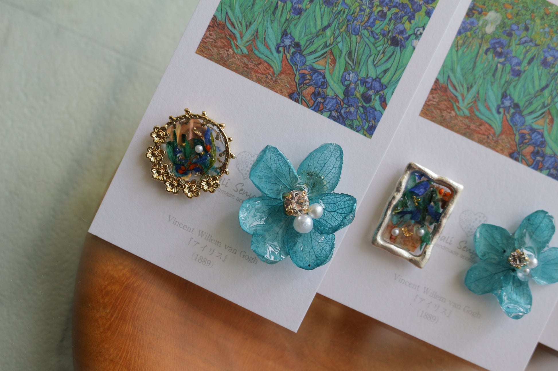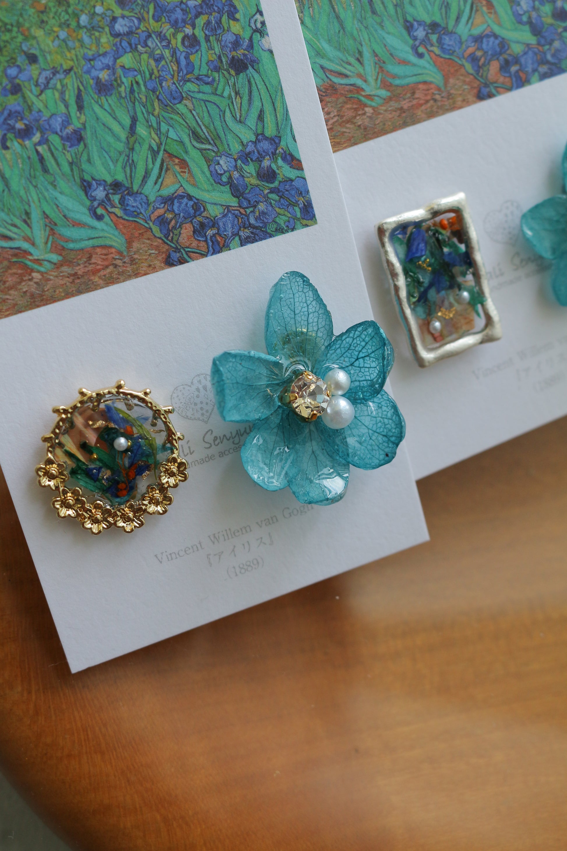 Gogh Inspired Flower and Medallion No.3 イヤリング Clip-on アイリス
