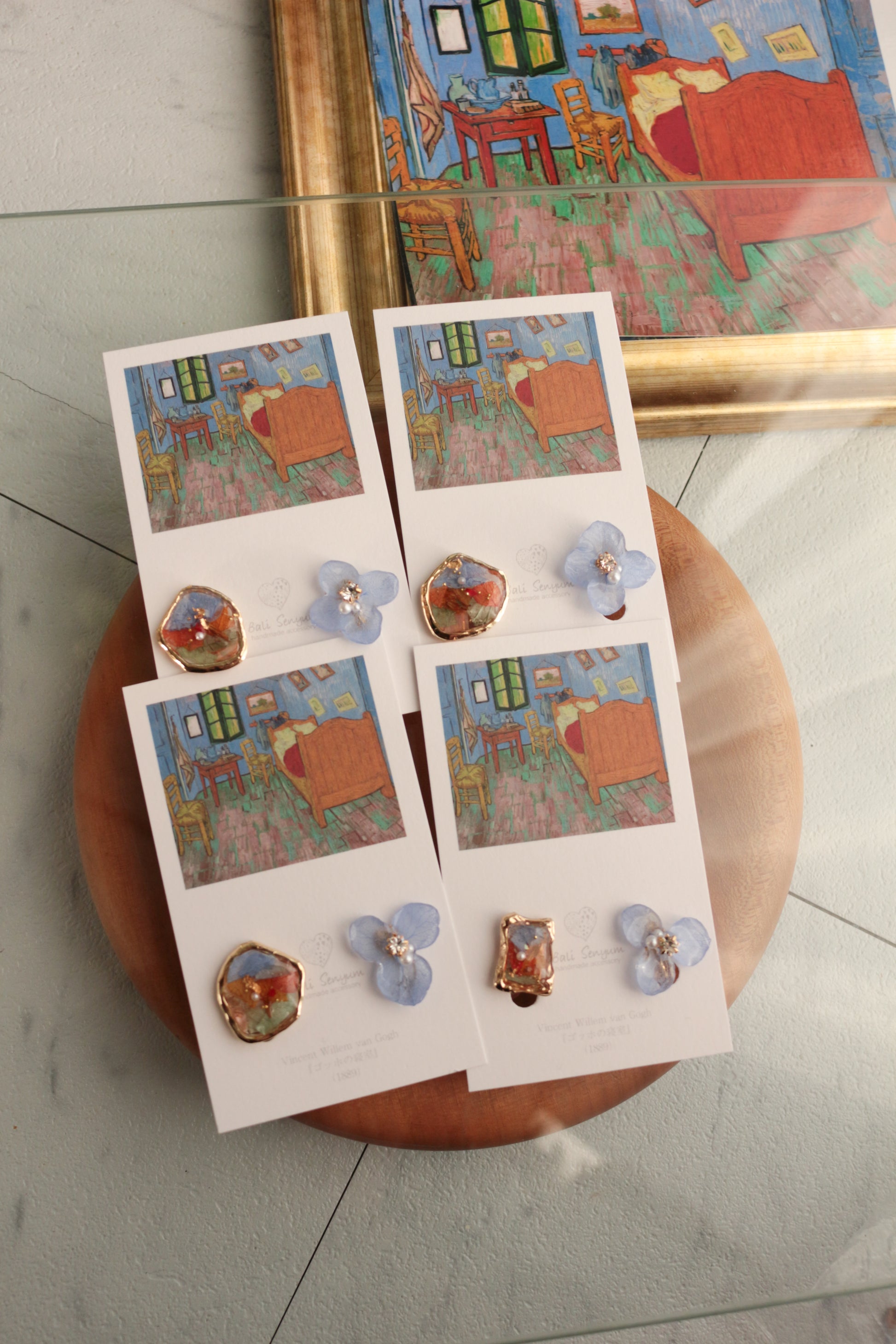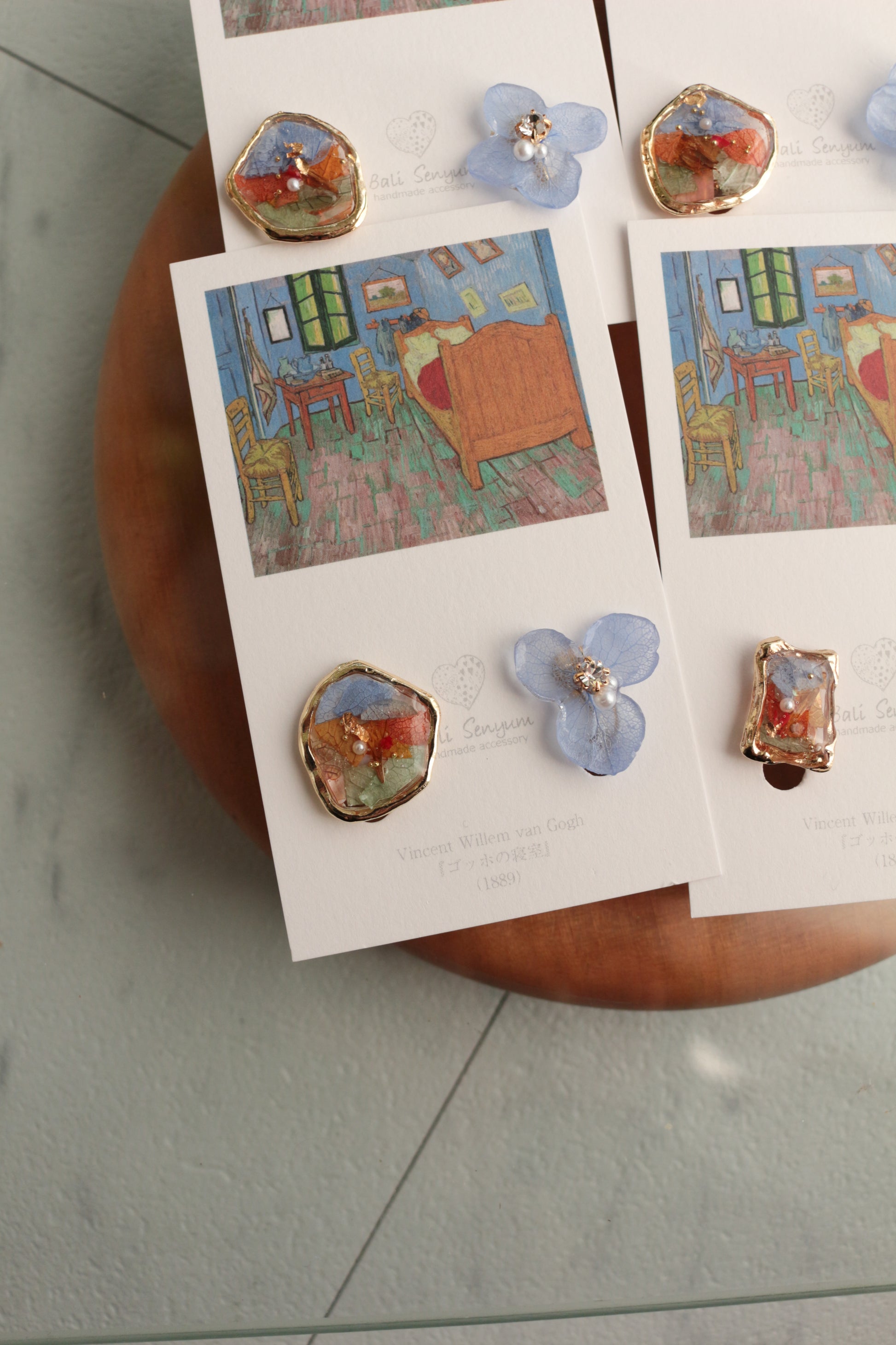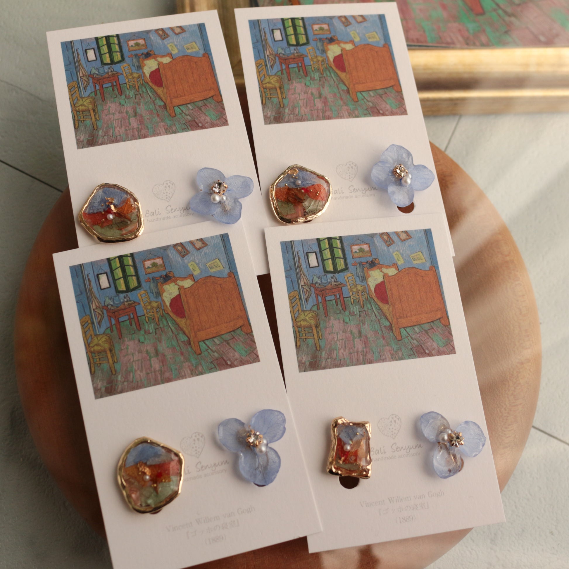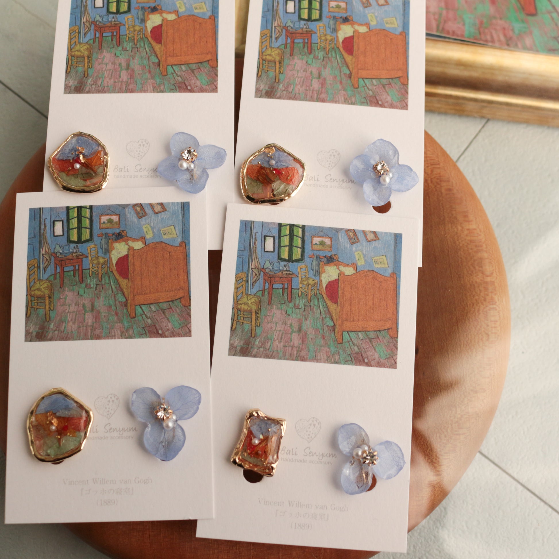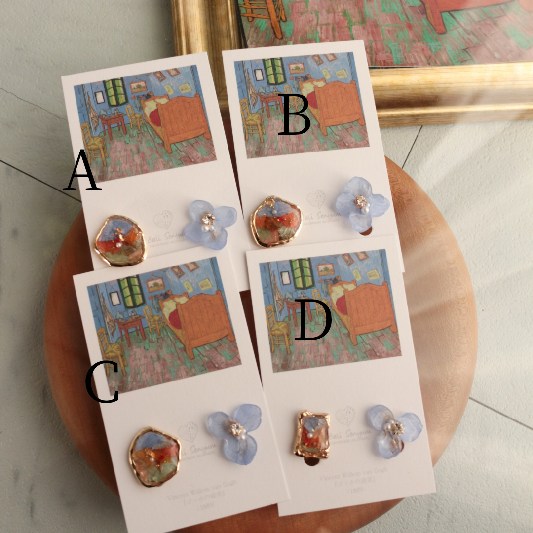 Gogh Inspired Flower and Medallion No.4イヤリング Clip-on ゴッホの寝室