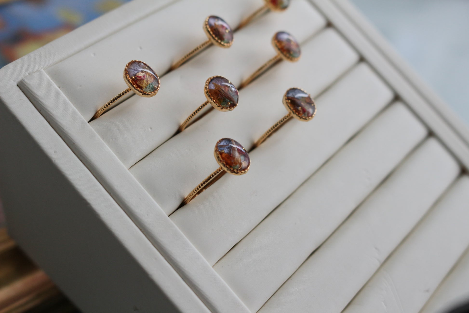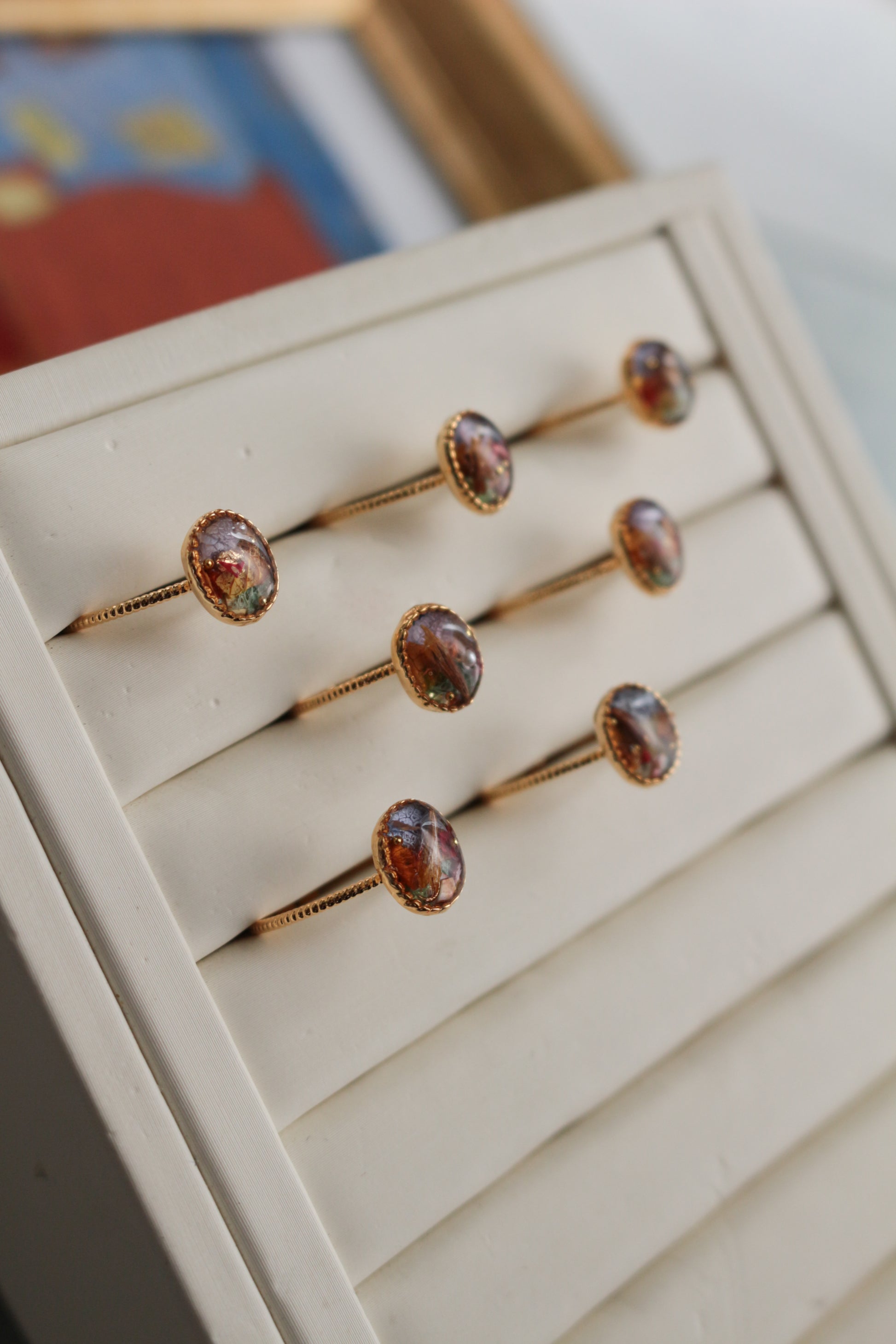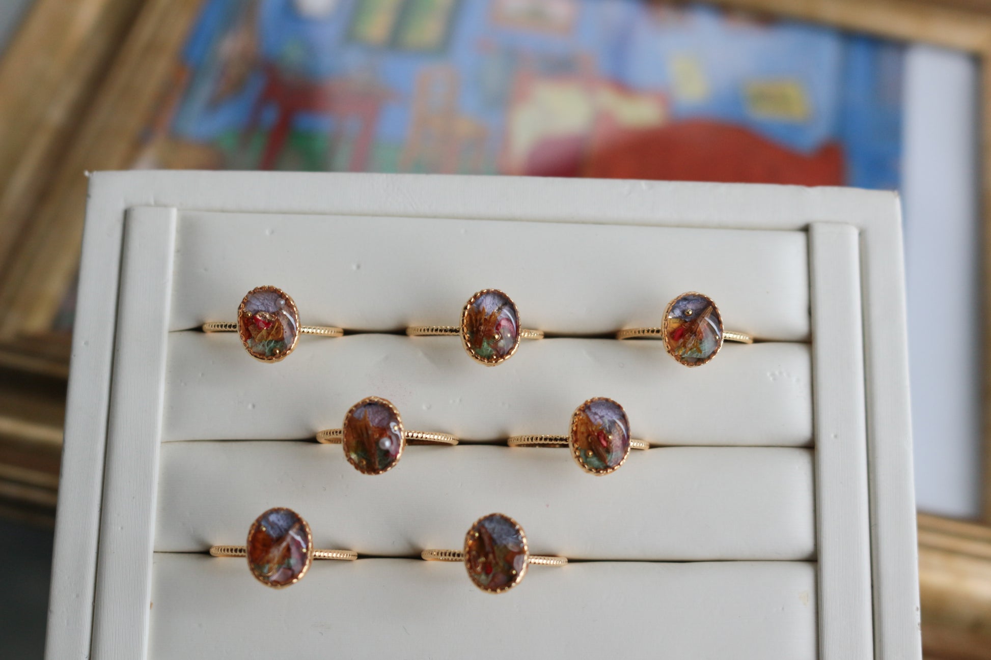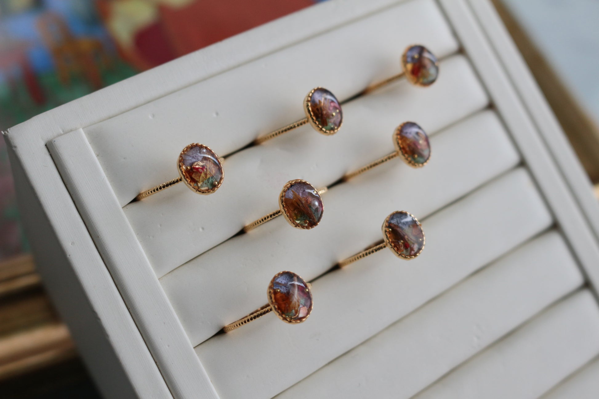 Bali Senyumオリジナルリングにモネの絵画を植物や貝殻を使用して表現しました。