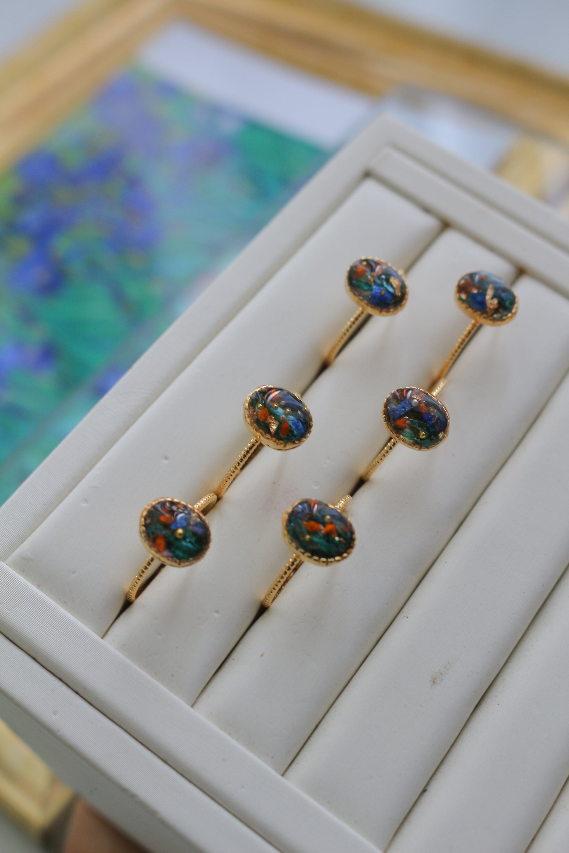 I used real flower petals to create the design that's inspired by Van Gogh's Irises.