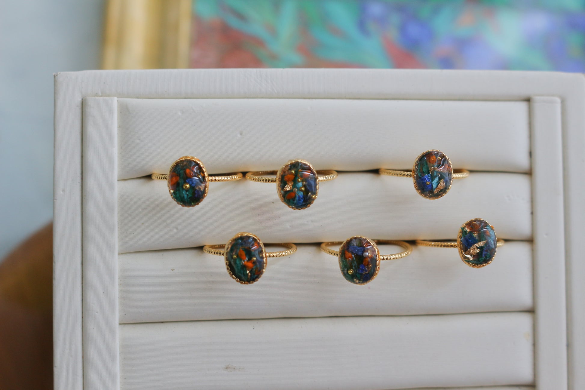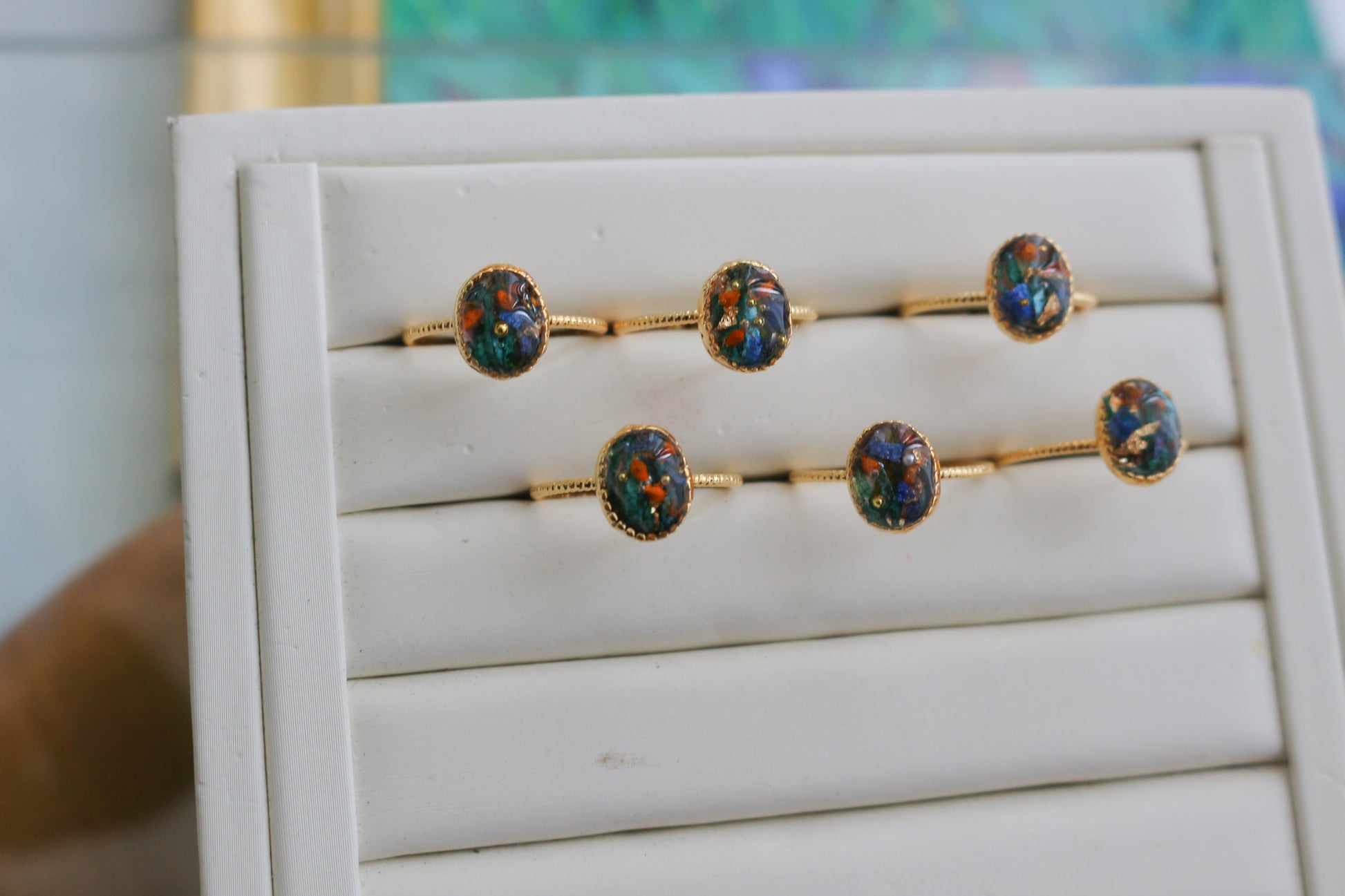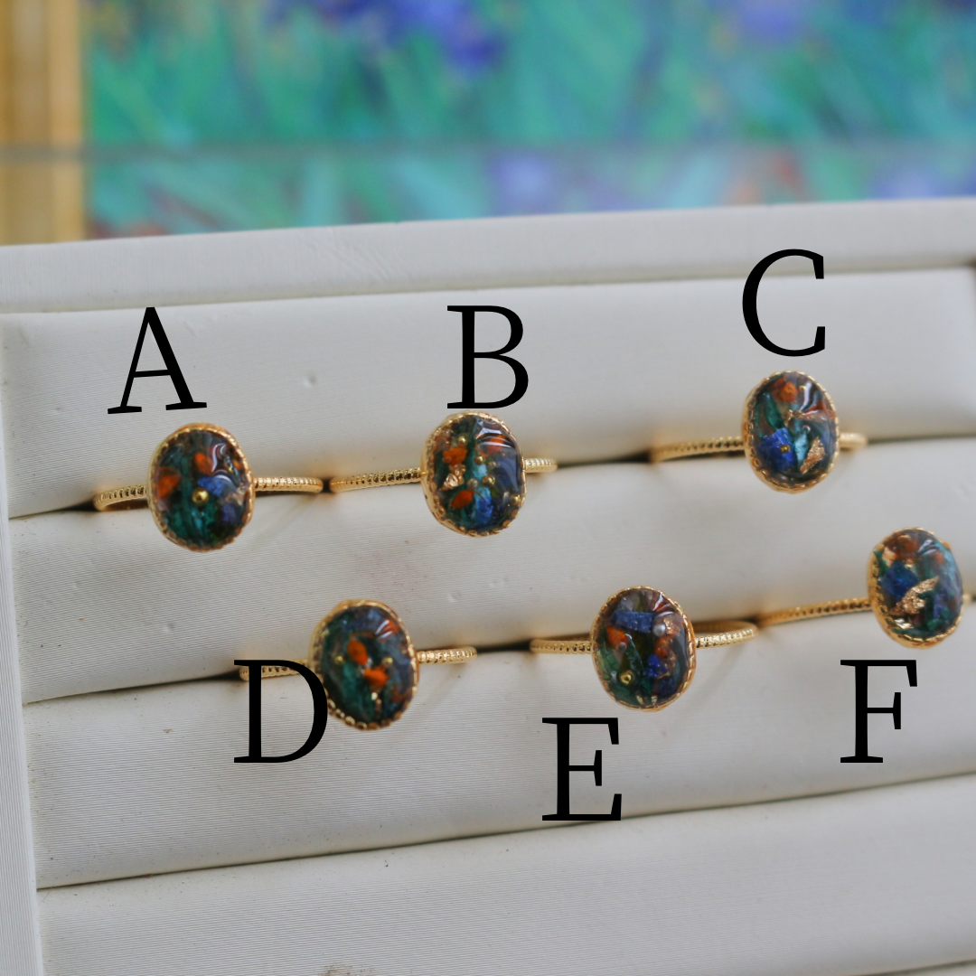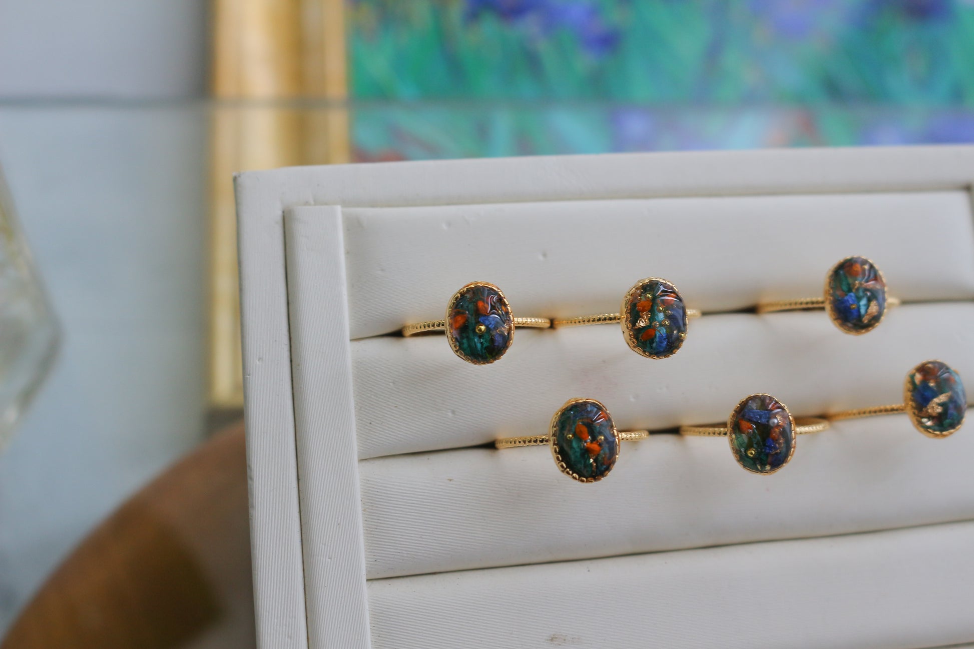 Bali Senyumオリジナルリングにモネの絵画を植物や貝殻を使用して表現しました。