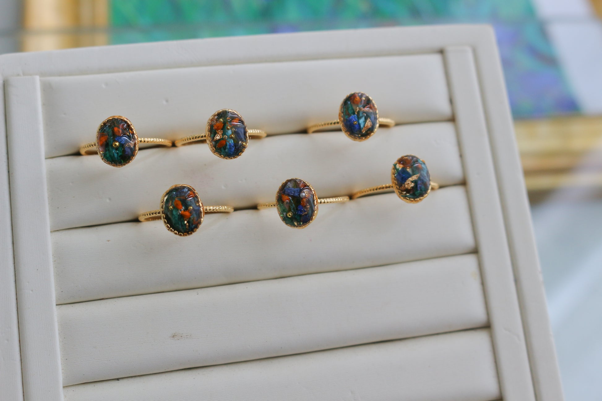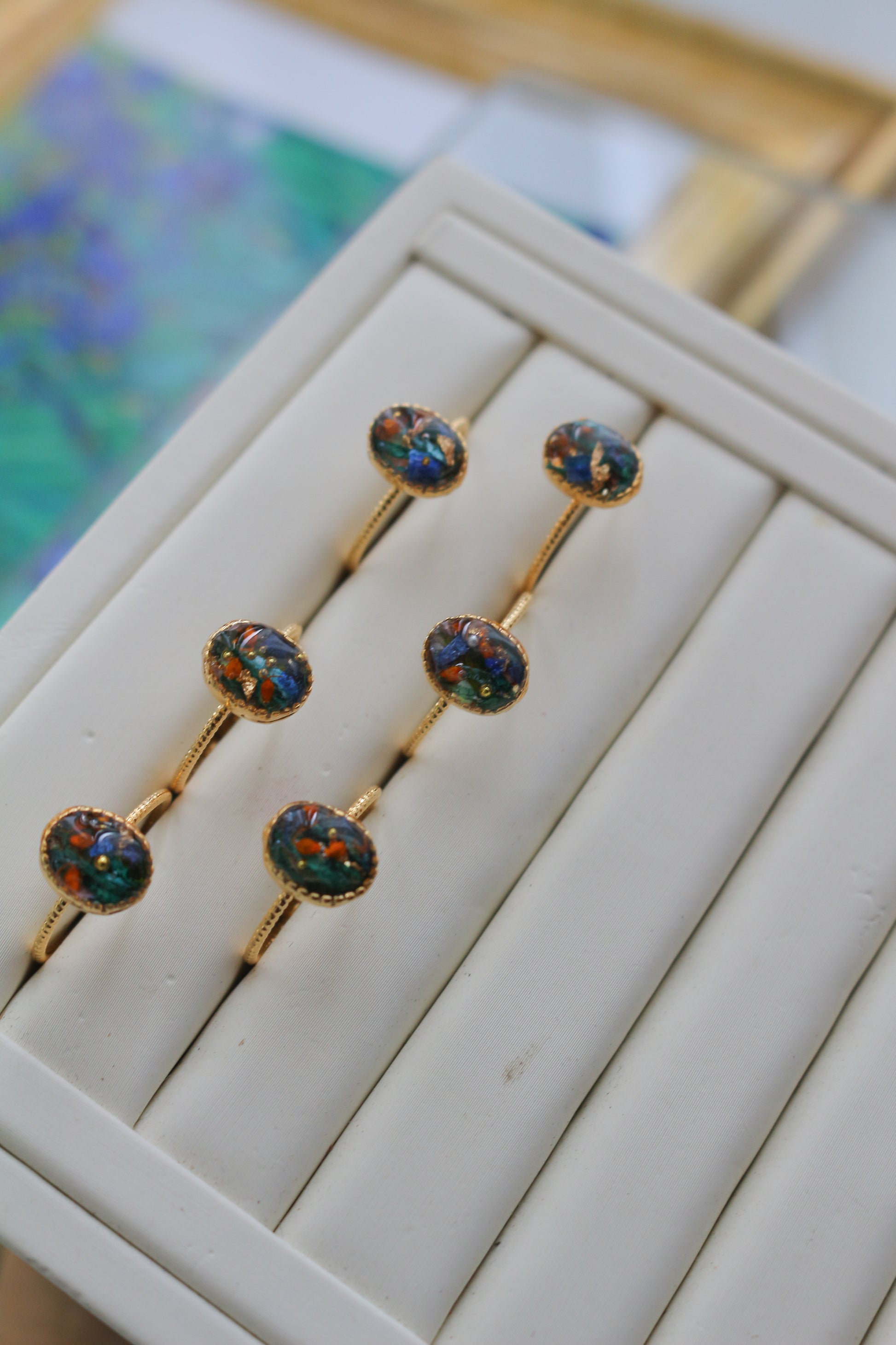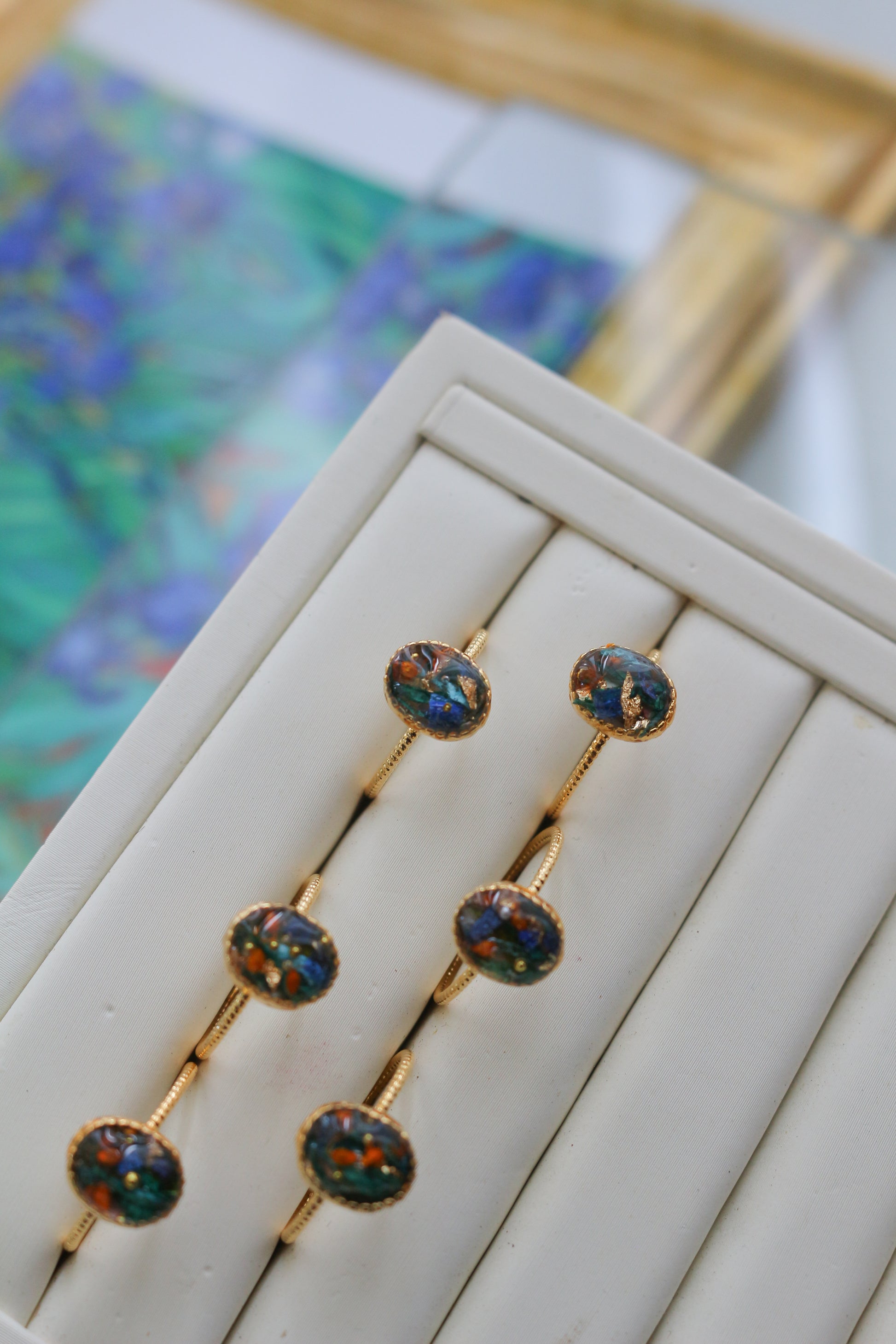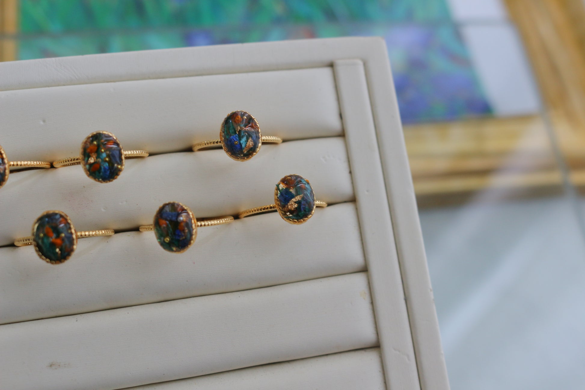 Bali Senyumオリジナルリングにモネの絵画を植物や貝殻を使用して表現しました。
