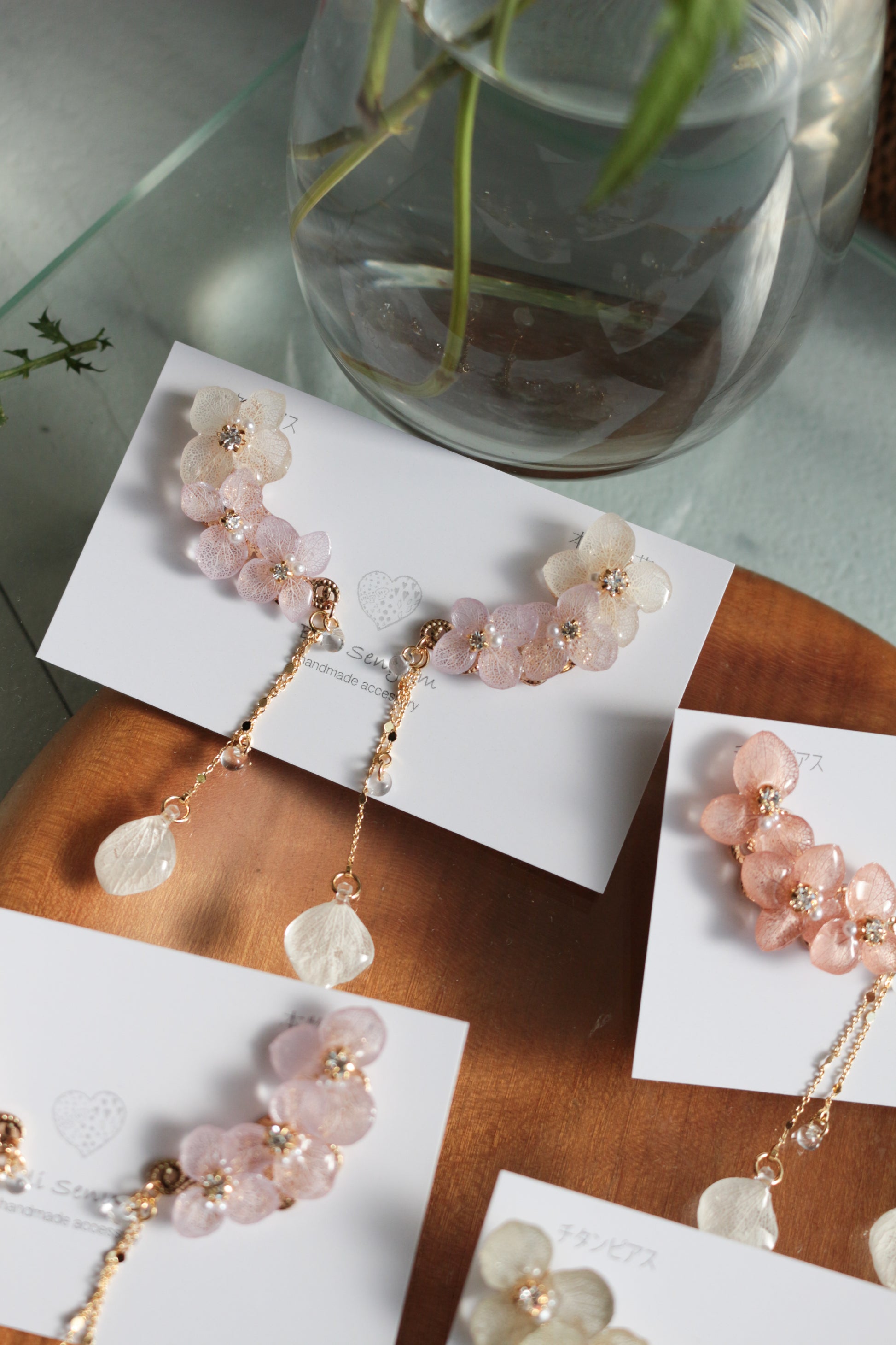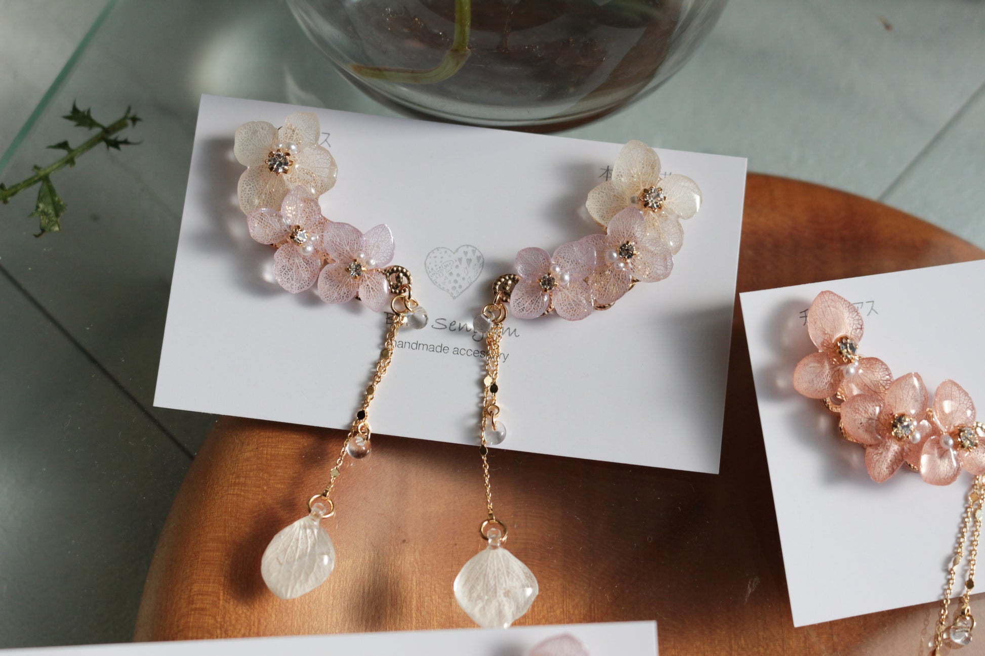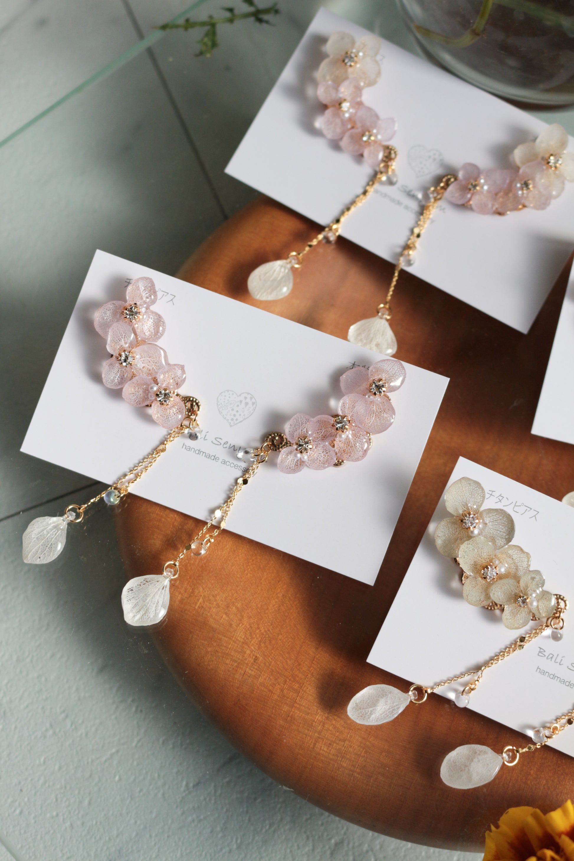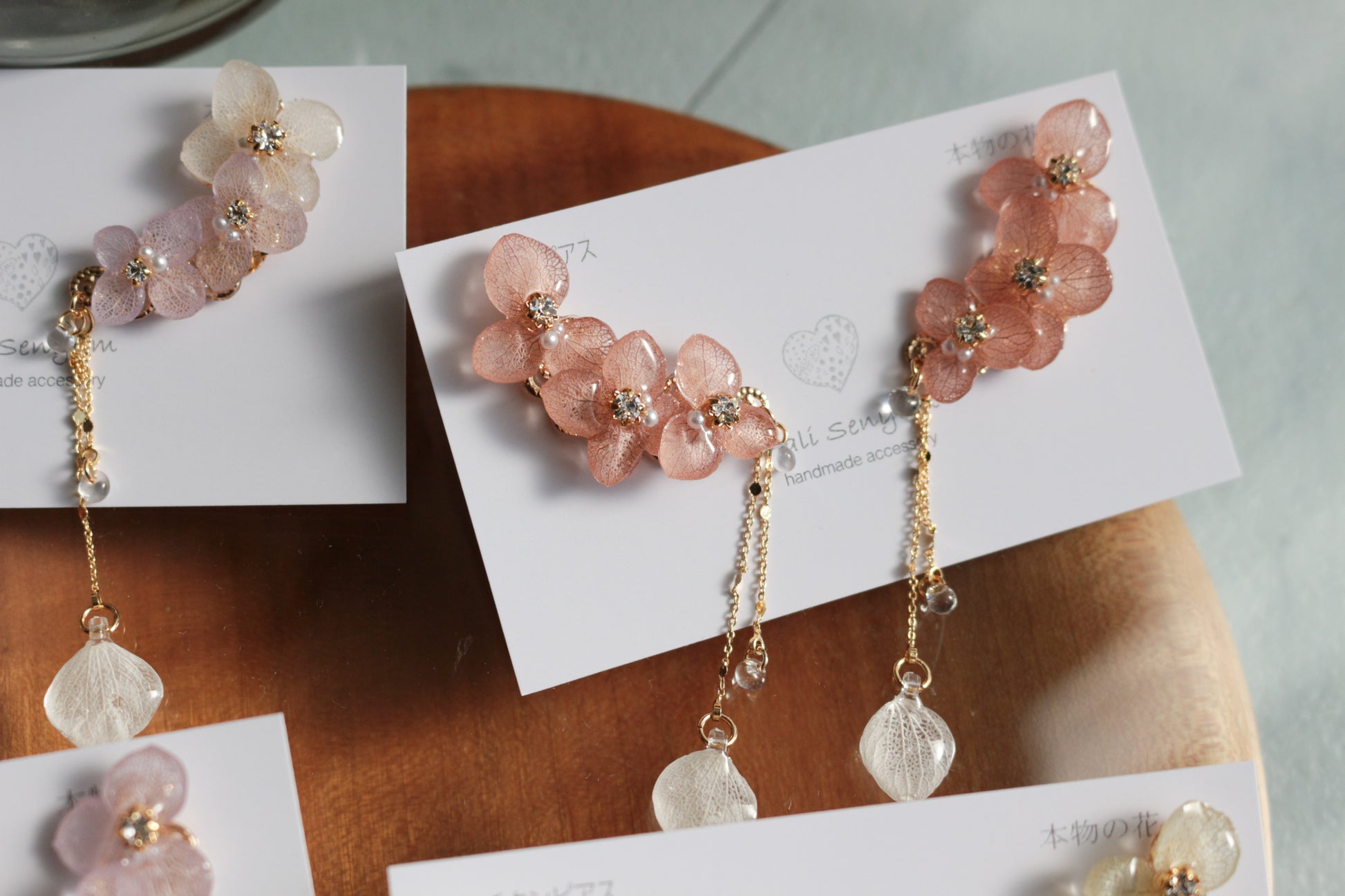 チェーンの先にも紫陽花の花びらが揺れています。