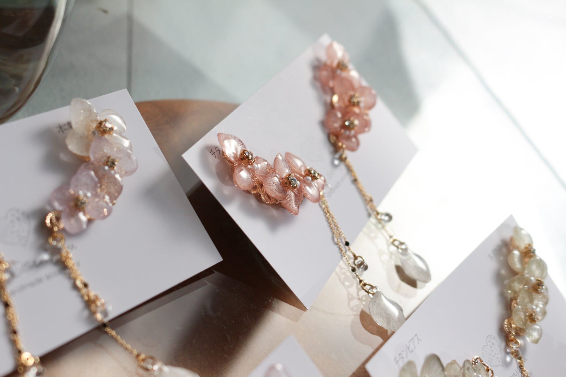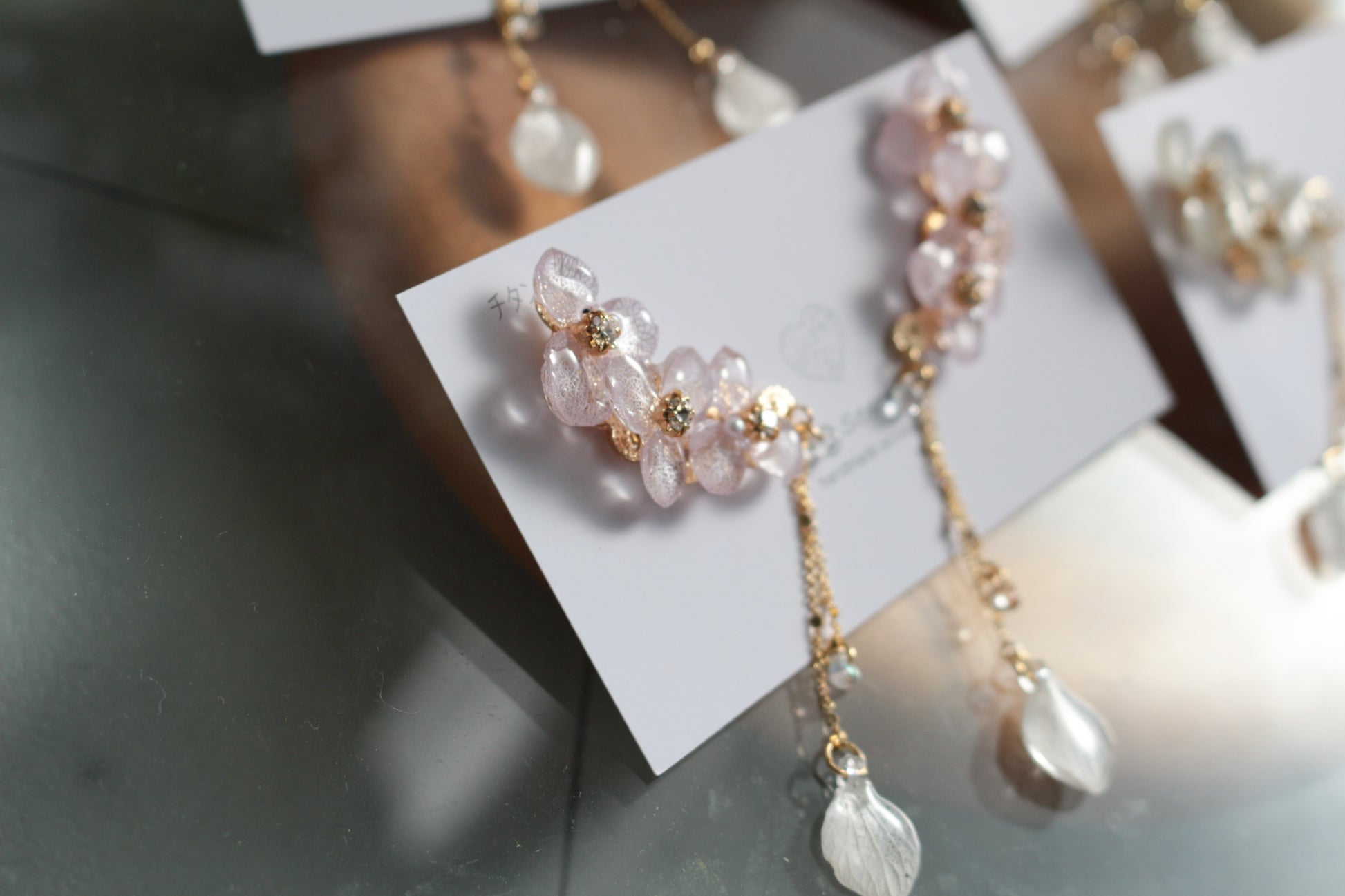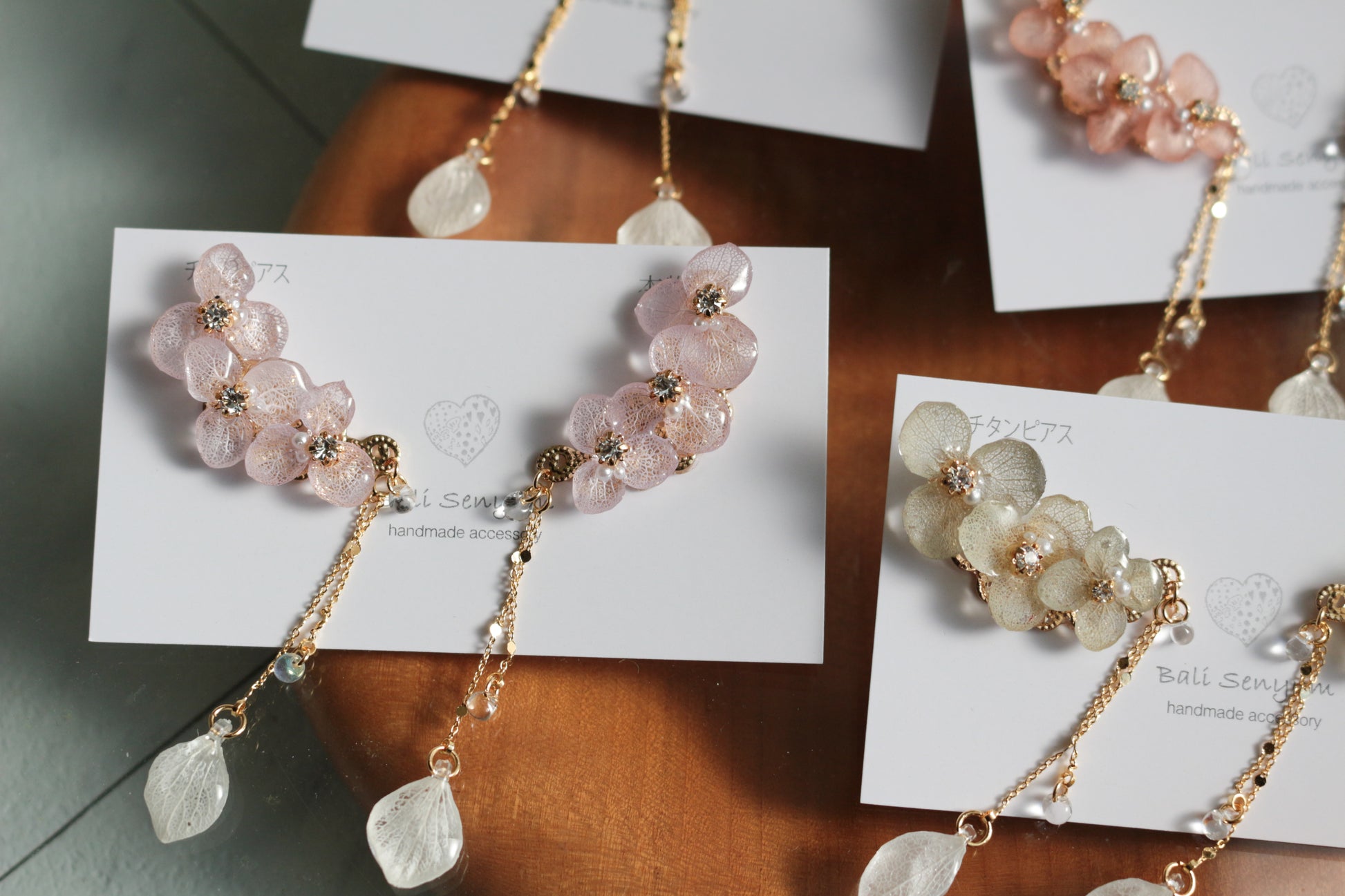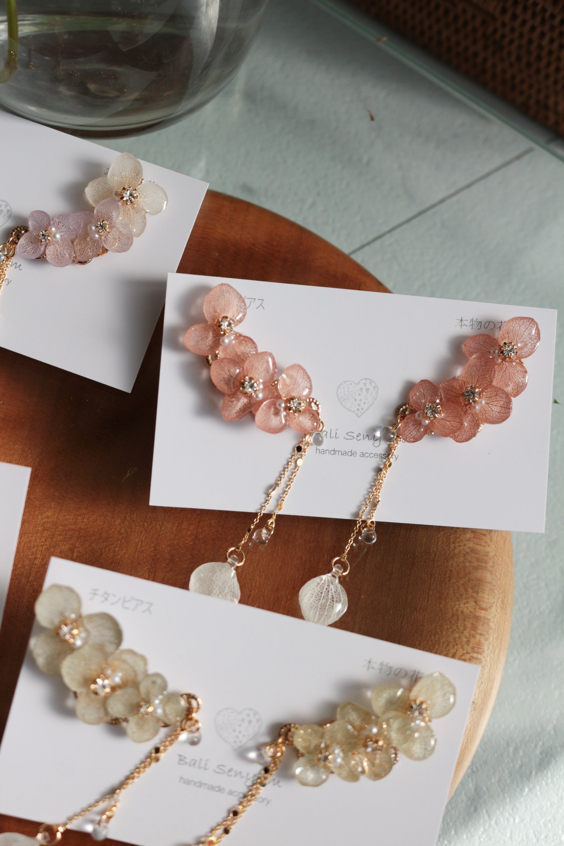 チェーンの先にも紫陽花の花びらが揺れています。