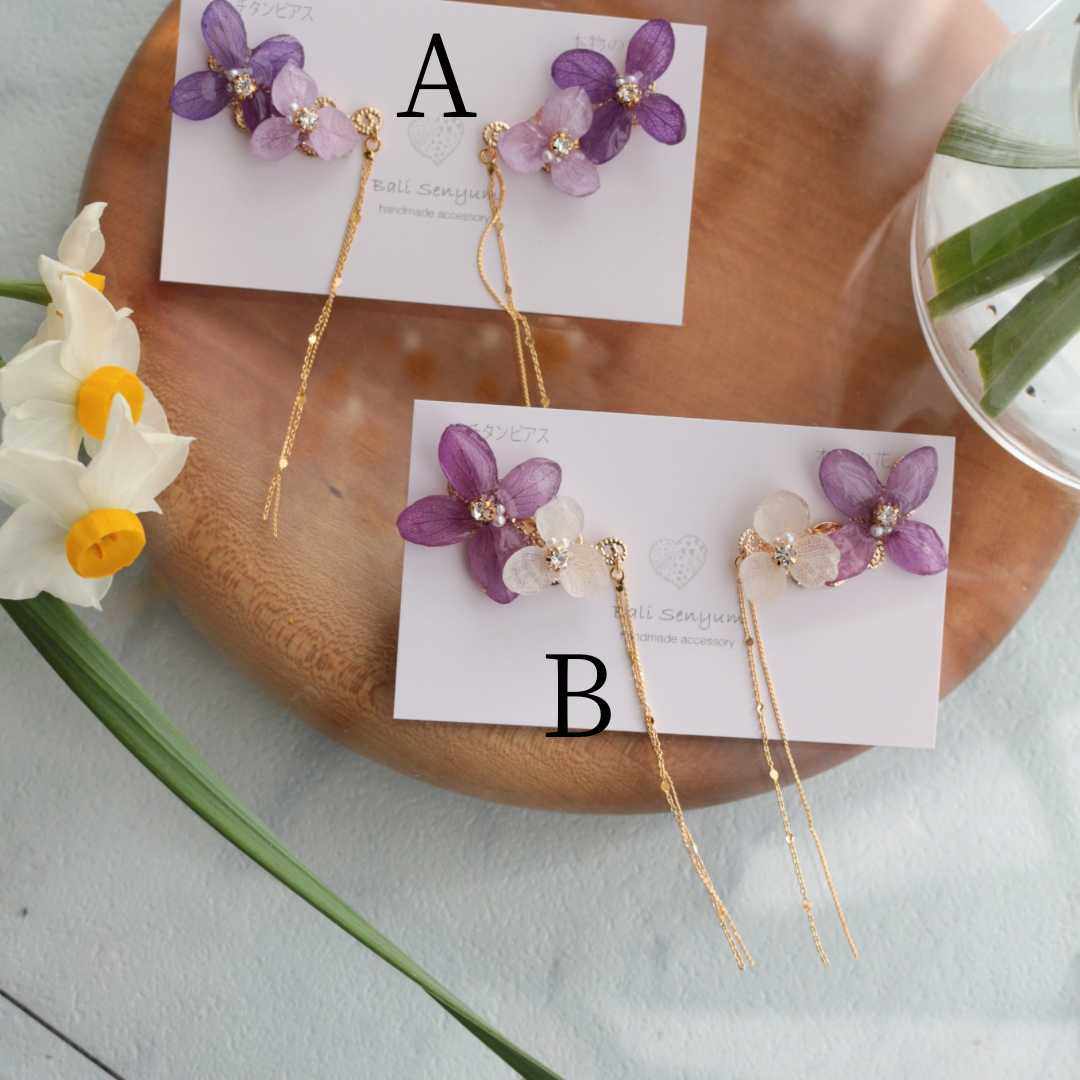 Hydrangea Flying Butterfly Earrings No.45 - Titanium Pierce(ピアス)
