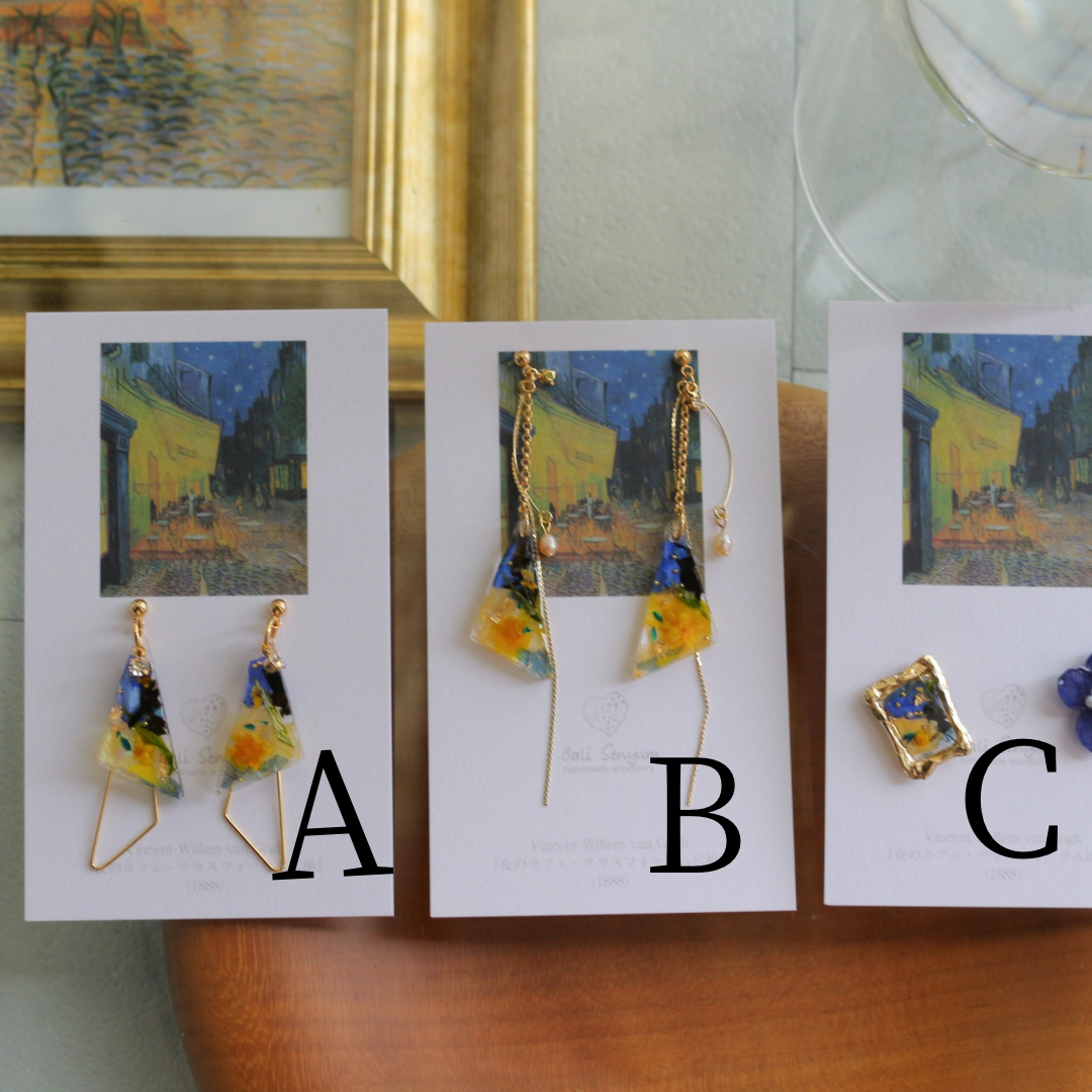 Gogh Inspired Earrings Café Terrace at Night -夜のカフェ・テラスフォーラム広場