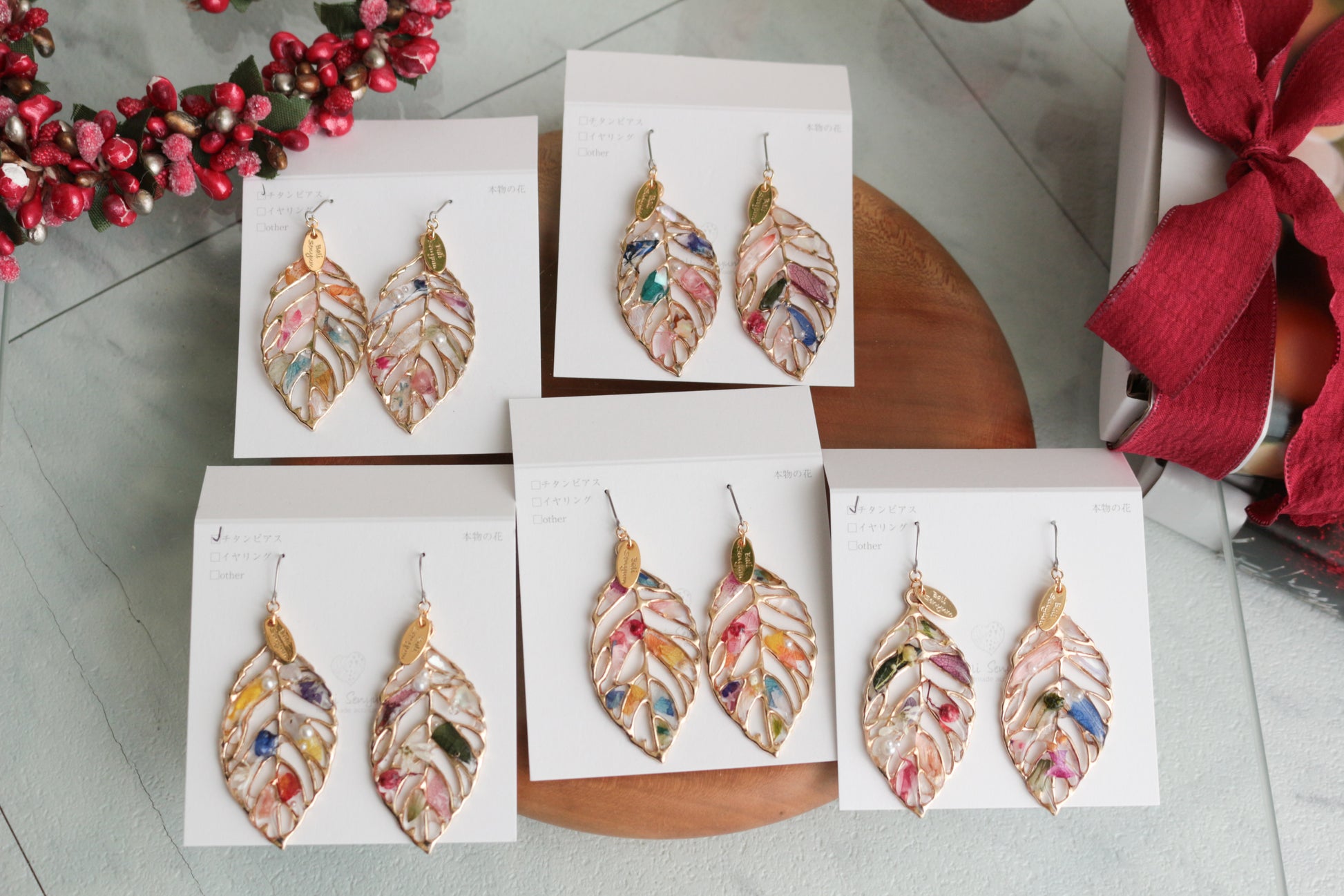 Leaf Earrings With Seasonal Flower Petals No.58 ピアスorイヤリング