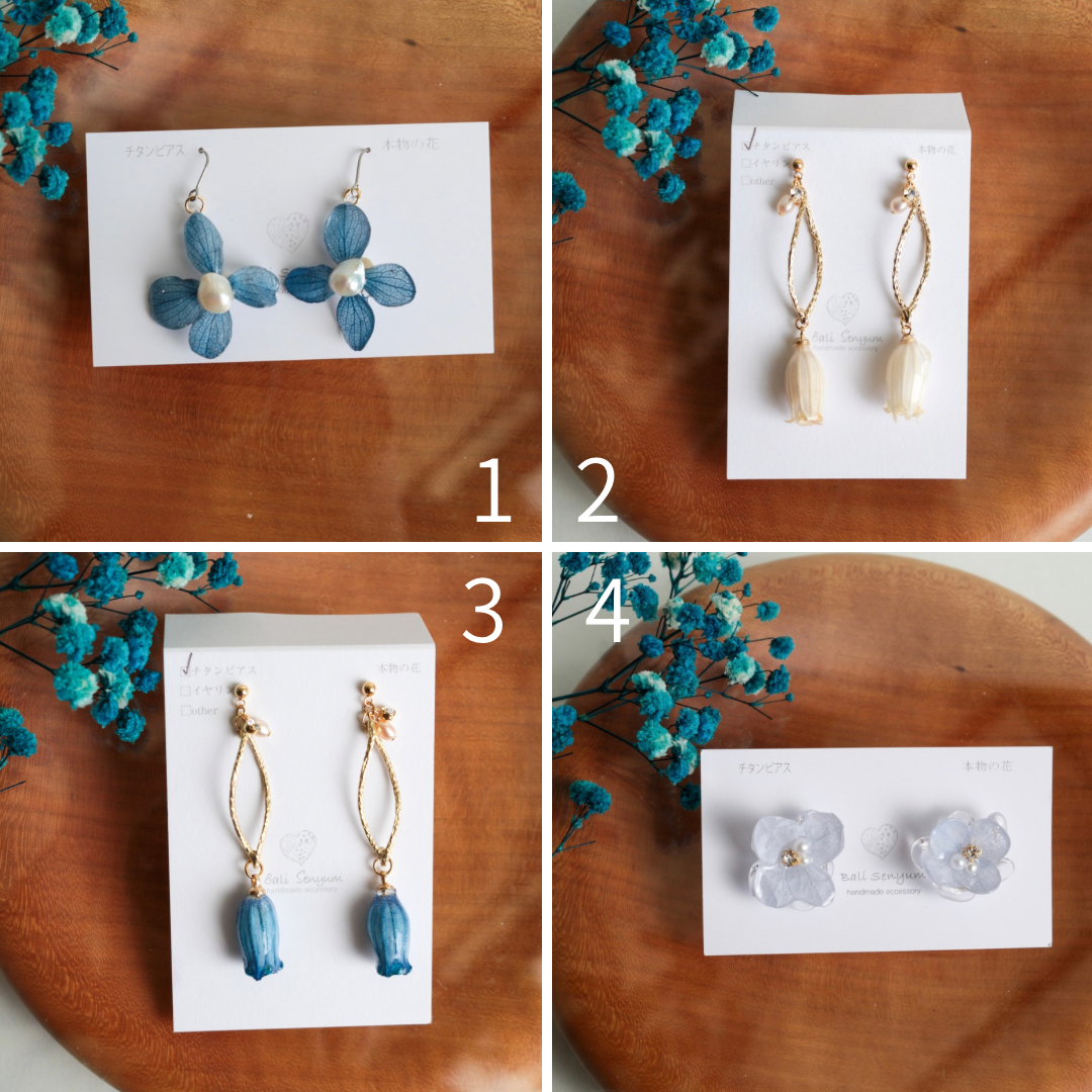 他1、2、3は、ご希望であればネジ式イヤリングへ変更可能。