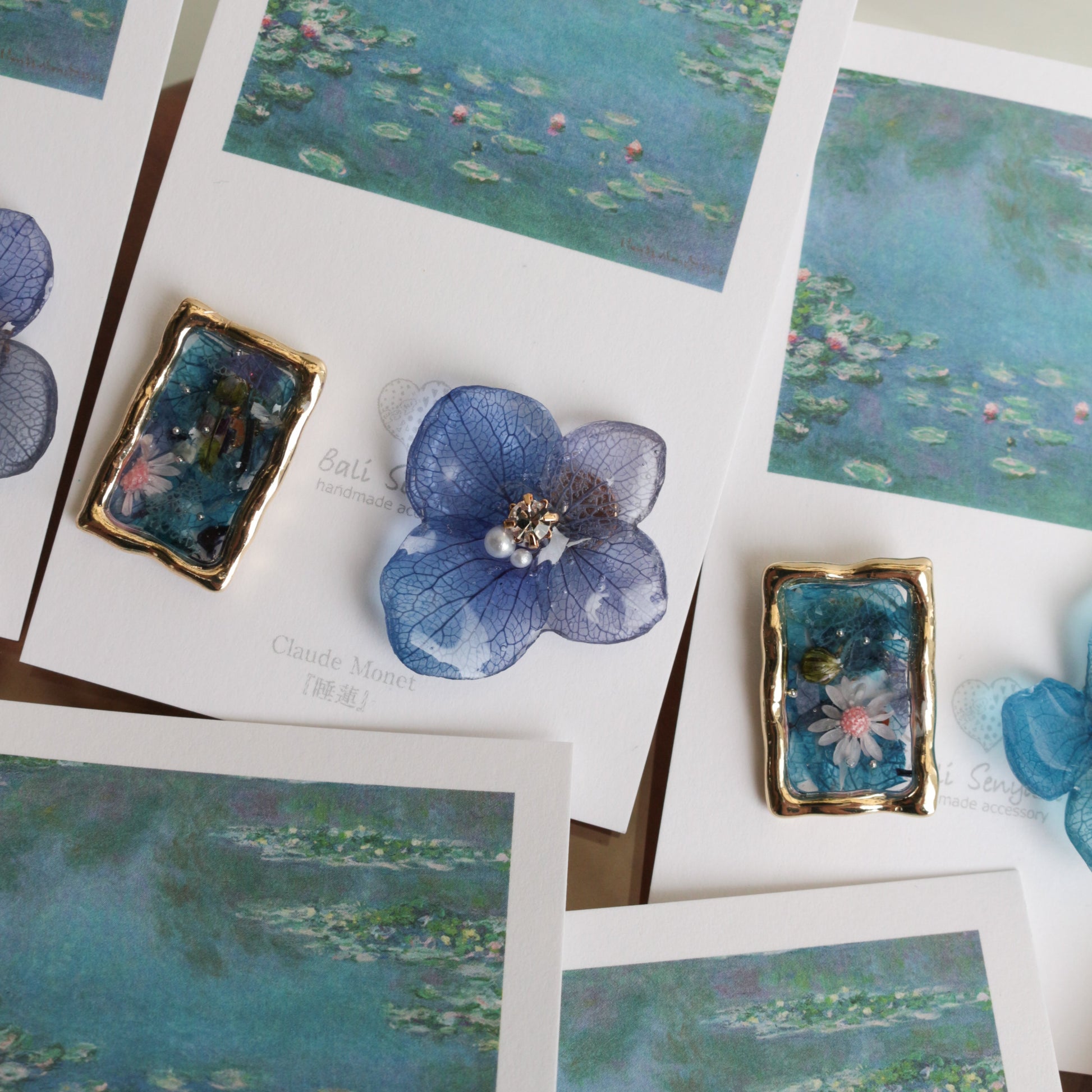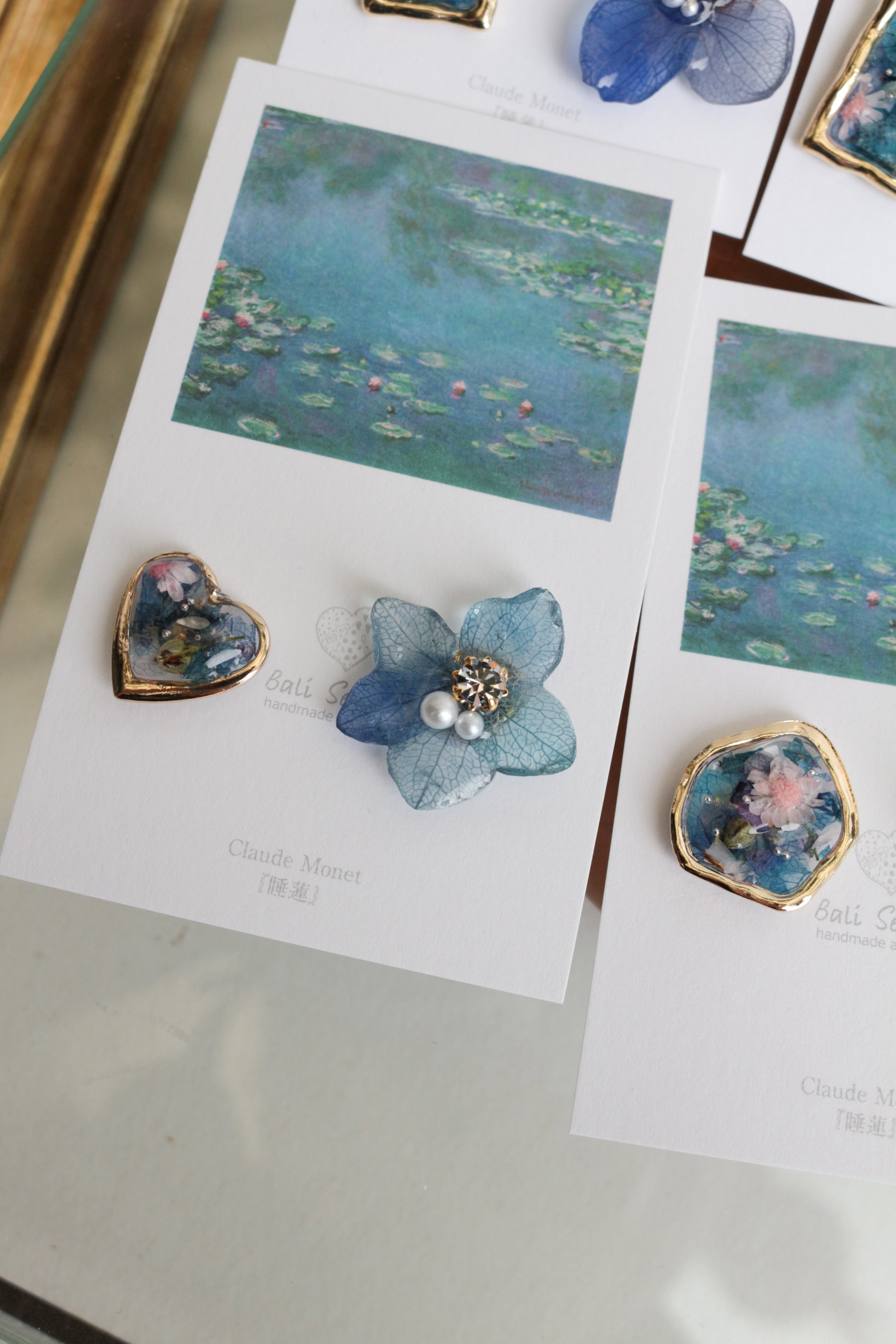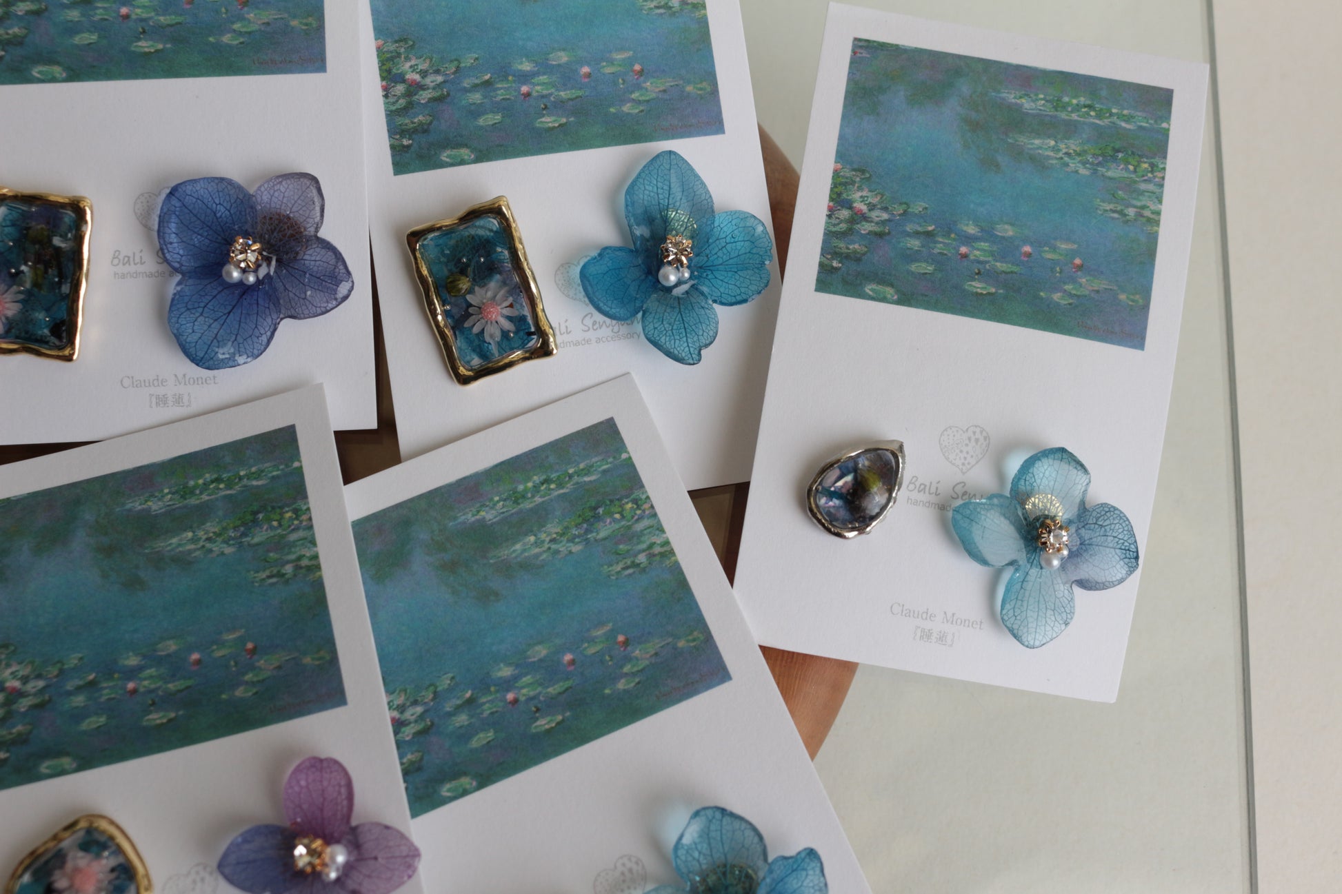 Monet Inspired Flower and Medallion No.15 ピアスTitanium Pierce 睡蓮