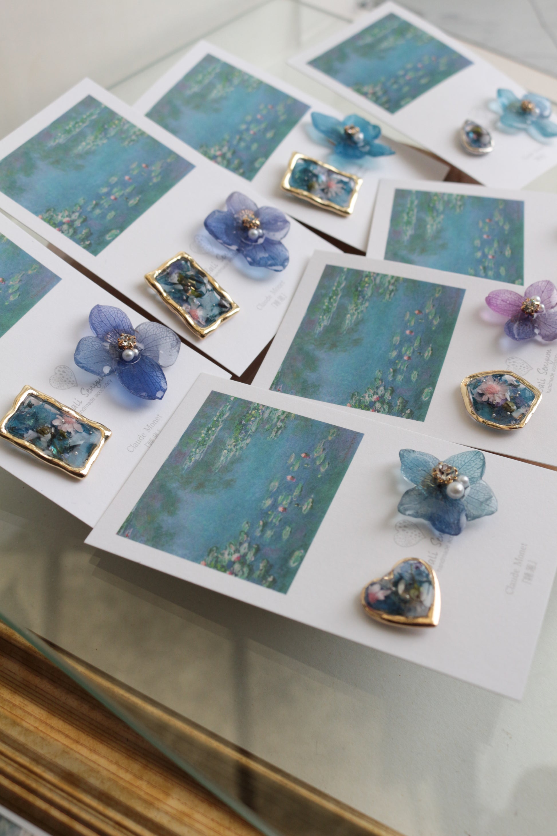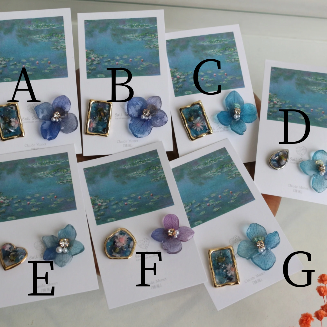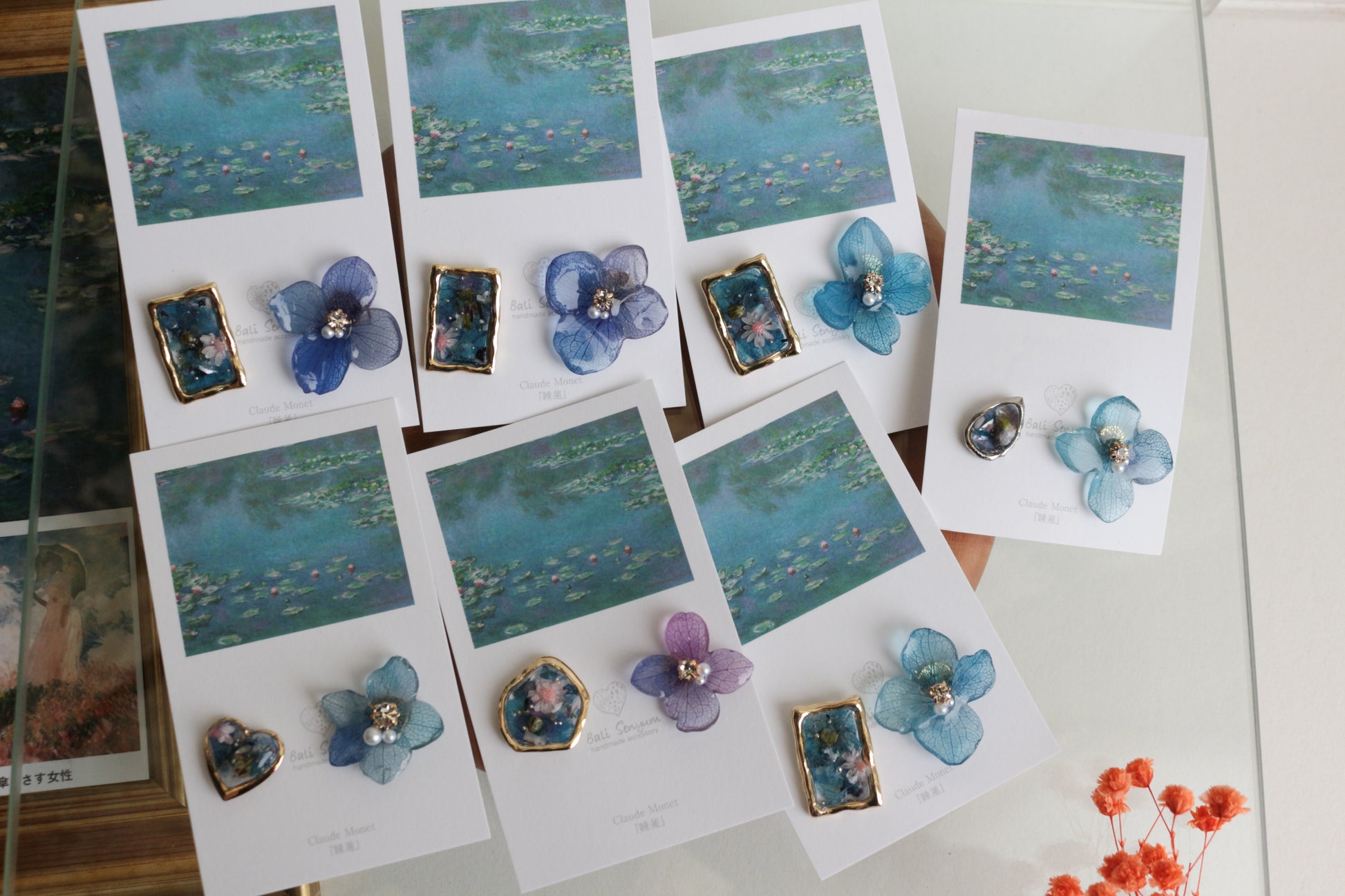 Monet Inspired Flower and Medallion No.15 ピアスTitanium Pierce 睡蓮