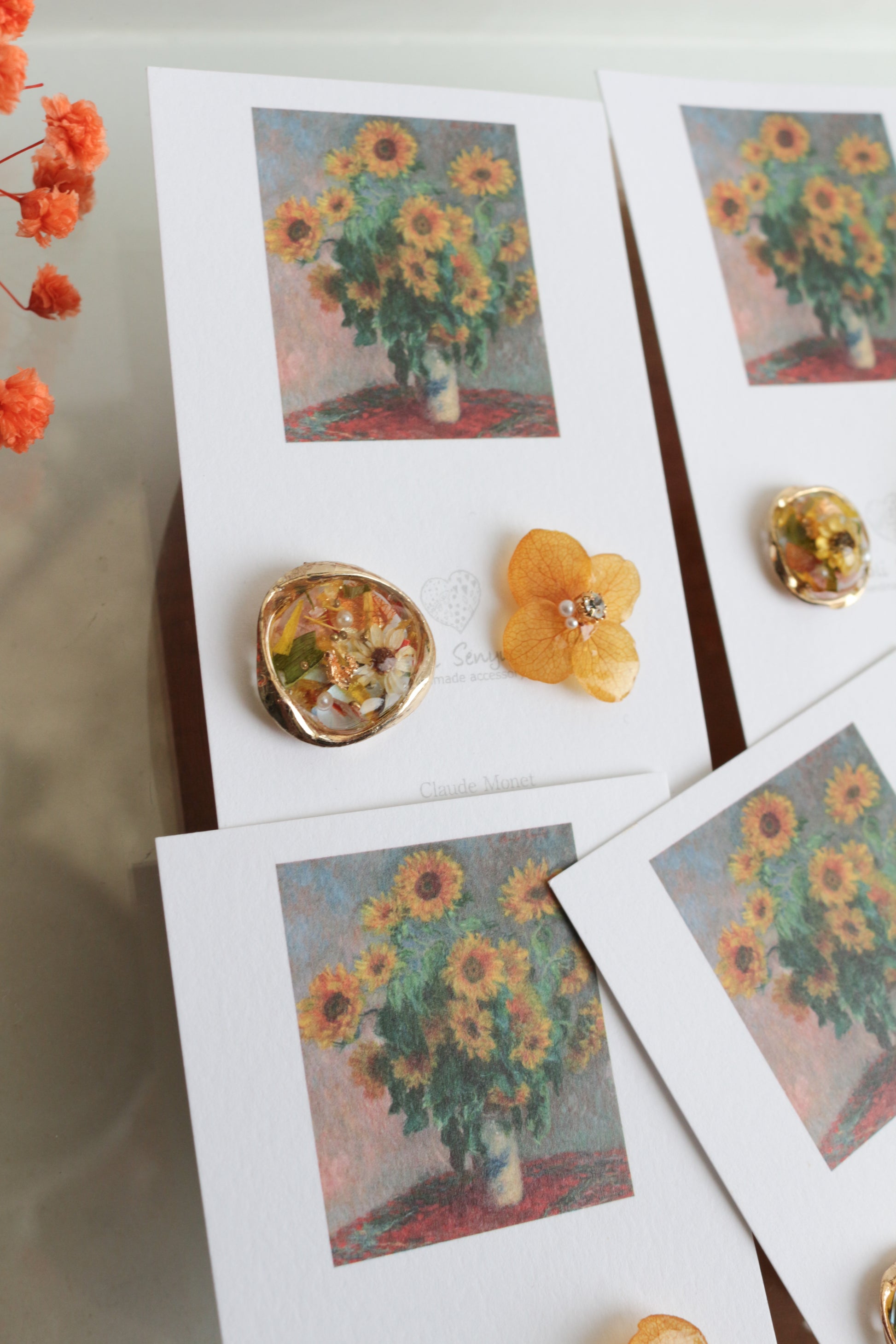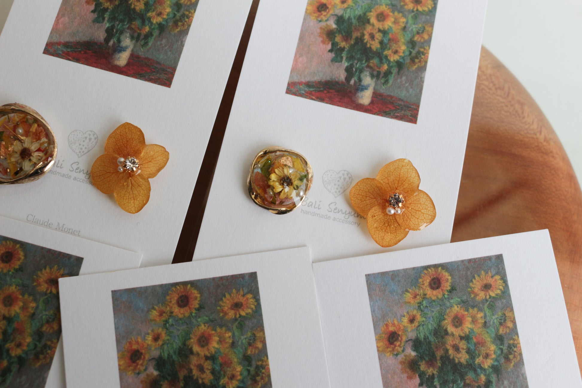 Monet Inspired Flower Earrings No.11 イヤリング Clip-on ひまわり