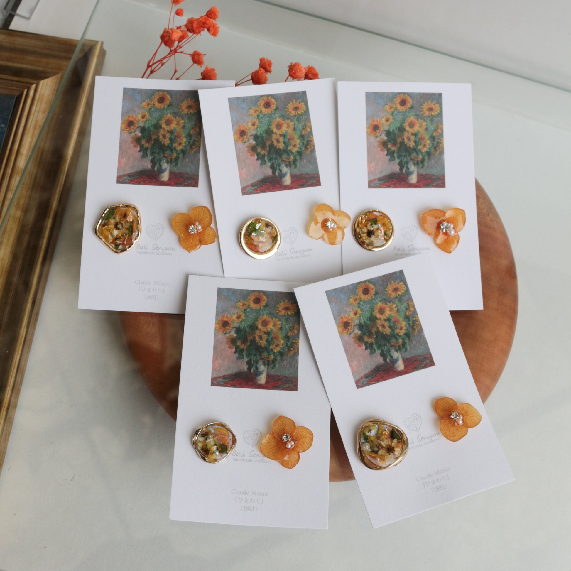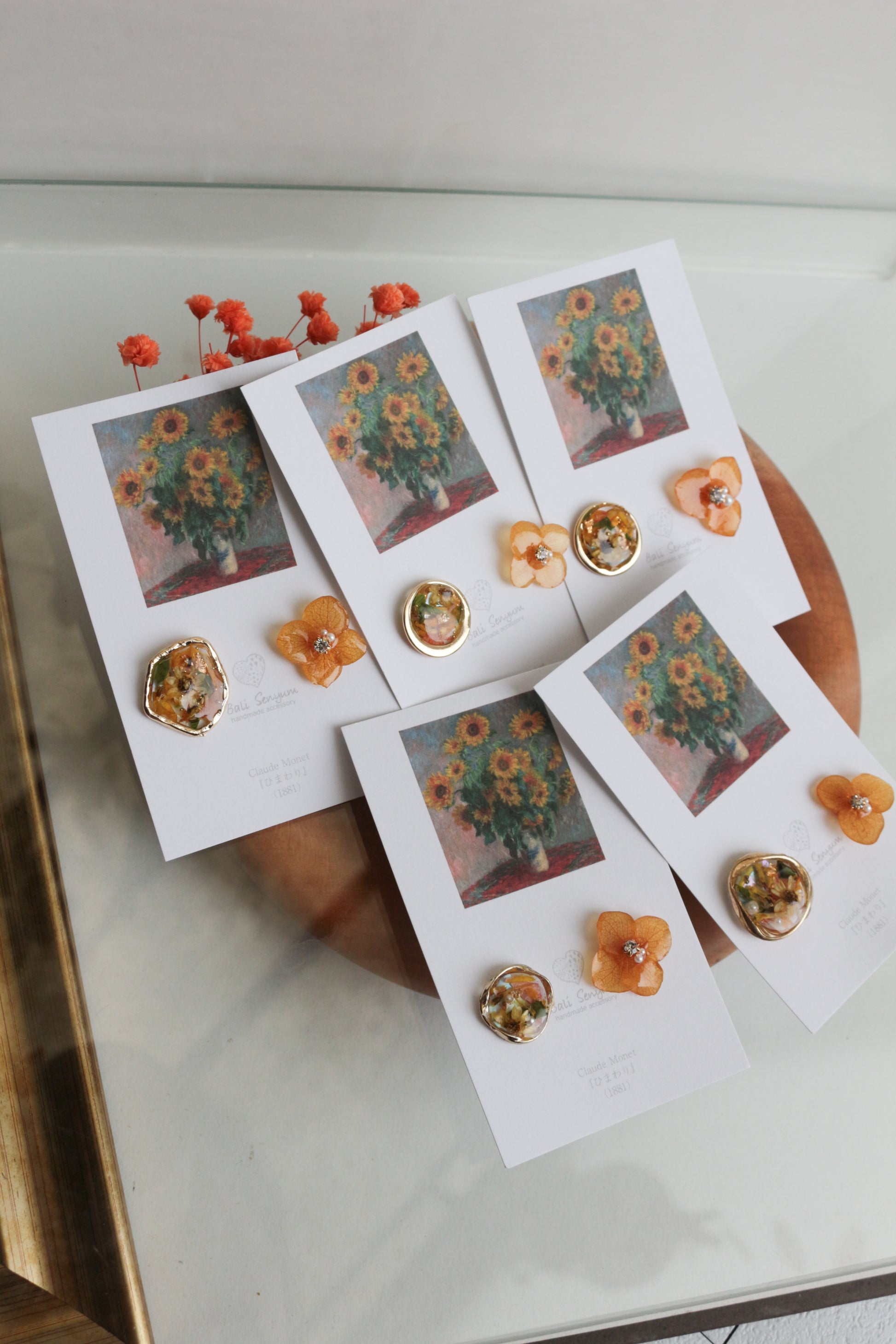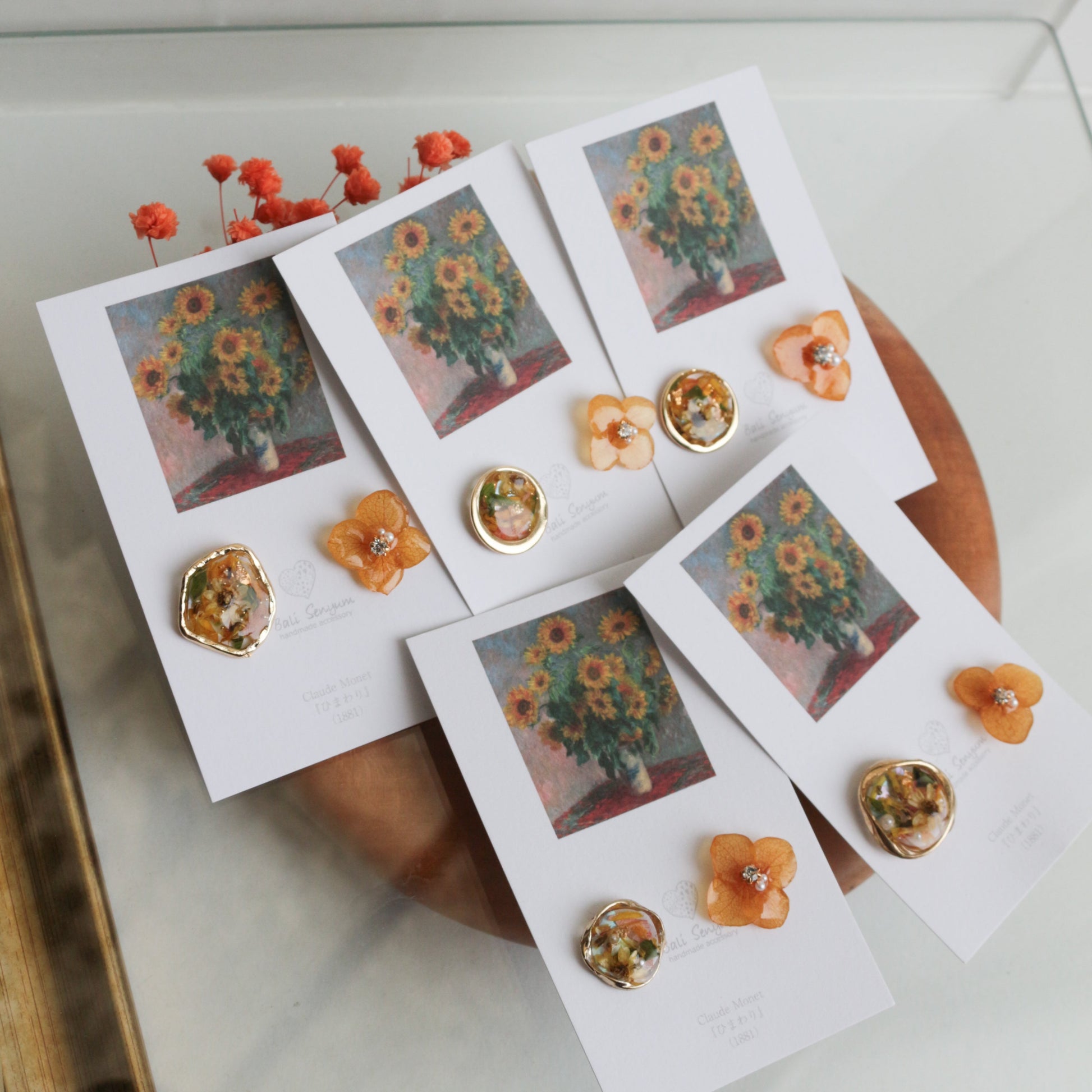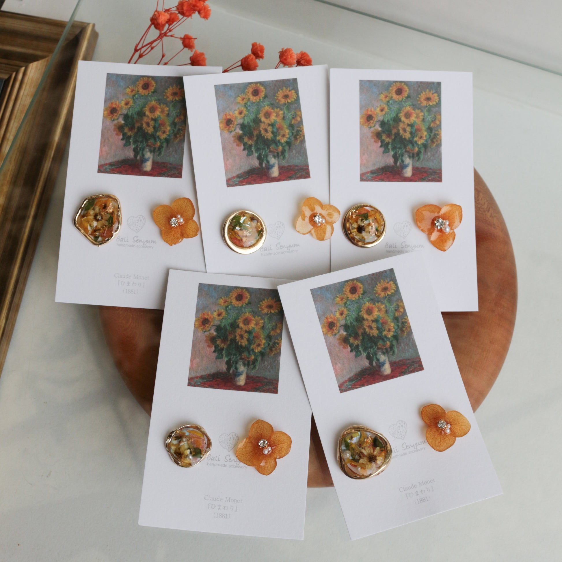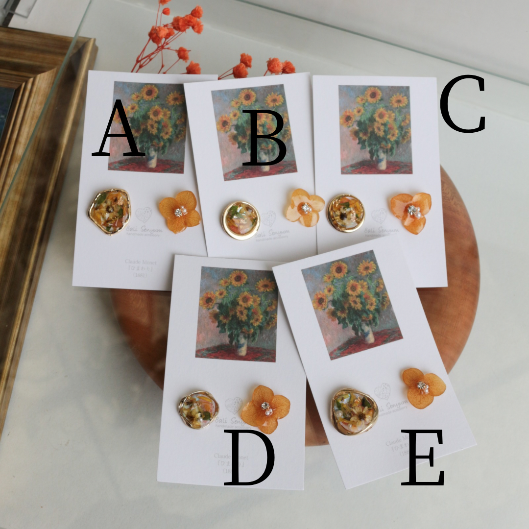 Monet Inspired Flower Earrings No.12 ピアスTitanium Pierce ひまわり