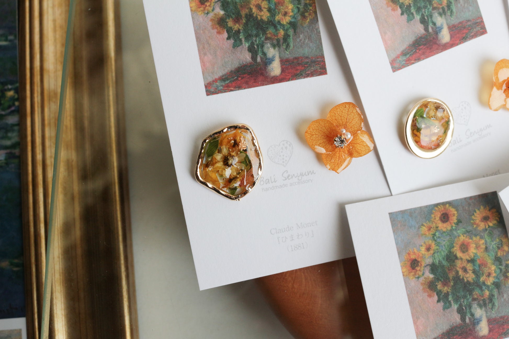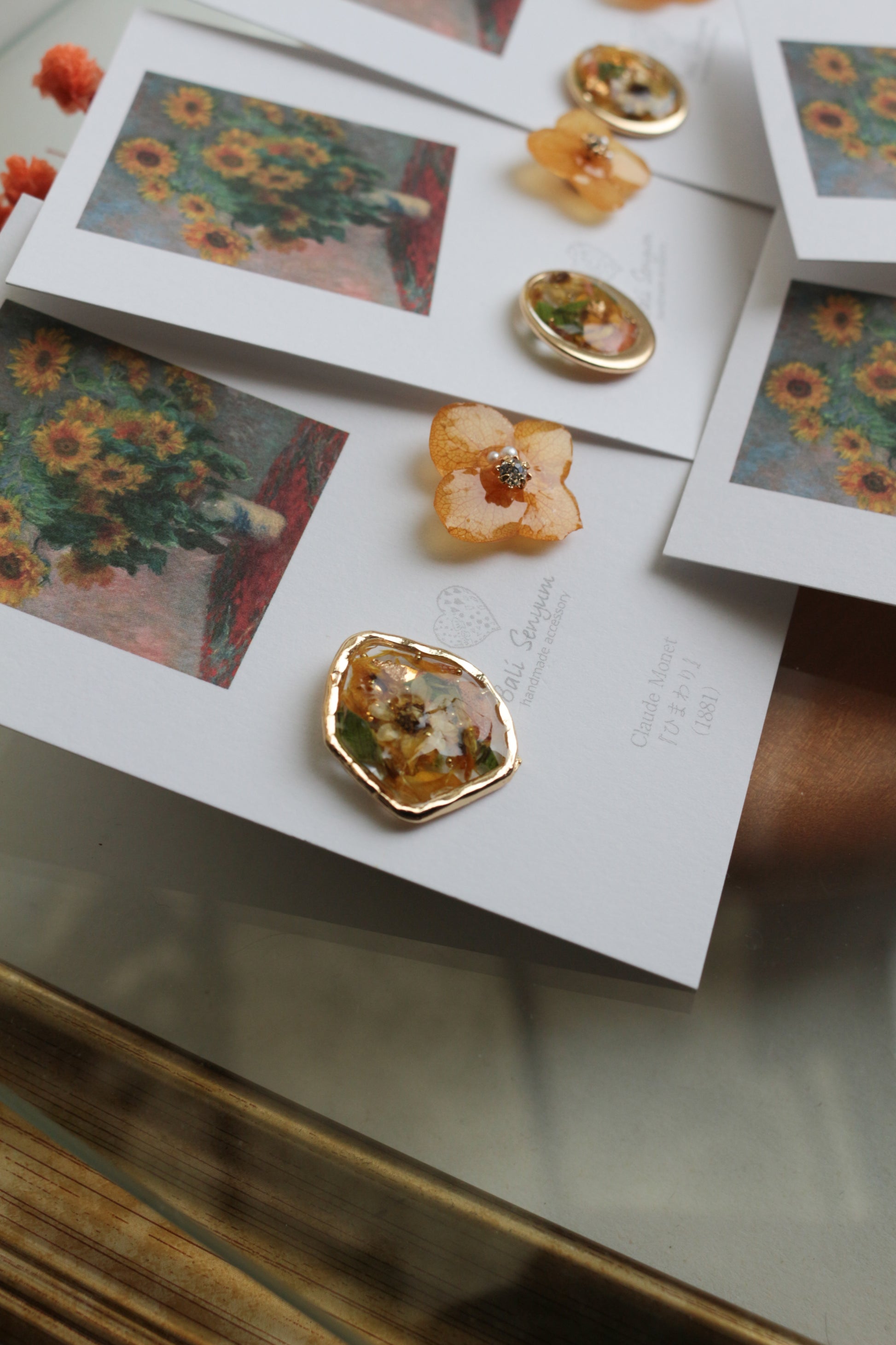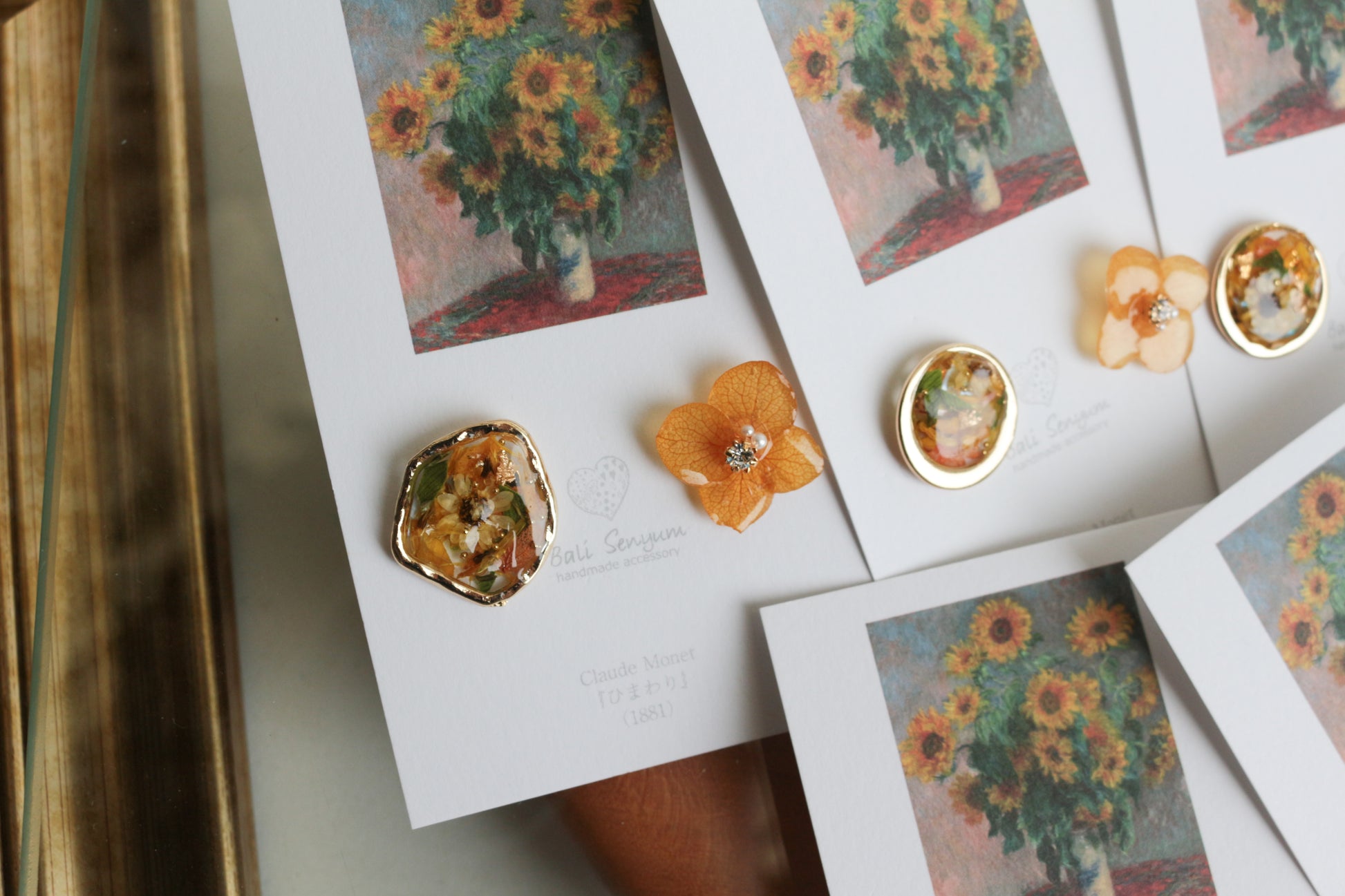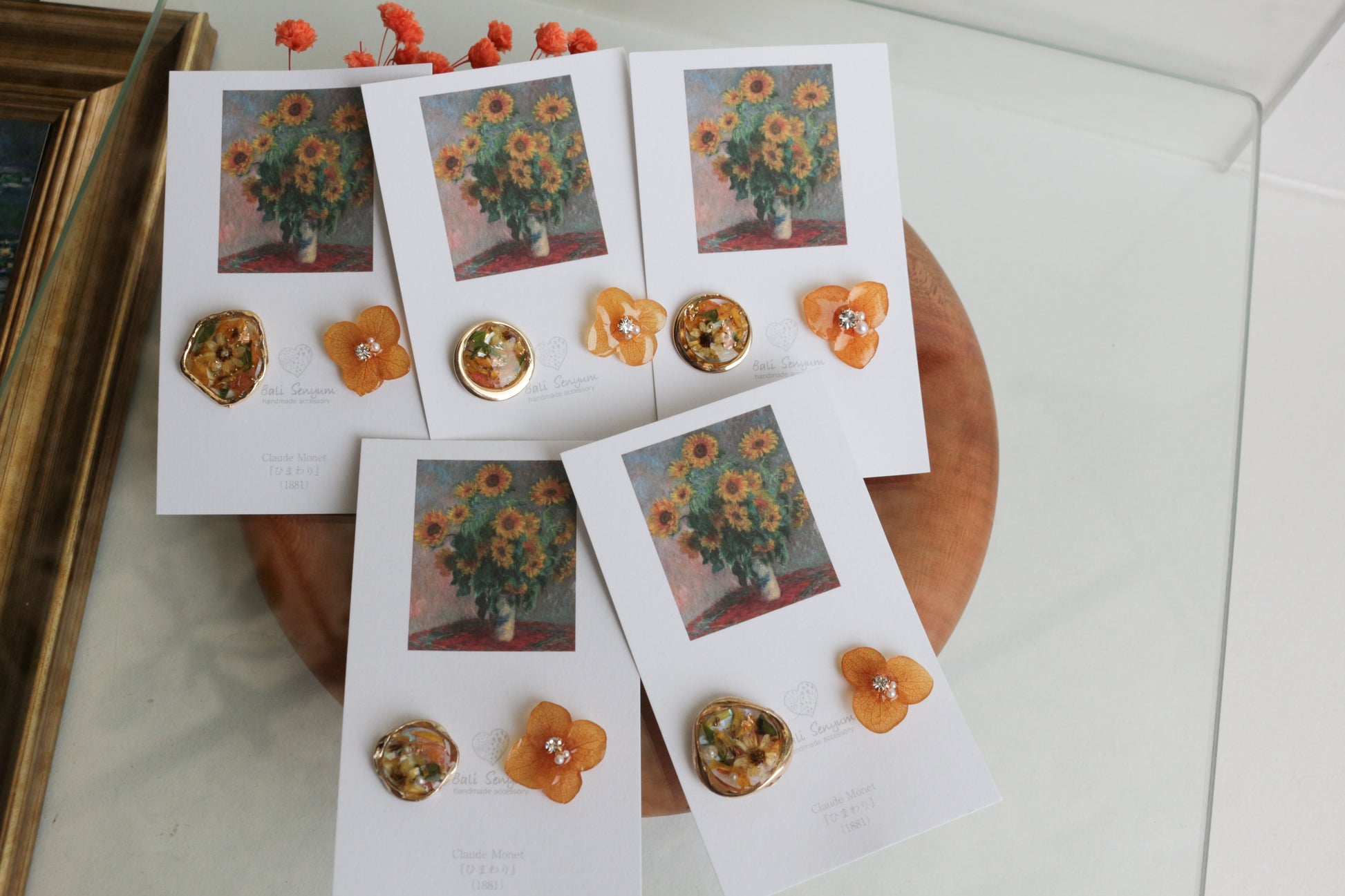 Monet Inspired Flower Earrings No.12 ピアスTitanium Pierce ひまわり
