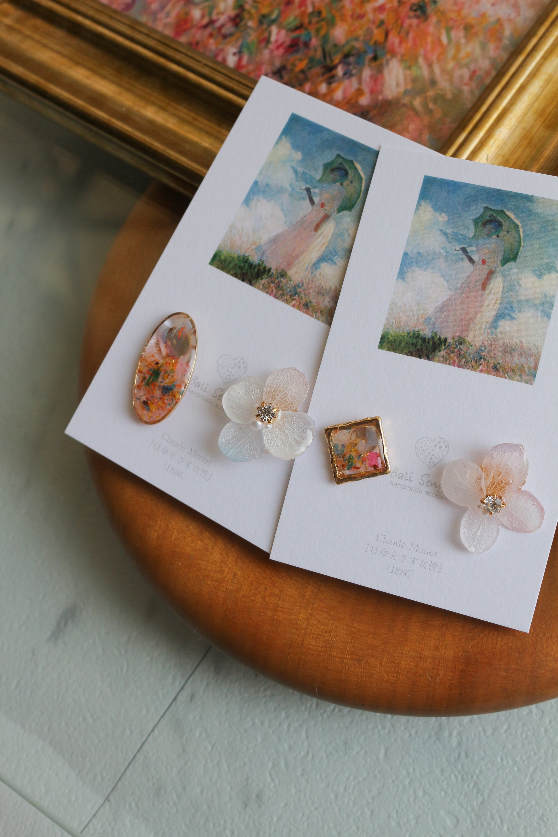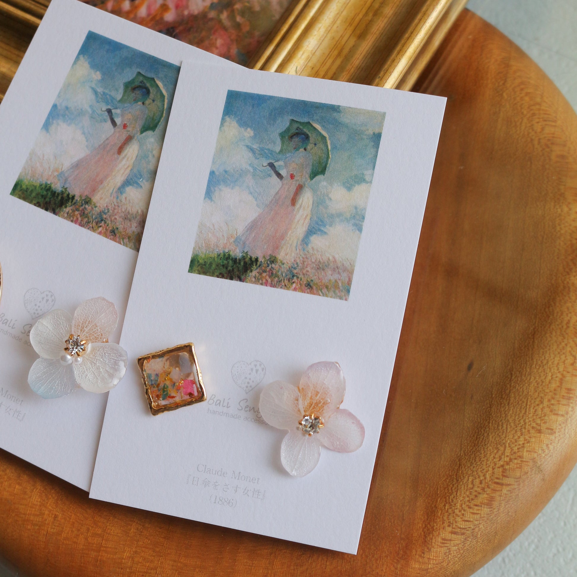 Monet Inspired Flower Earrings No.8 ピアスTitanium Pierce 日傘をさす女性