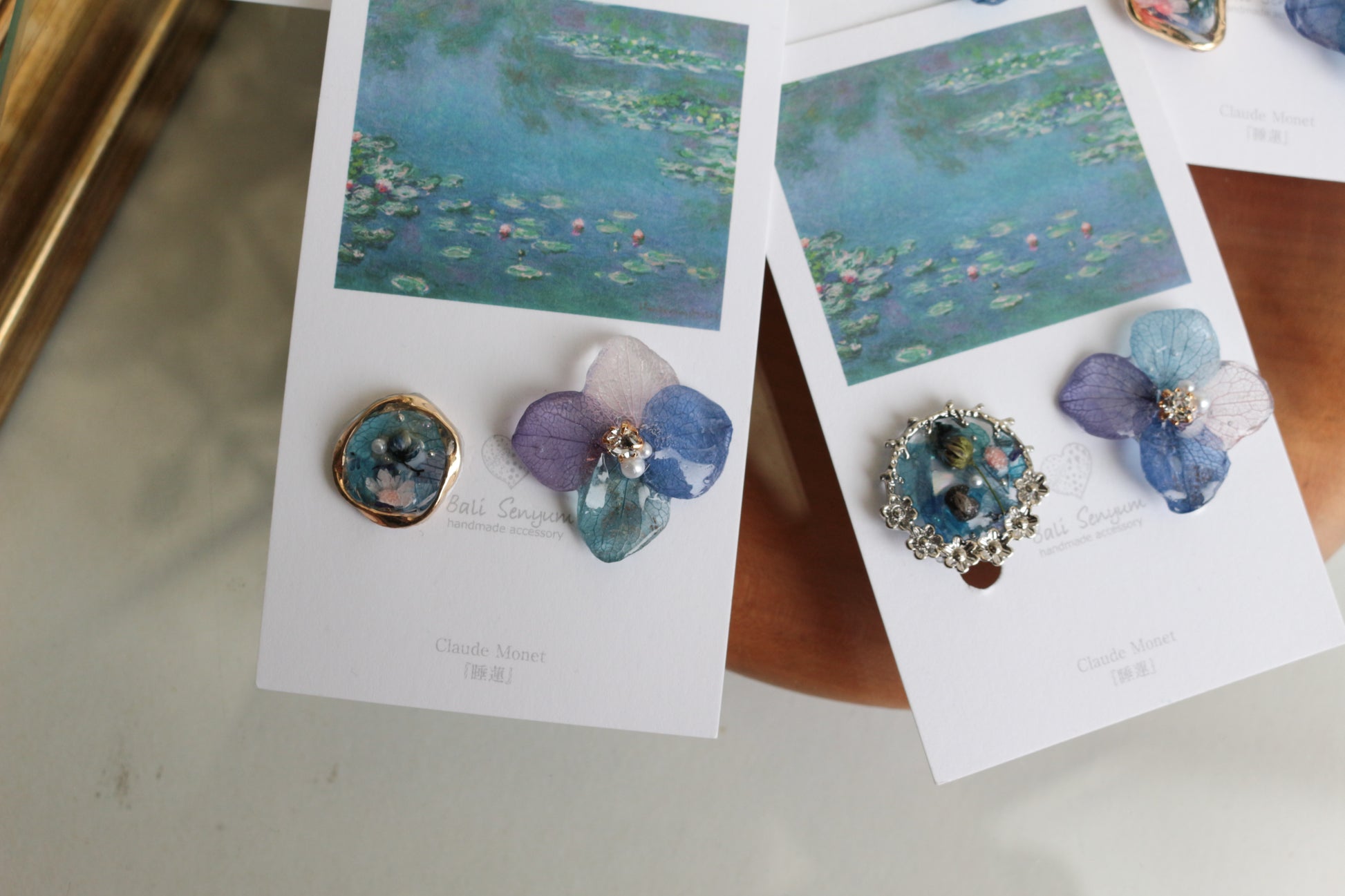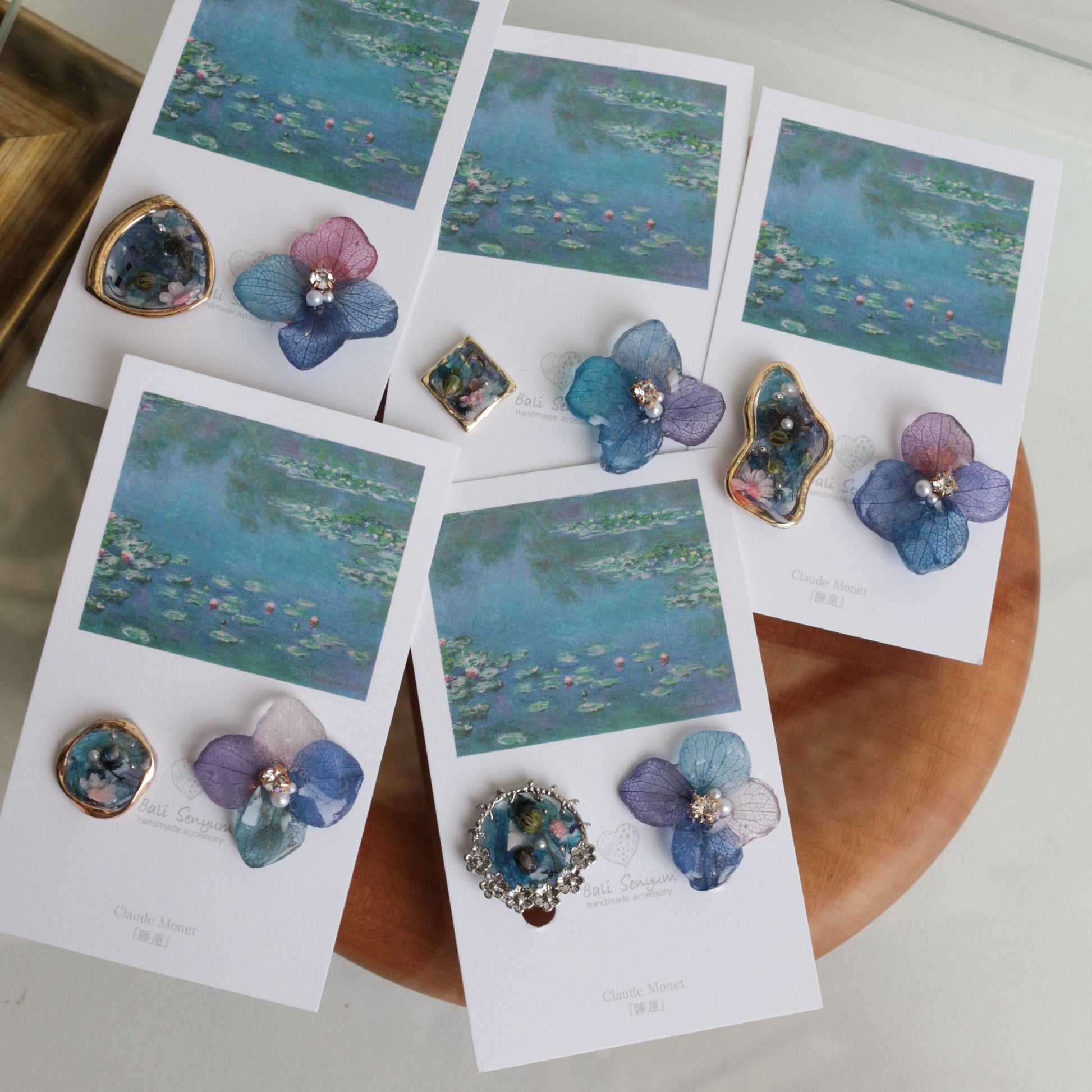 Monet's Water Lilies Inspired Flower and Medallion No.14イヤリング Clip-on 睡蓮