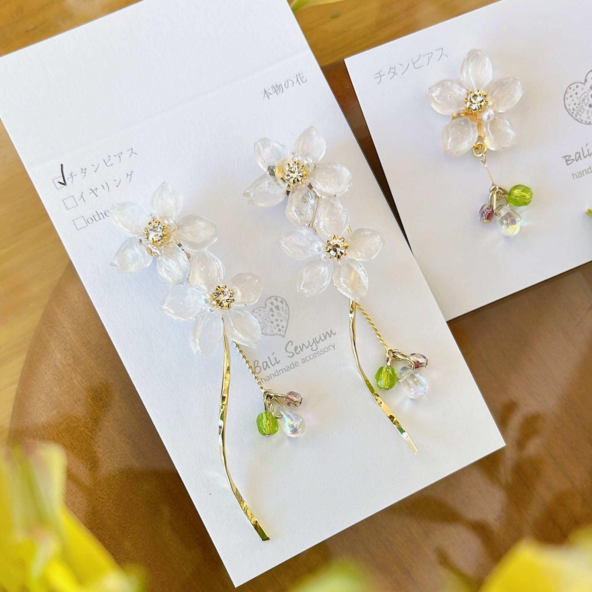 Real "Someiyoshino" Sakura Earring Kumamoto Homage- 緑桜の御衣黄 モチーフ