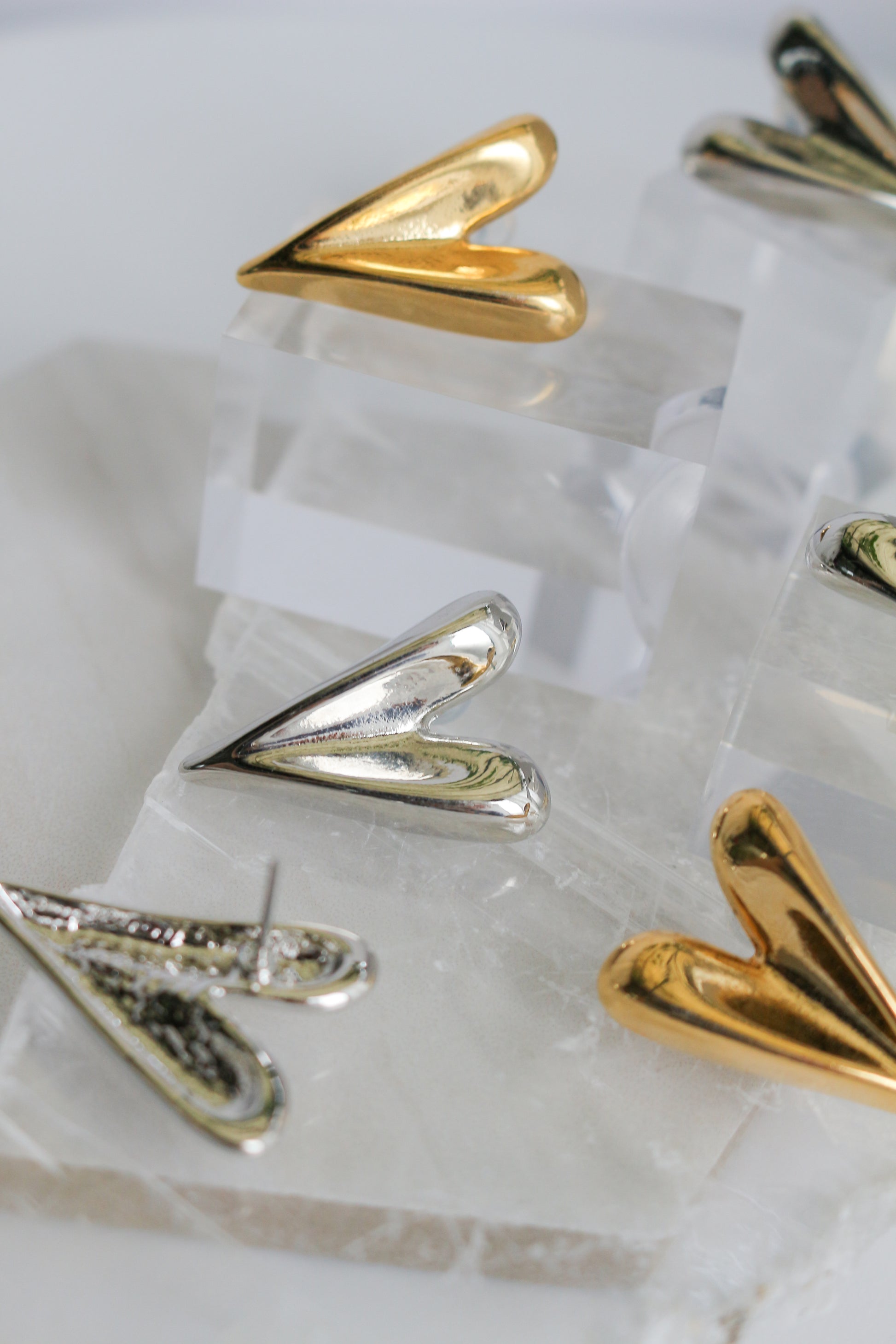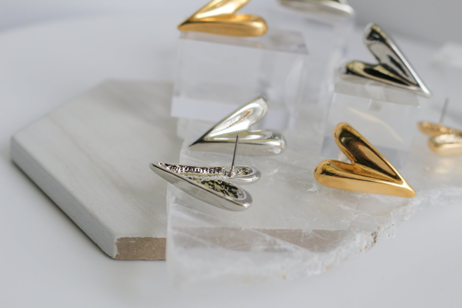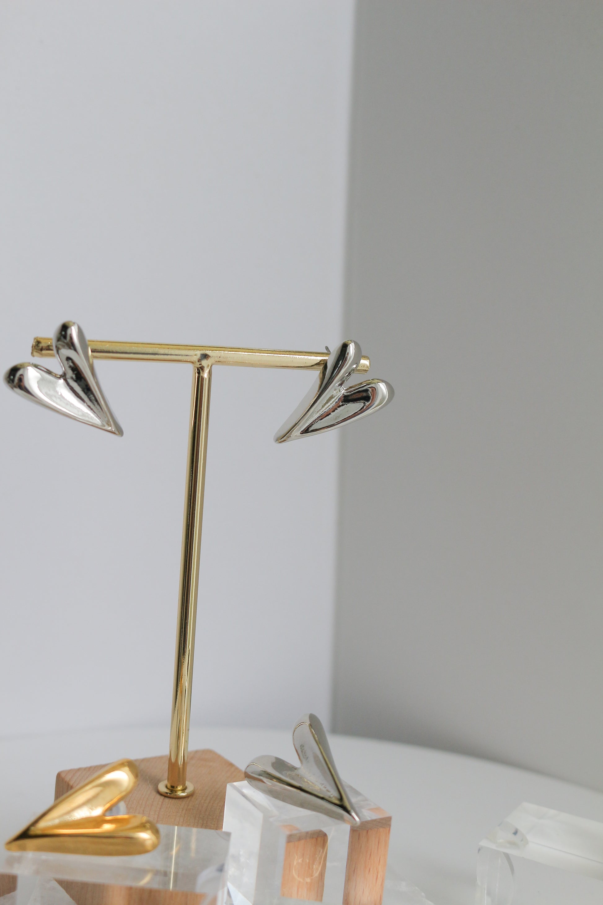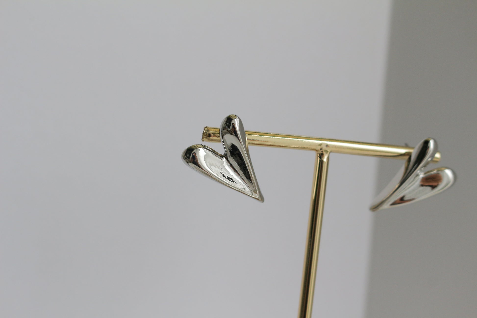 Heart shaped metal earring. A simple but elegant design that works as a perfect accent piece.