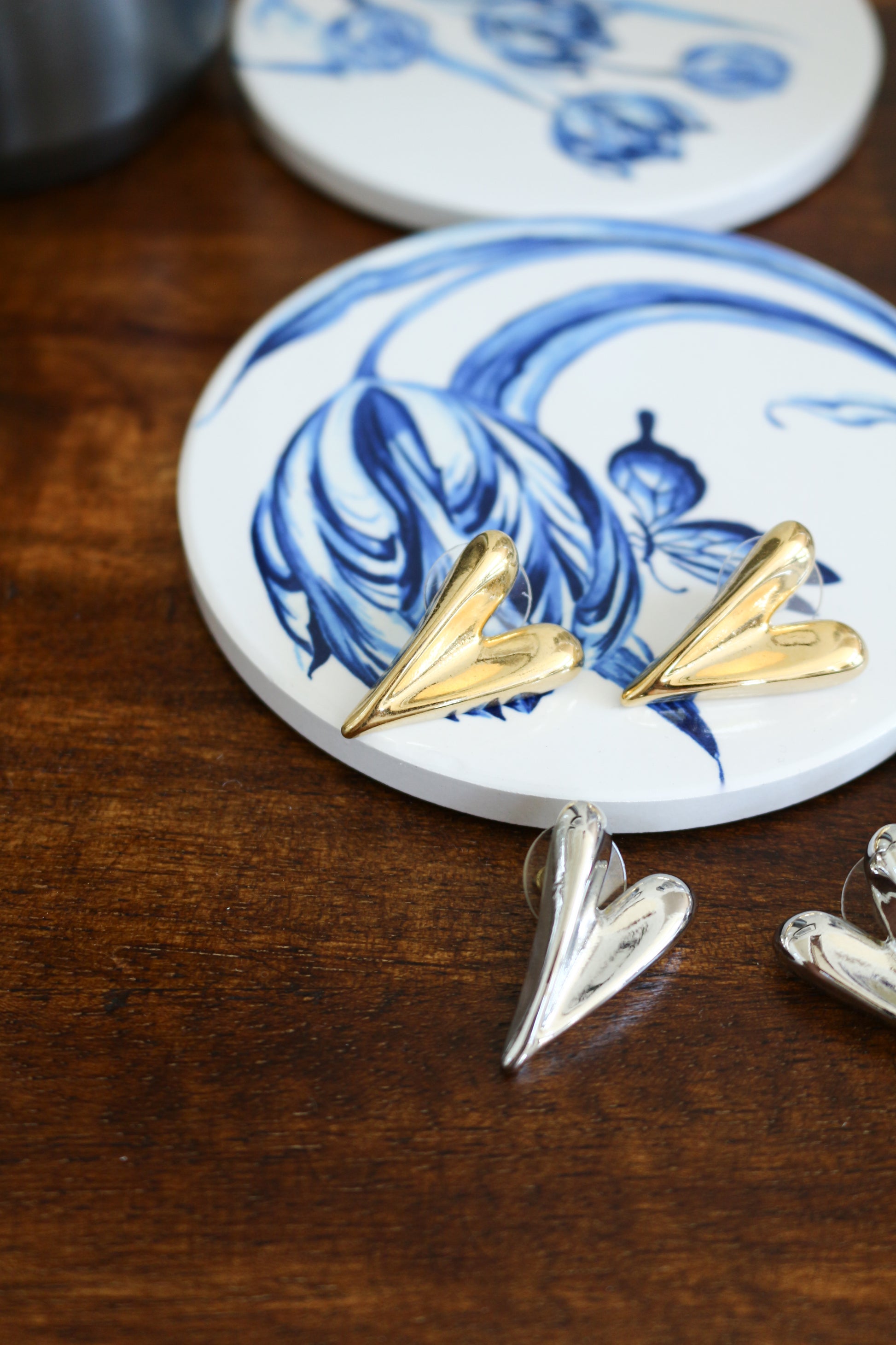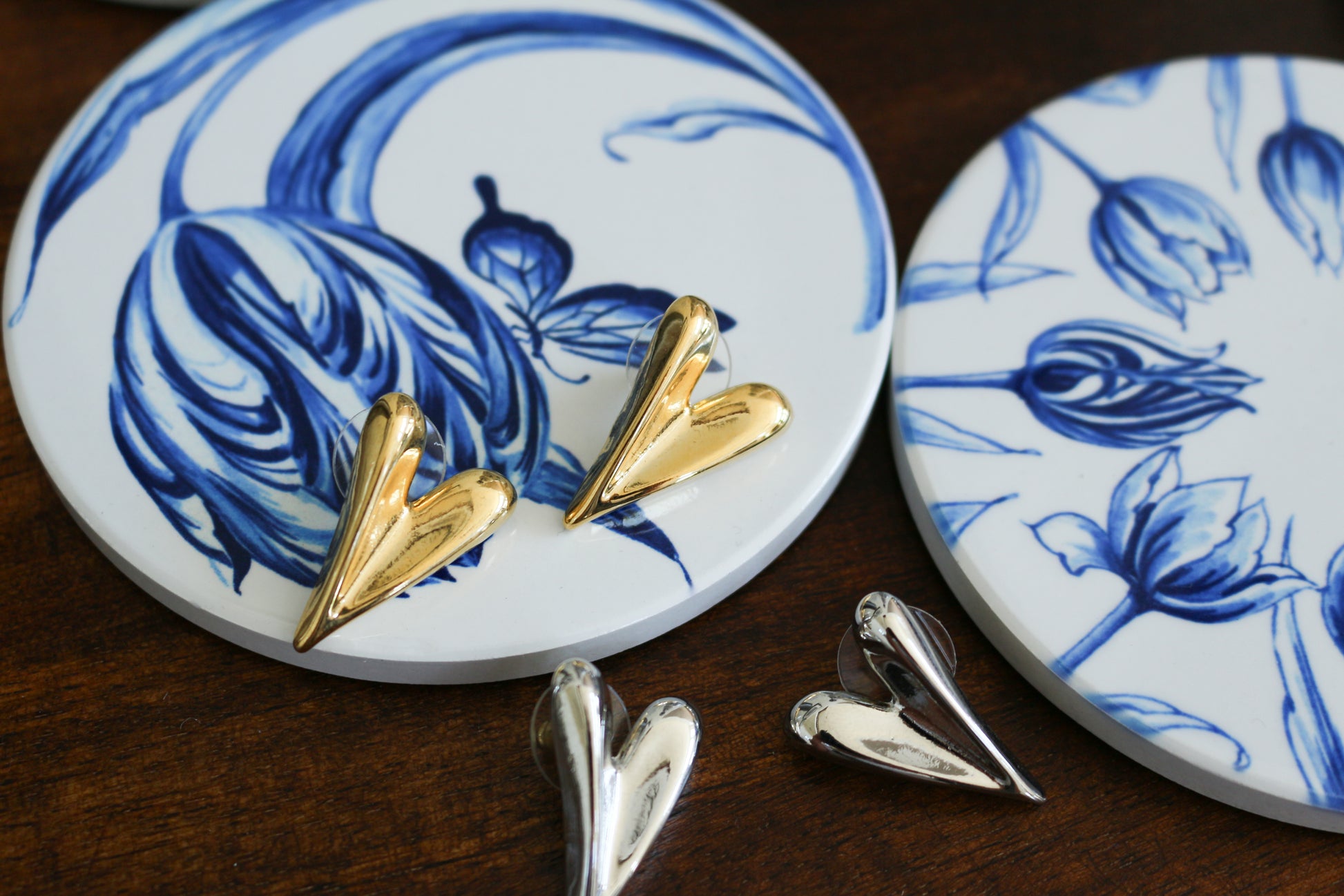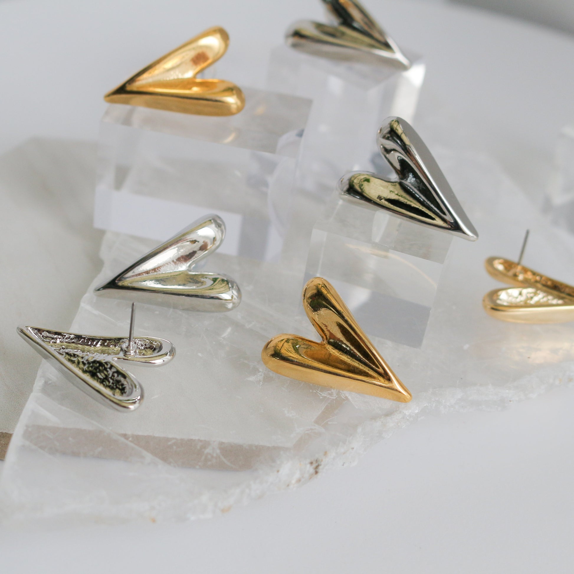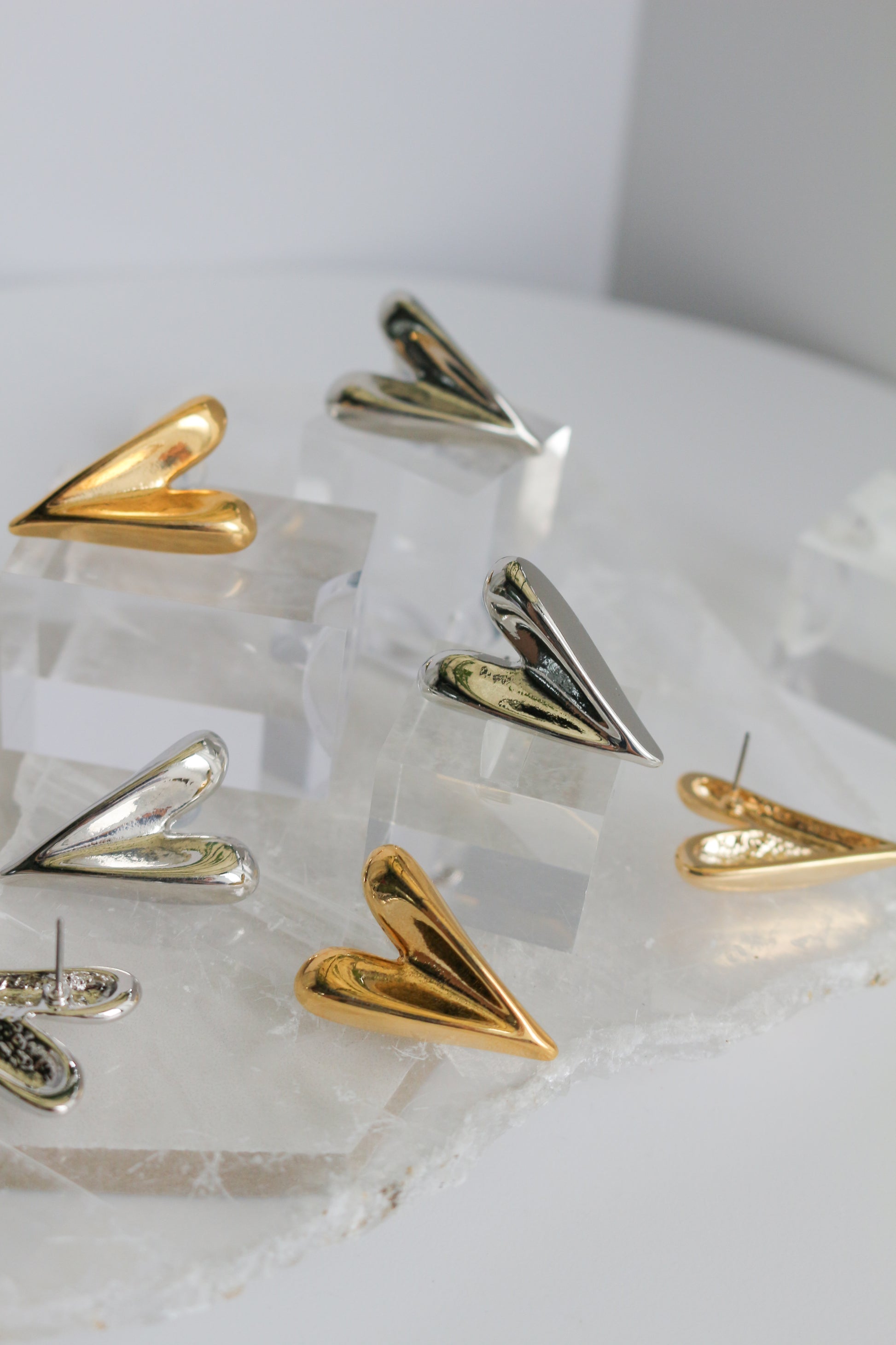 Heart shaped metal earring. A simple but elegant design that works as a perfect accent piece.