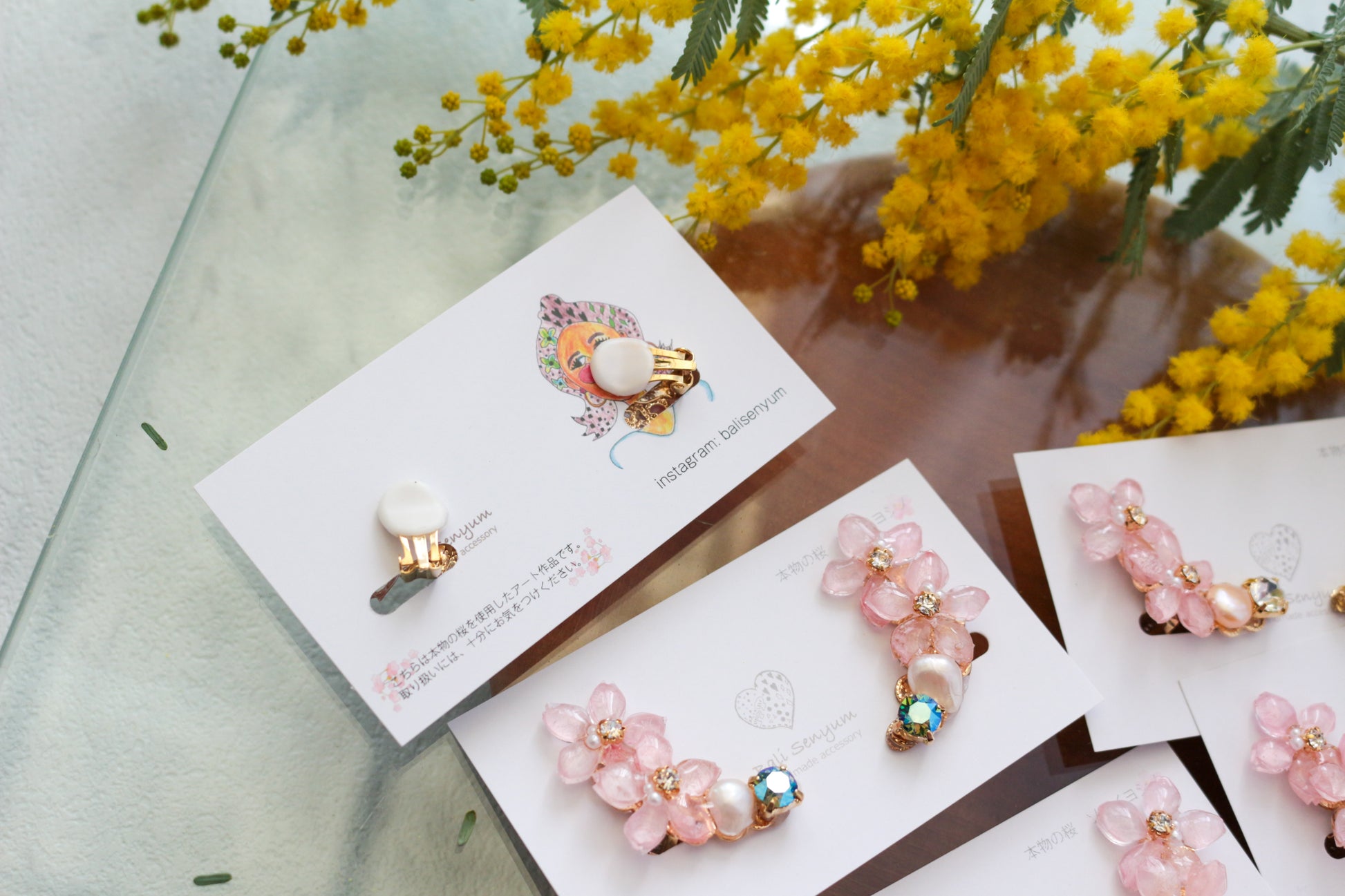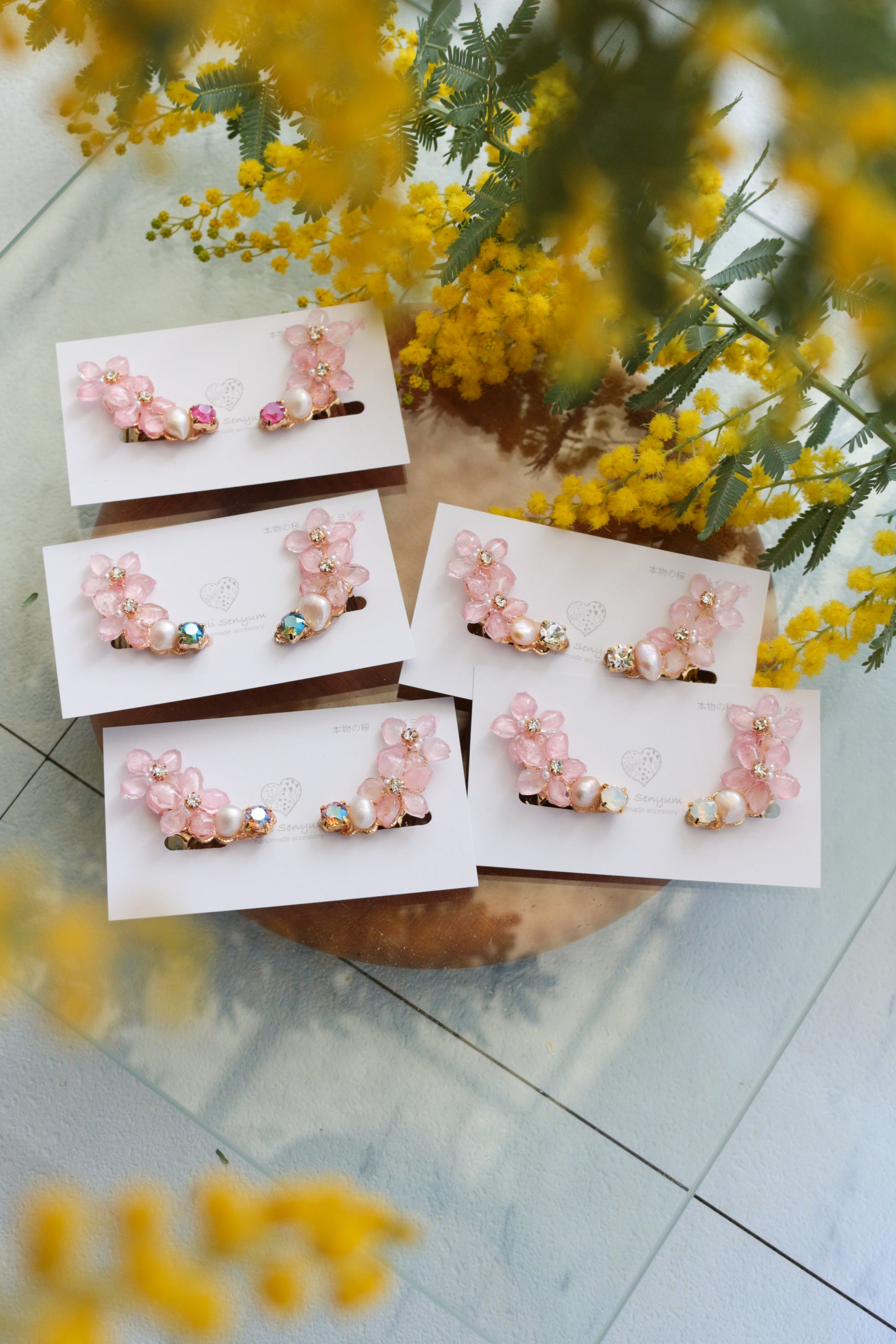 桜ソメイヨシノの花びらを加工して製作しました。