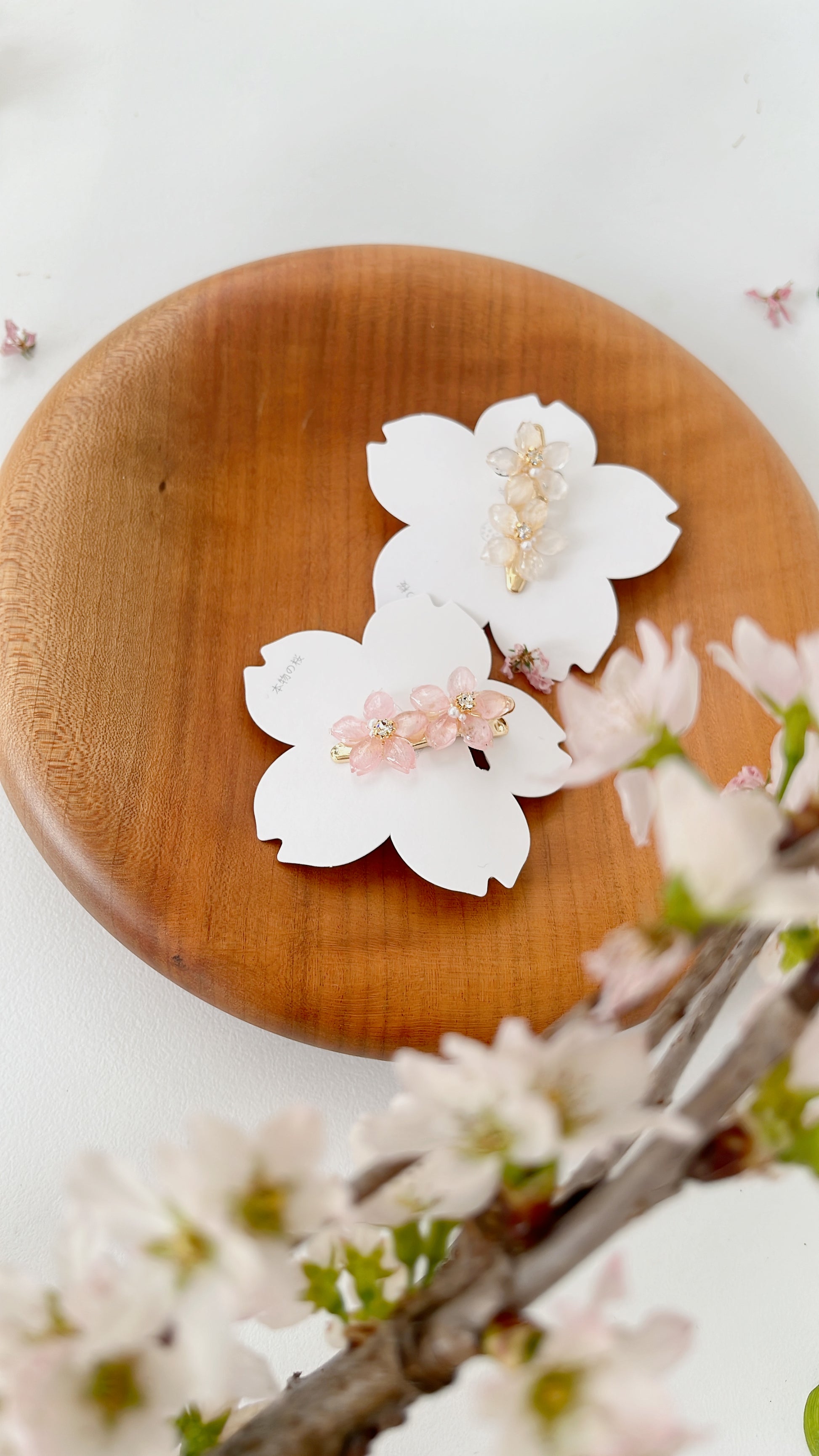 Two small someiyoshino sakura petal flower adorn this simple hair clip.