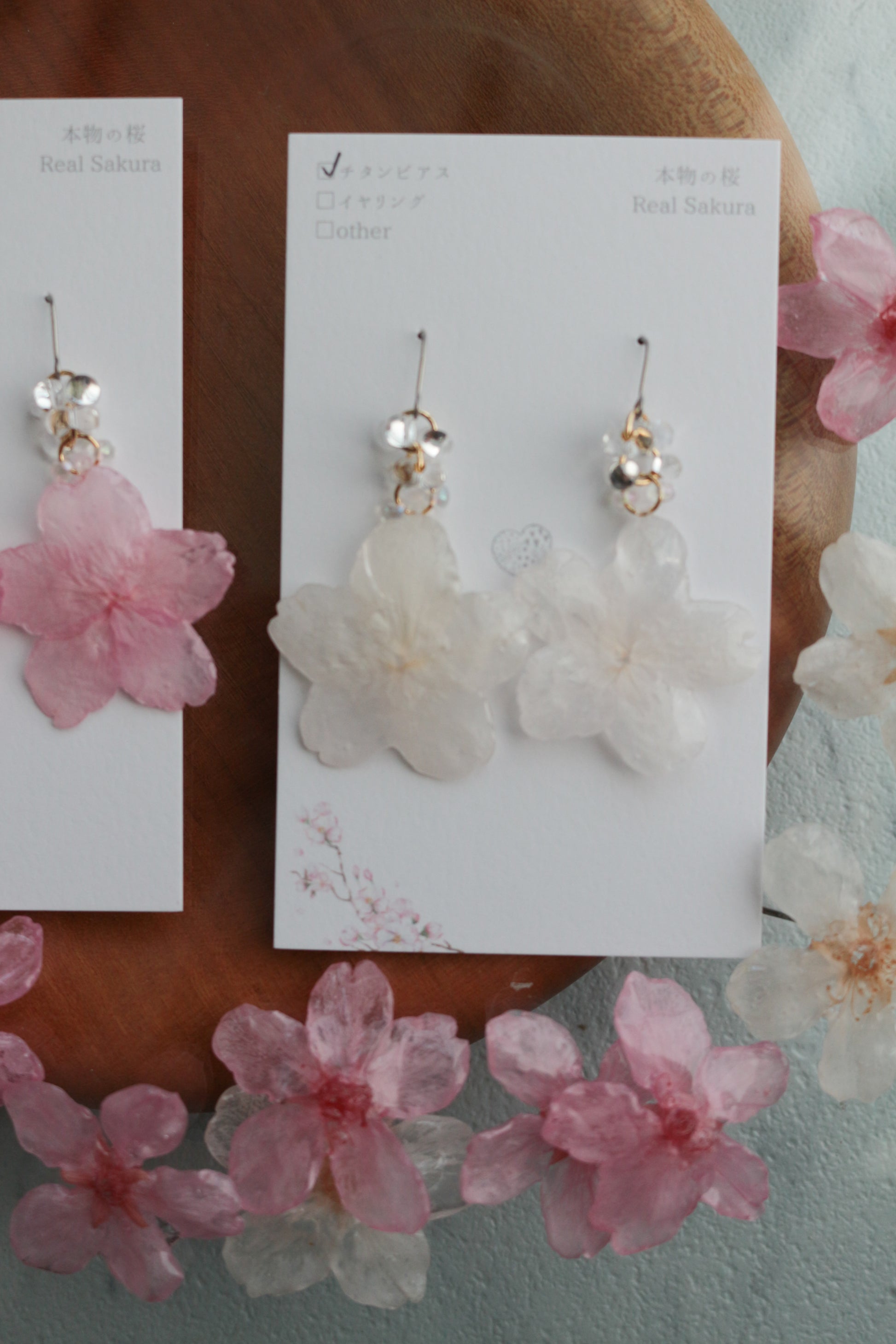 Beautiful unaltered sakura petals laid flat to create these large flower earrings. These cute earrings will let you take the feeling of an iconic Japanese Springtime wherever you go.