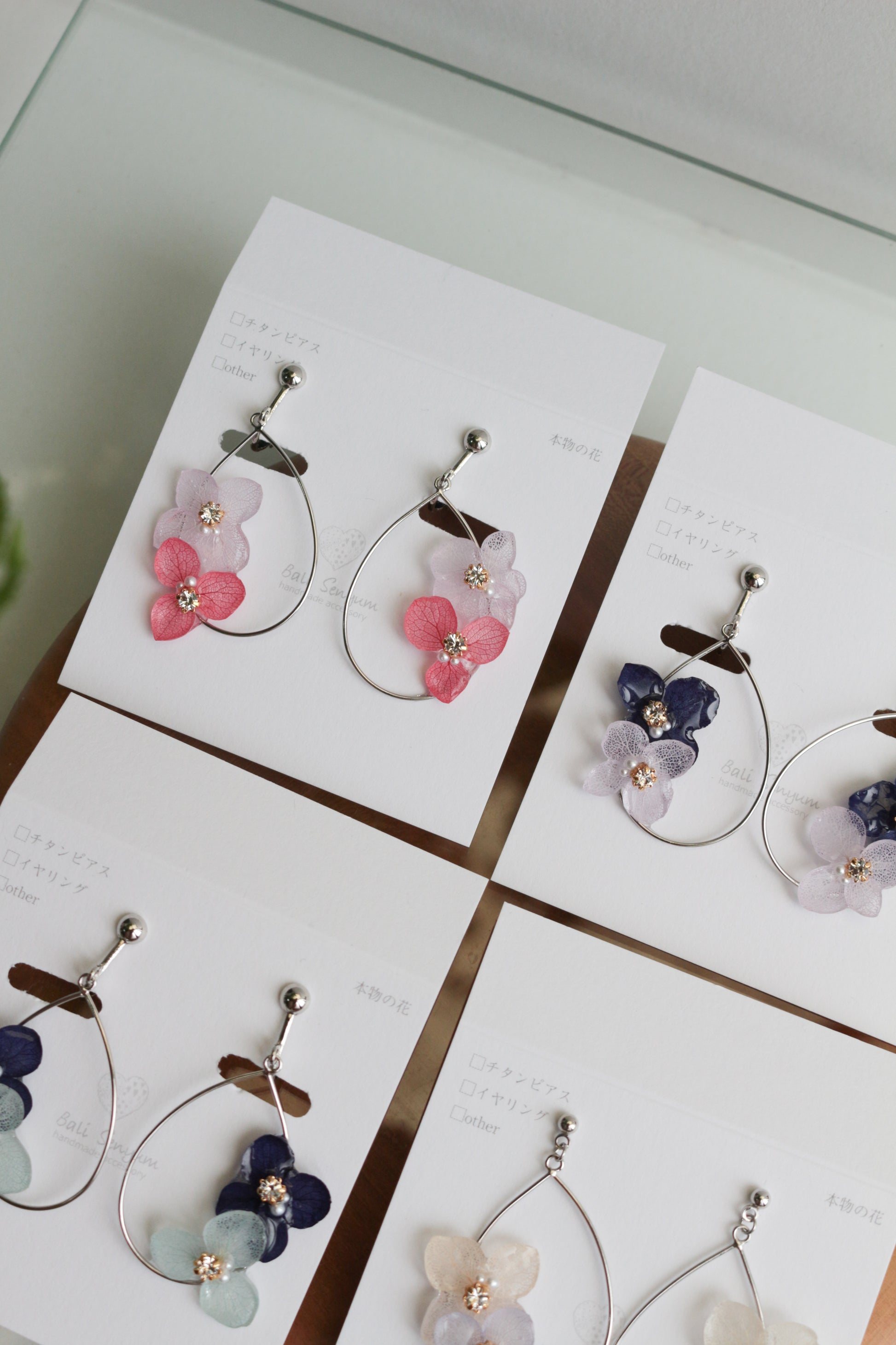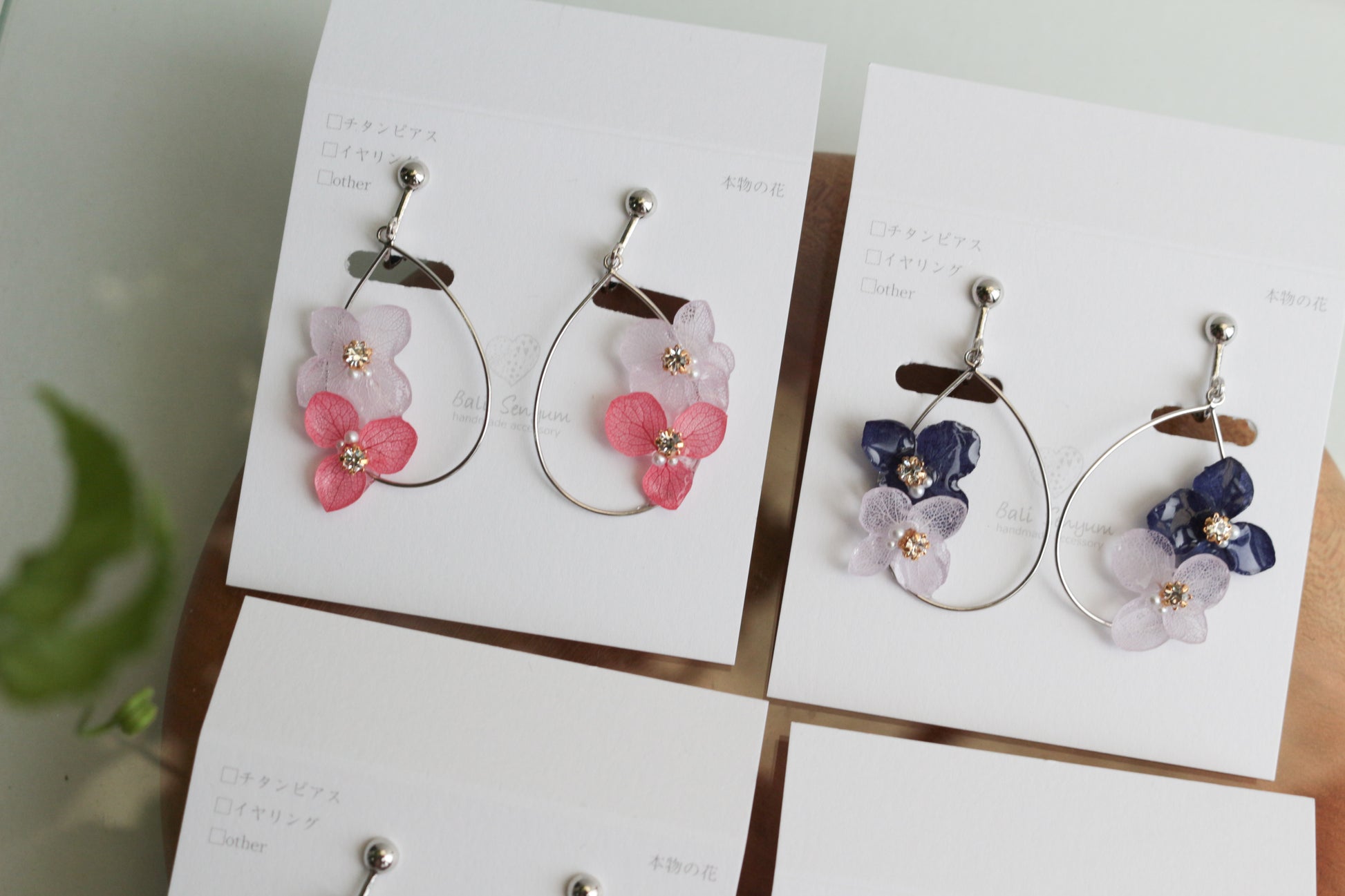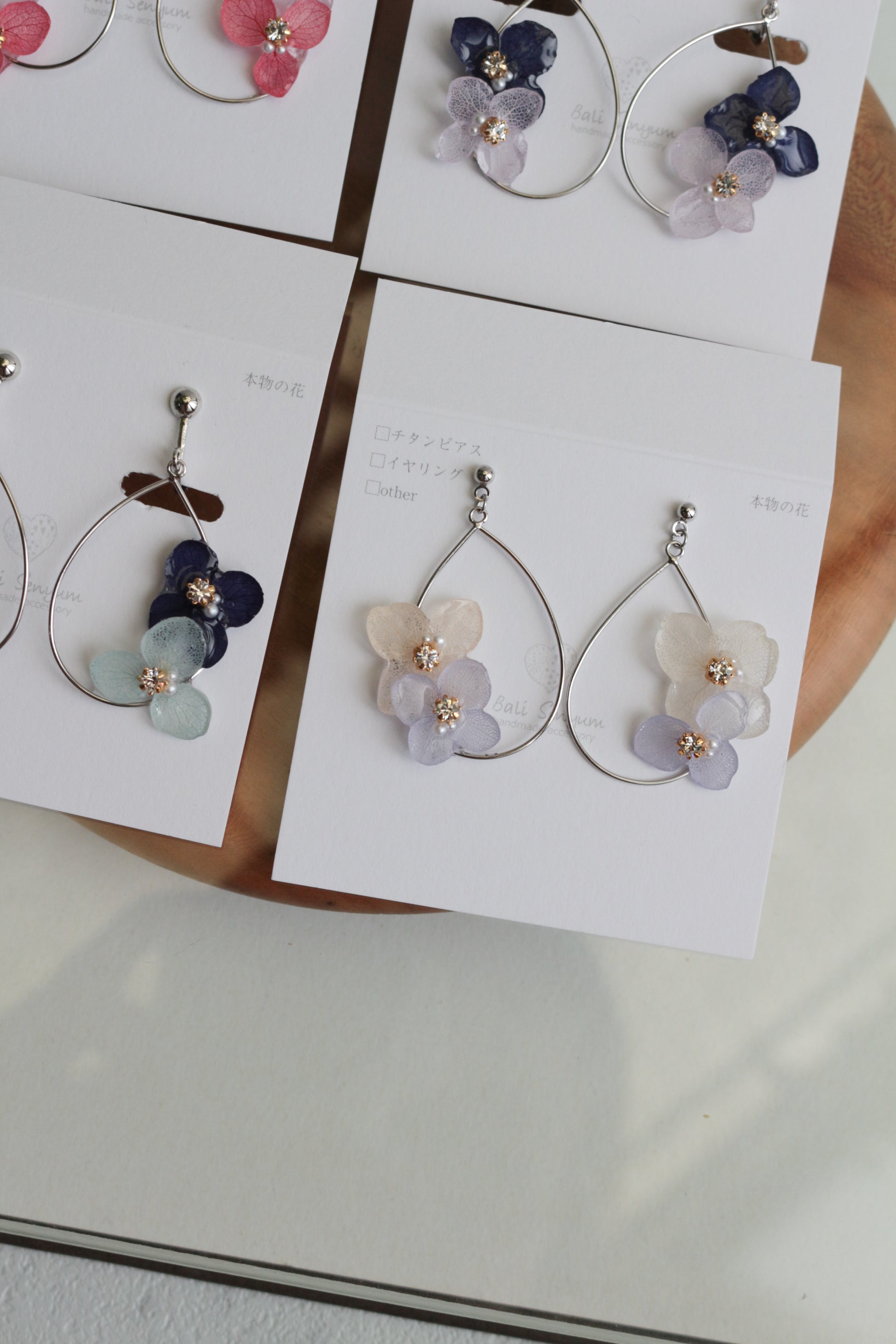 These earrings use real hydrangea flower petals.