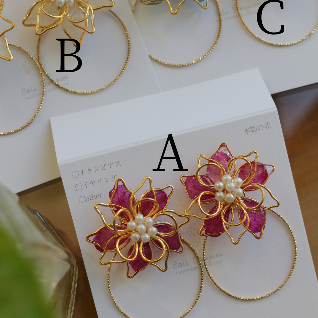 イヤリングもお花だけでご着用できるデザインです。